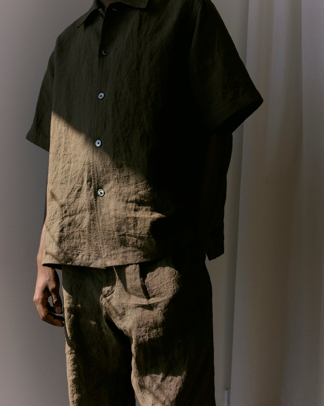 Sun Dried Linen returns in the latest SMOCK delivery. Imported from Japan and finished in Los Angeles using an open-air drying process, this specially-developed linen is lightweight with a unique crinkled texture.