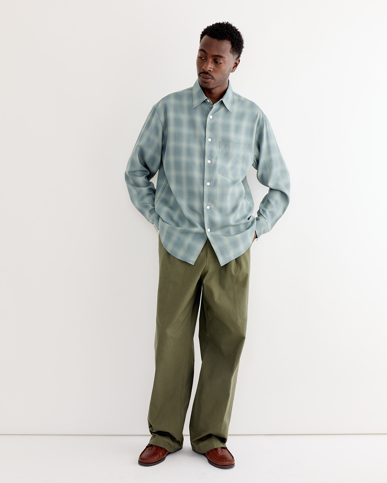 Vendor:Davis Shirt in Cashmere Wool Dark Olive