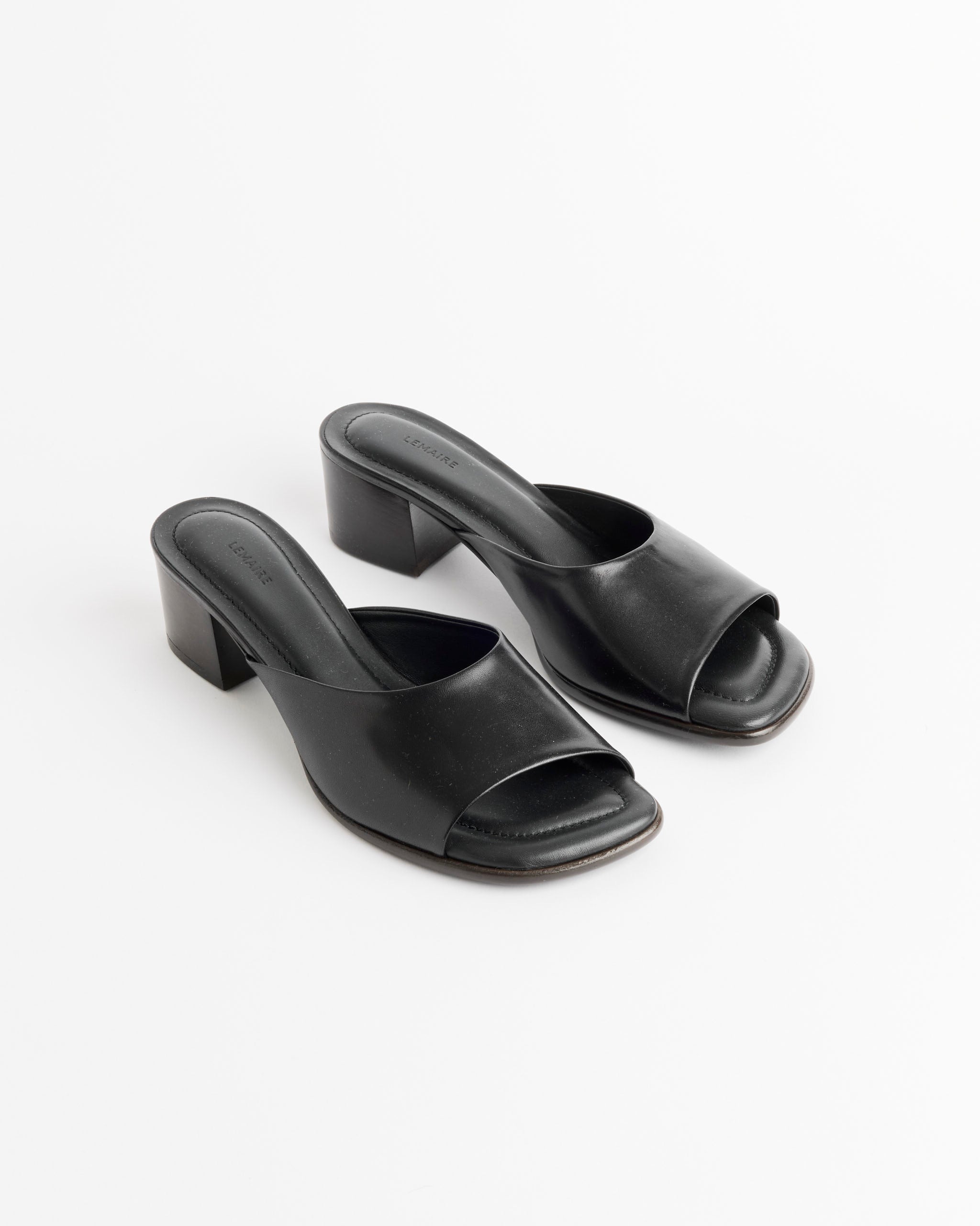 Square Heeled Mules in Black