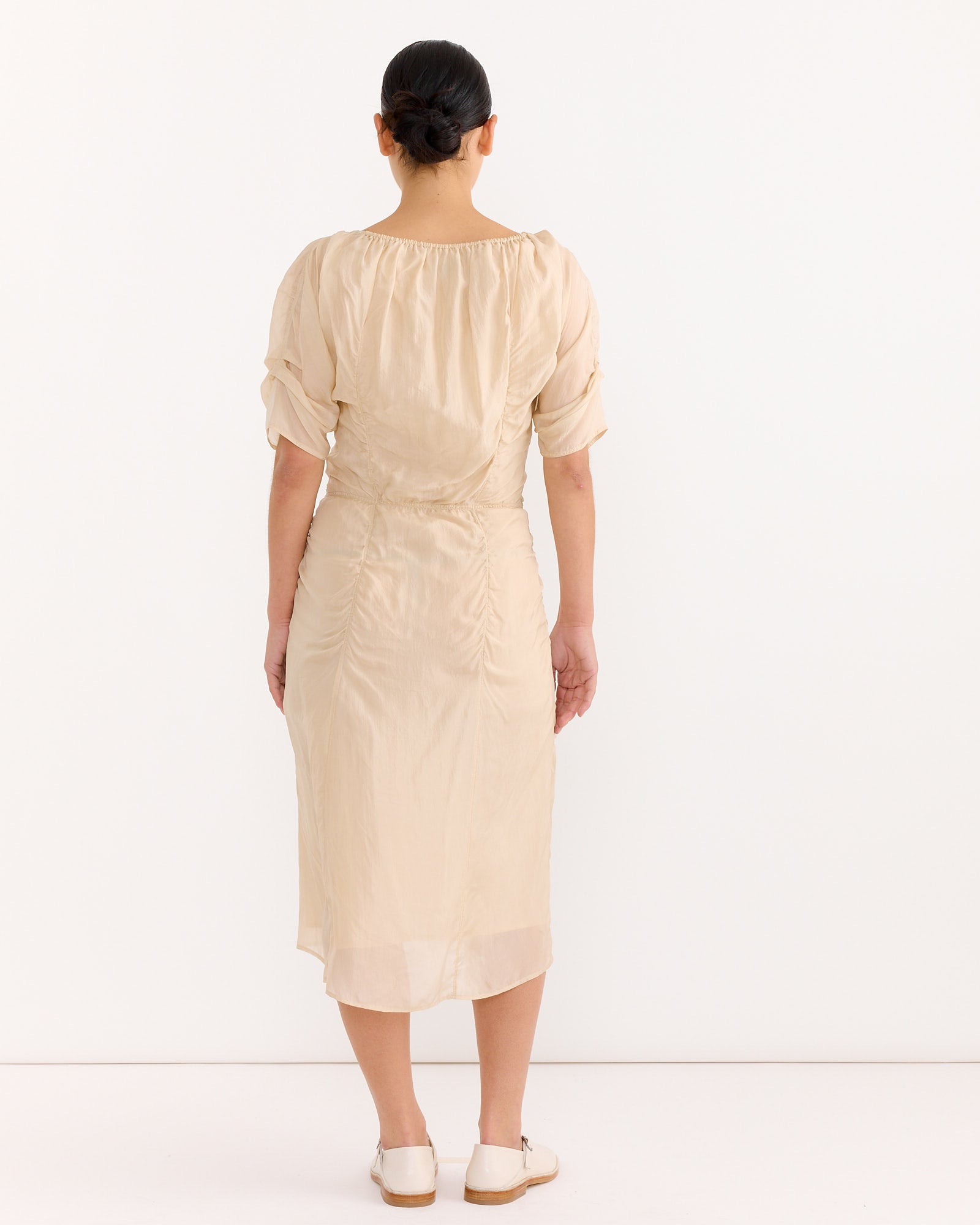 Asymmetrical Sleeveless Cardigan in Light Taupe