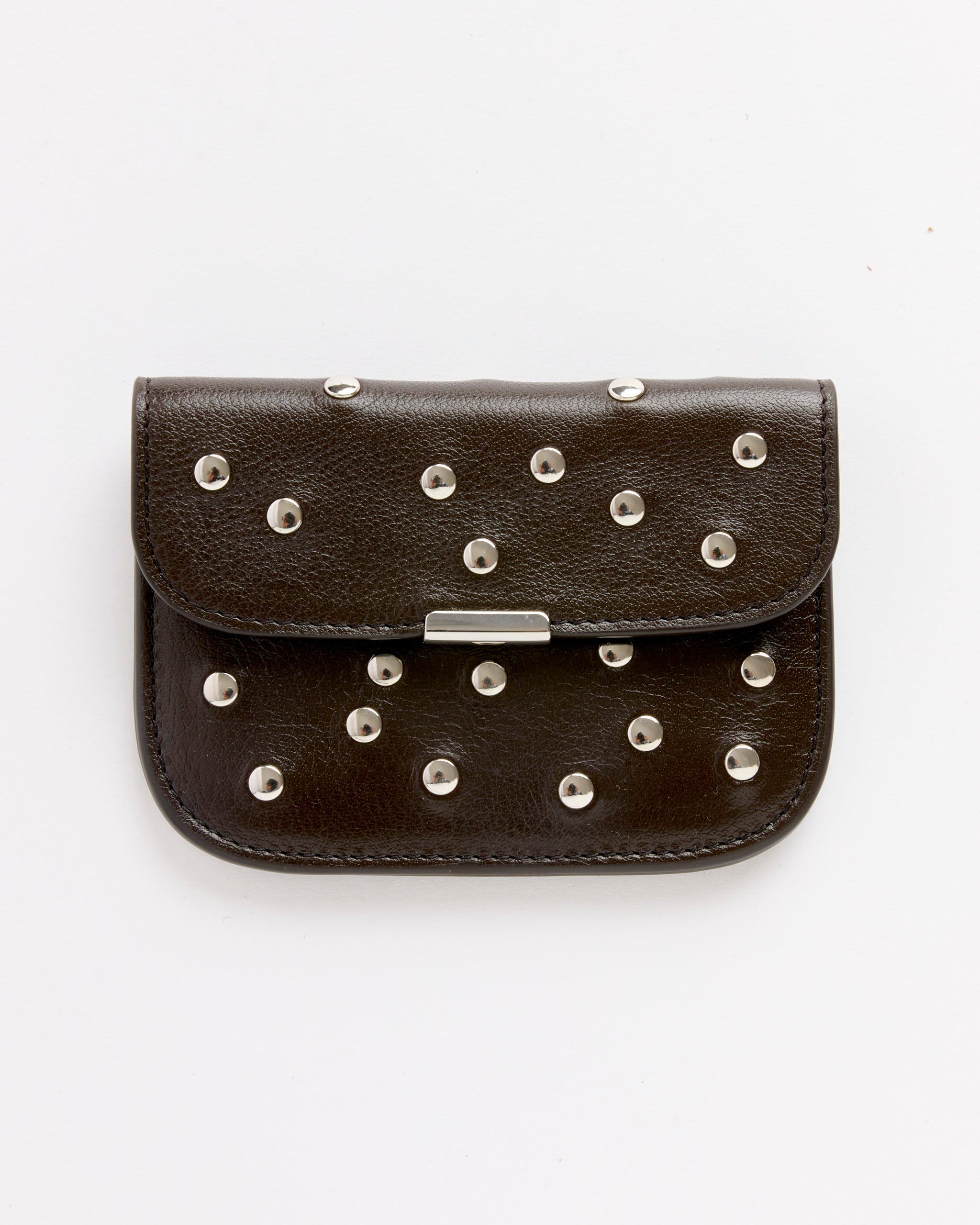 Soft Tab Studs Dots Card Holder in Dark Chocolate