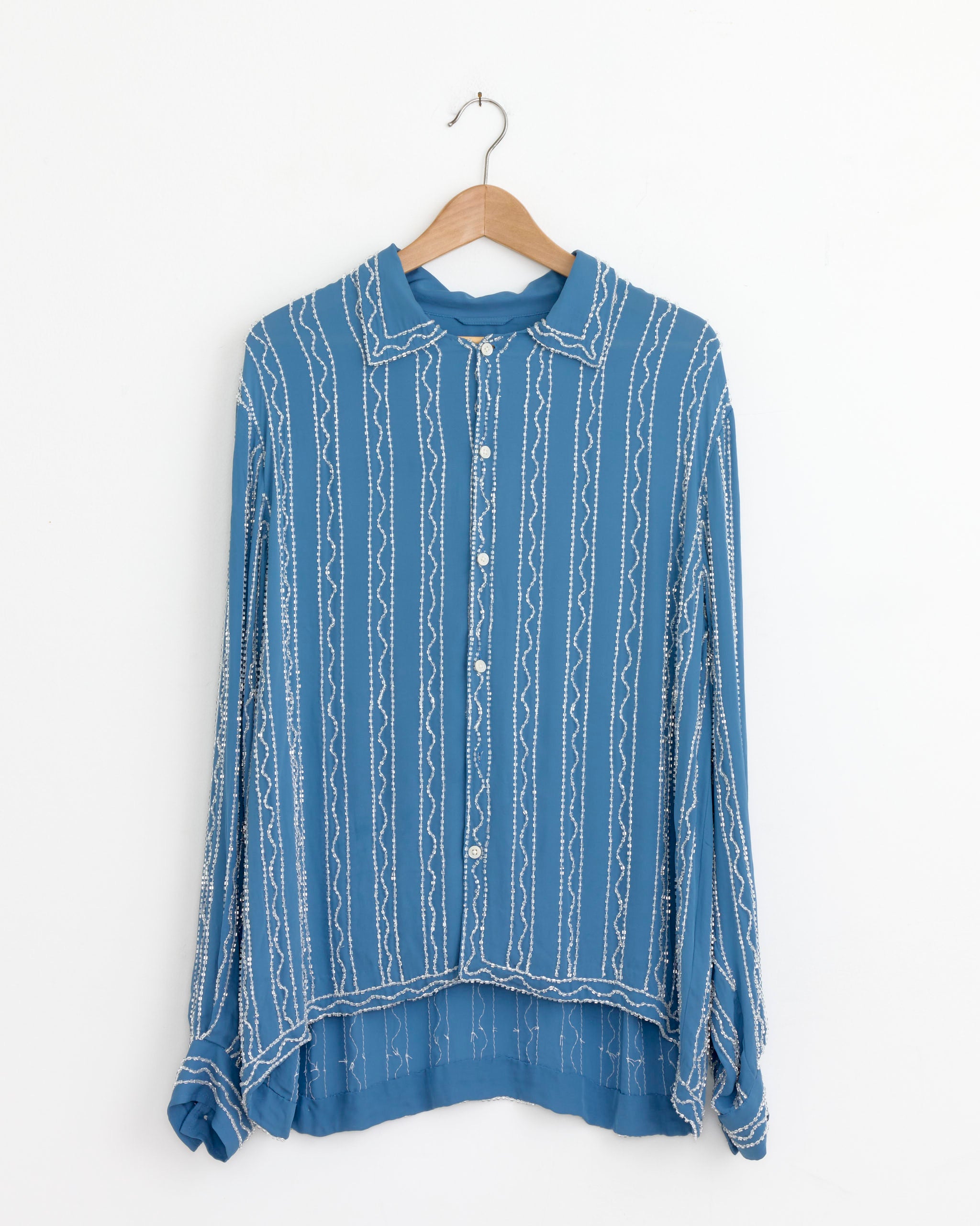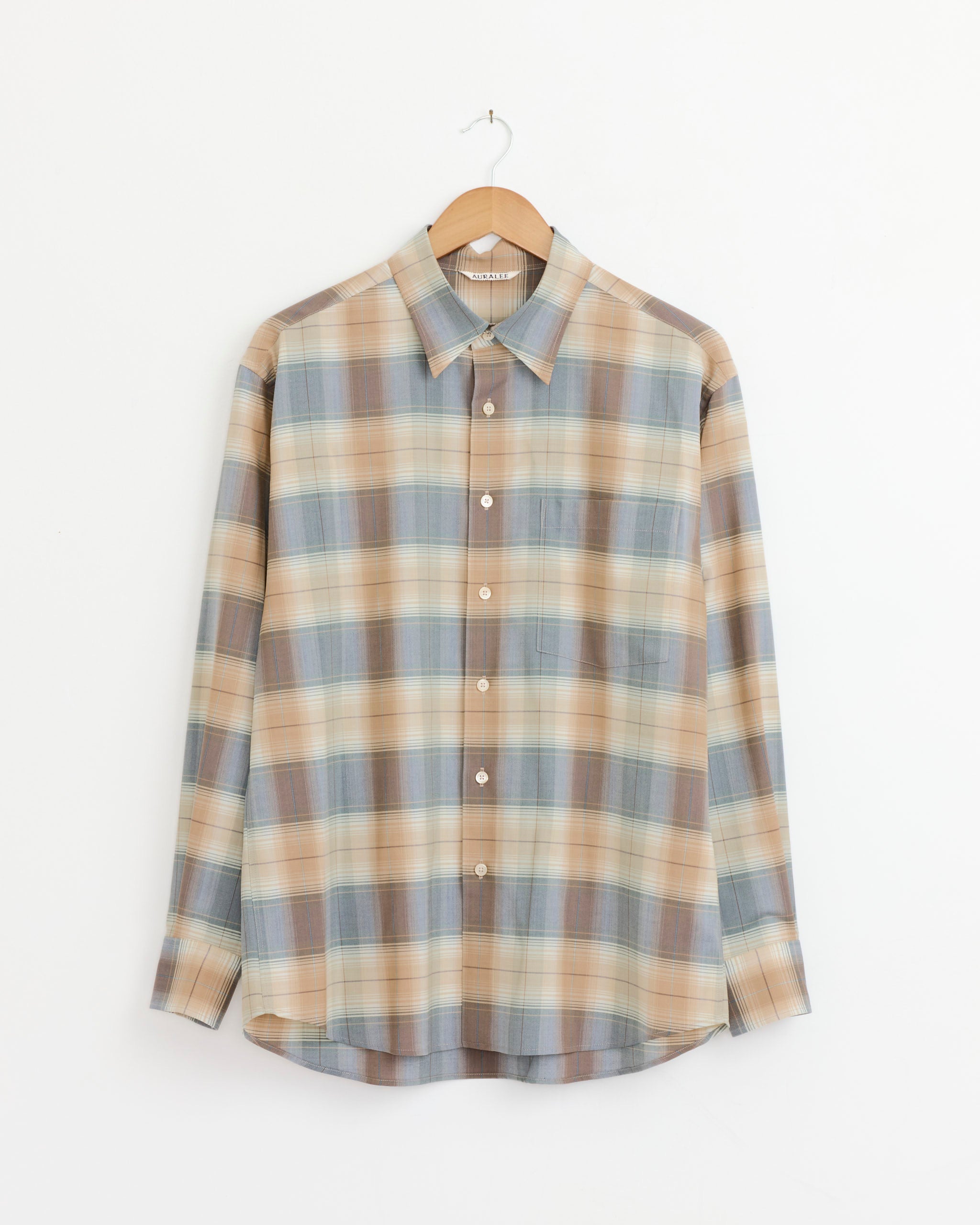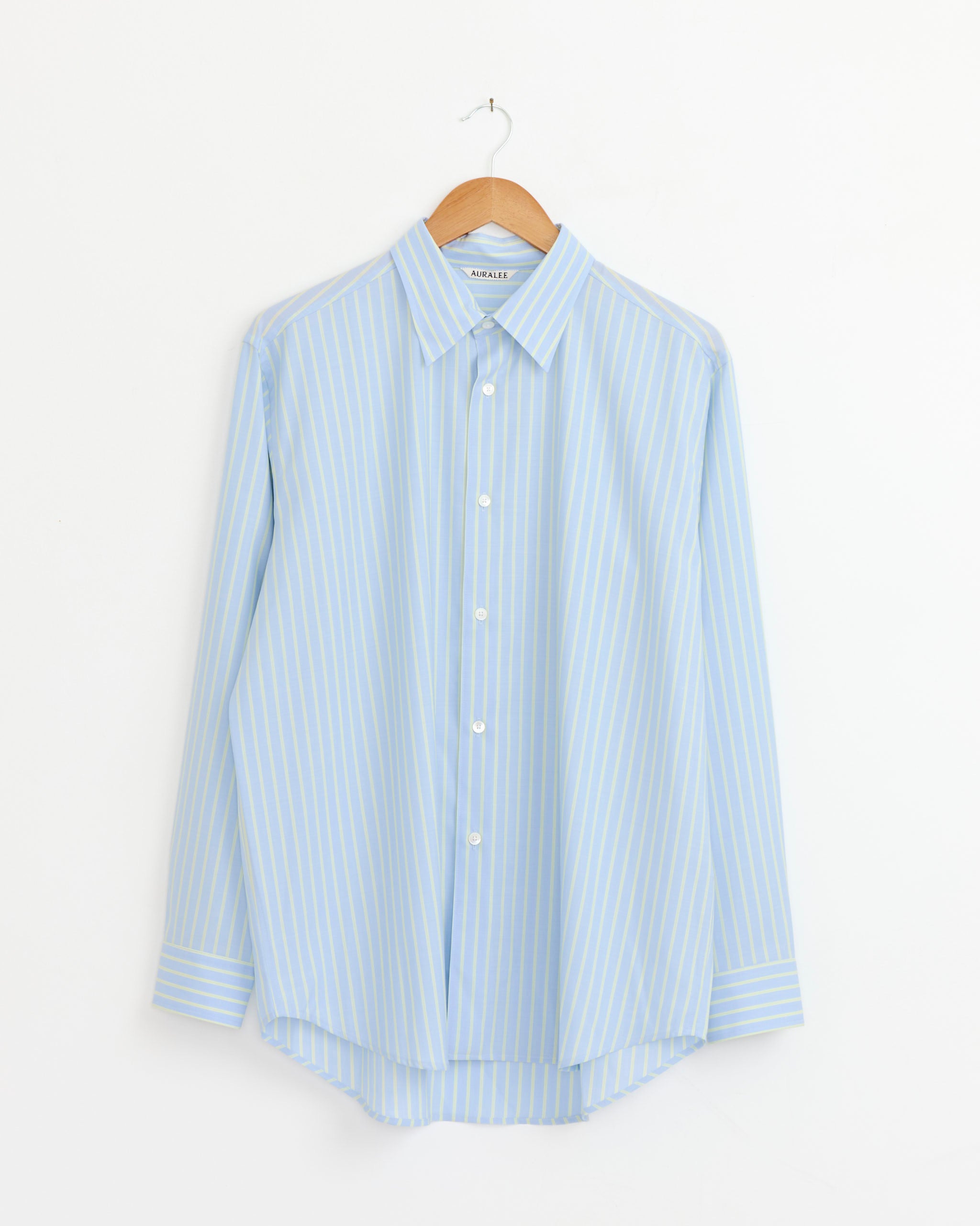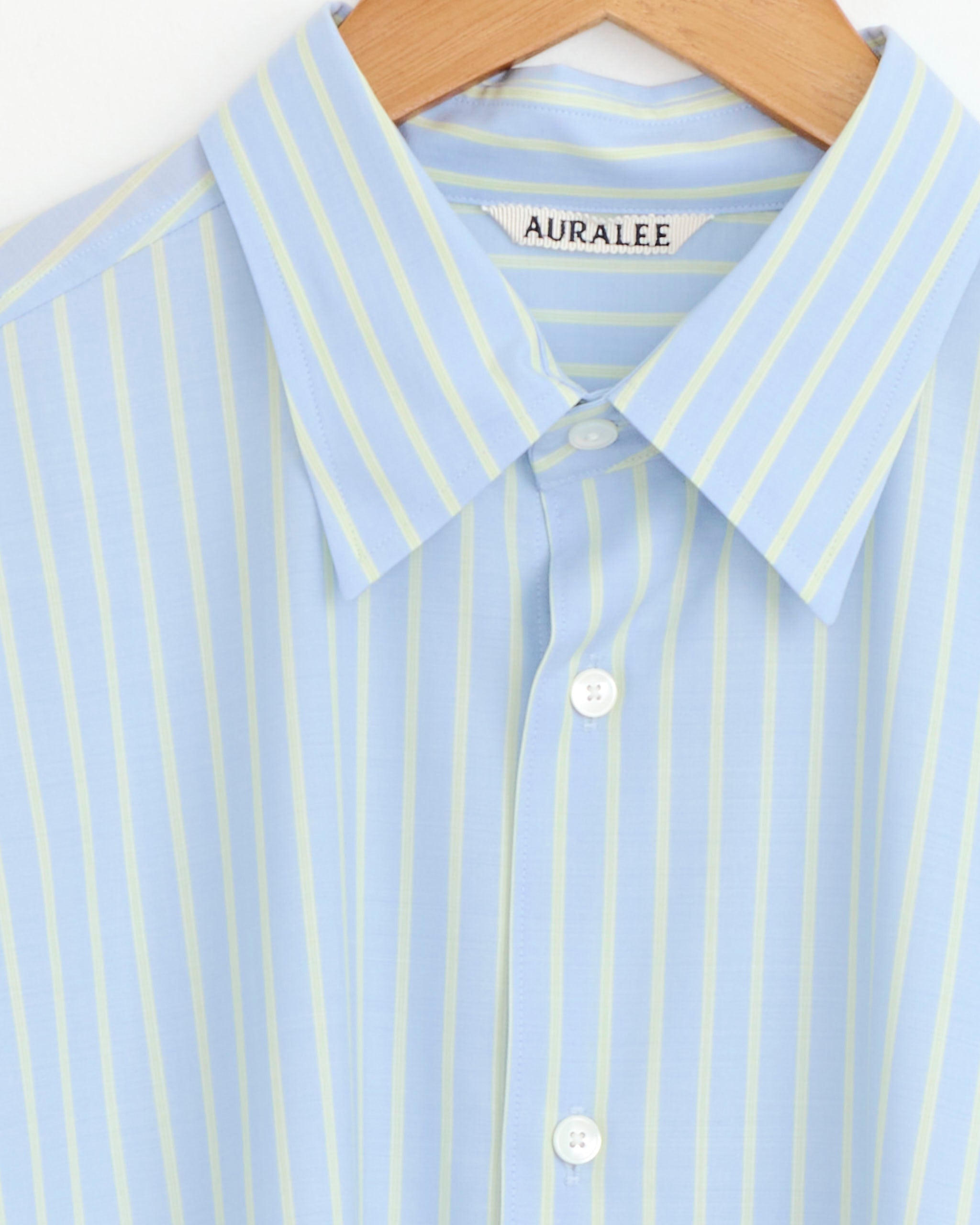 Super Fine Wool Stripe Shirt in Sax Blue Lime