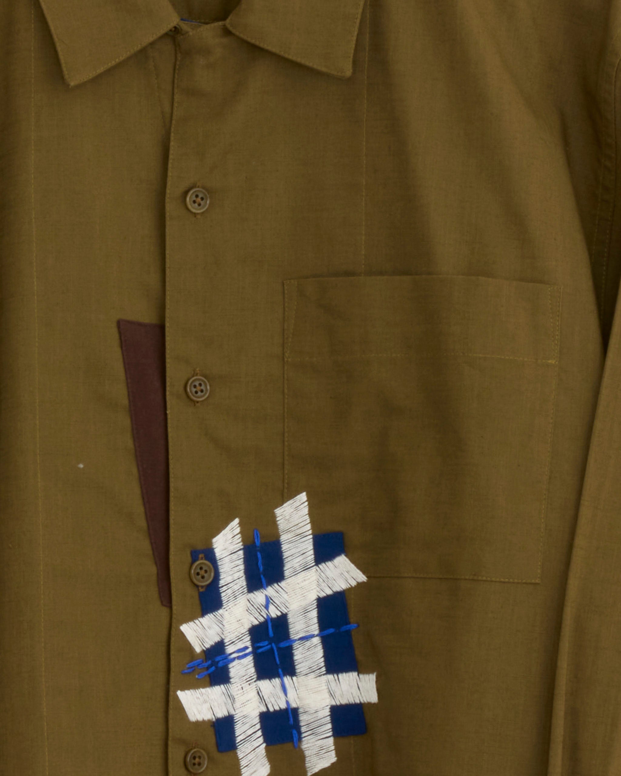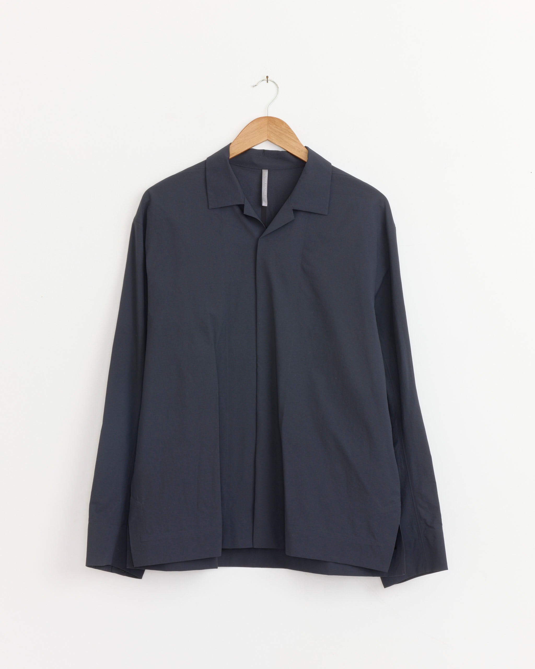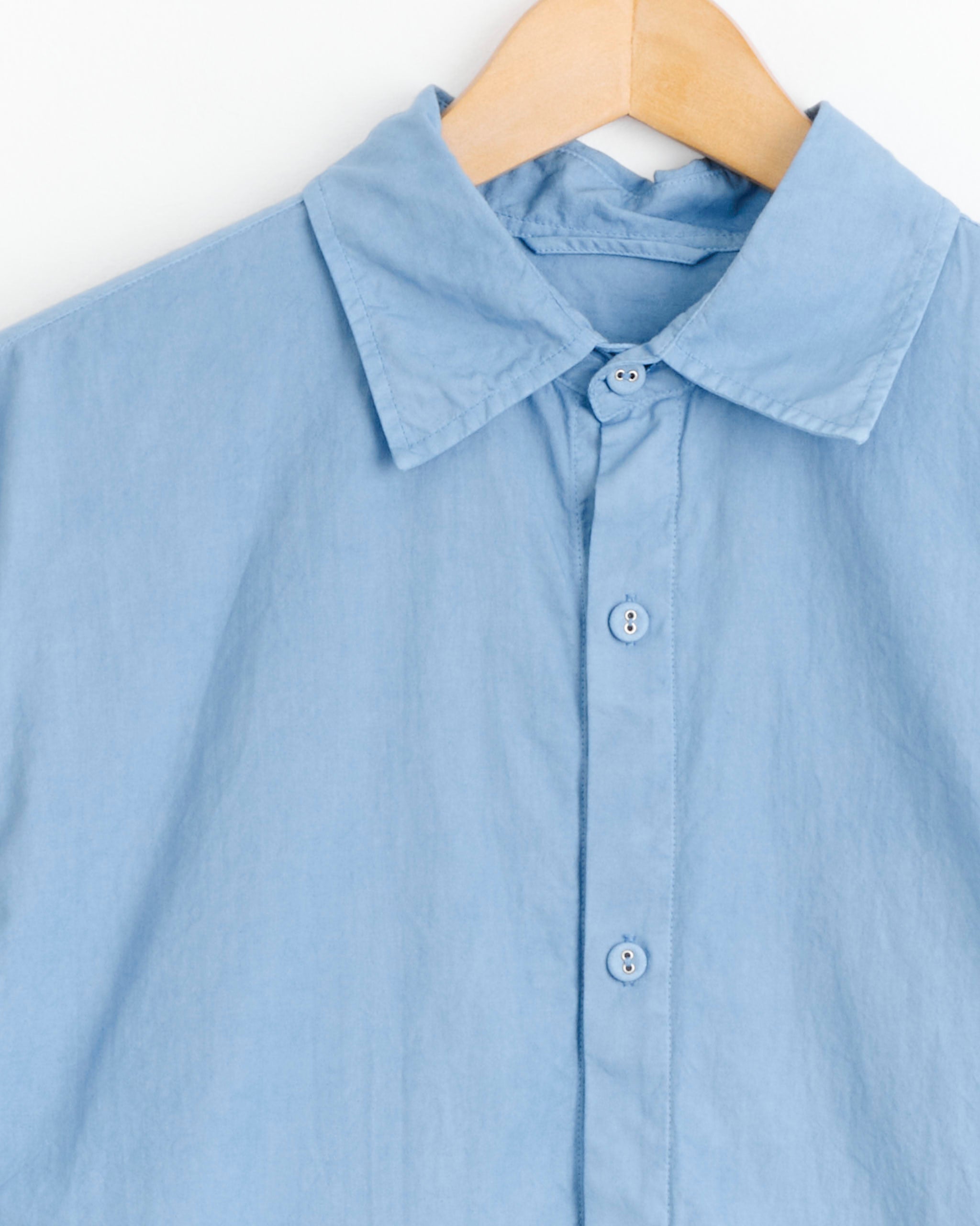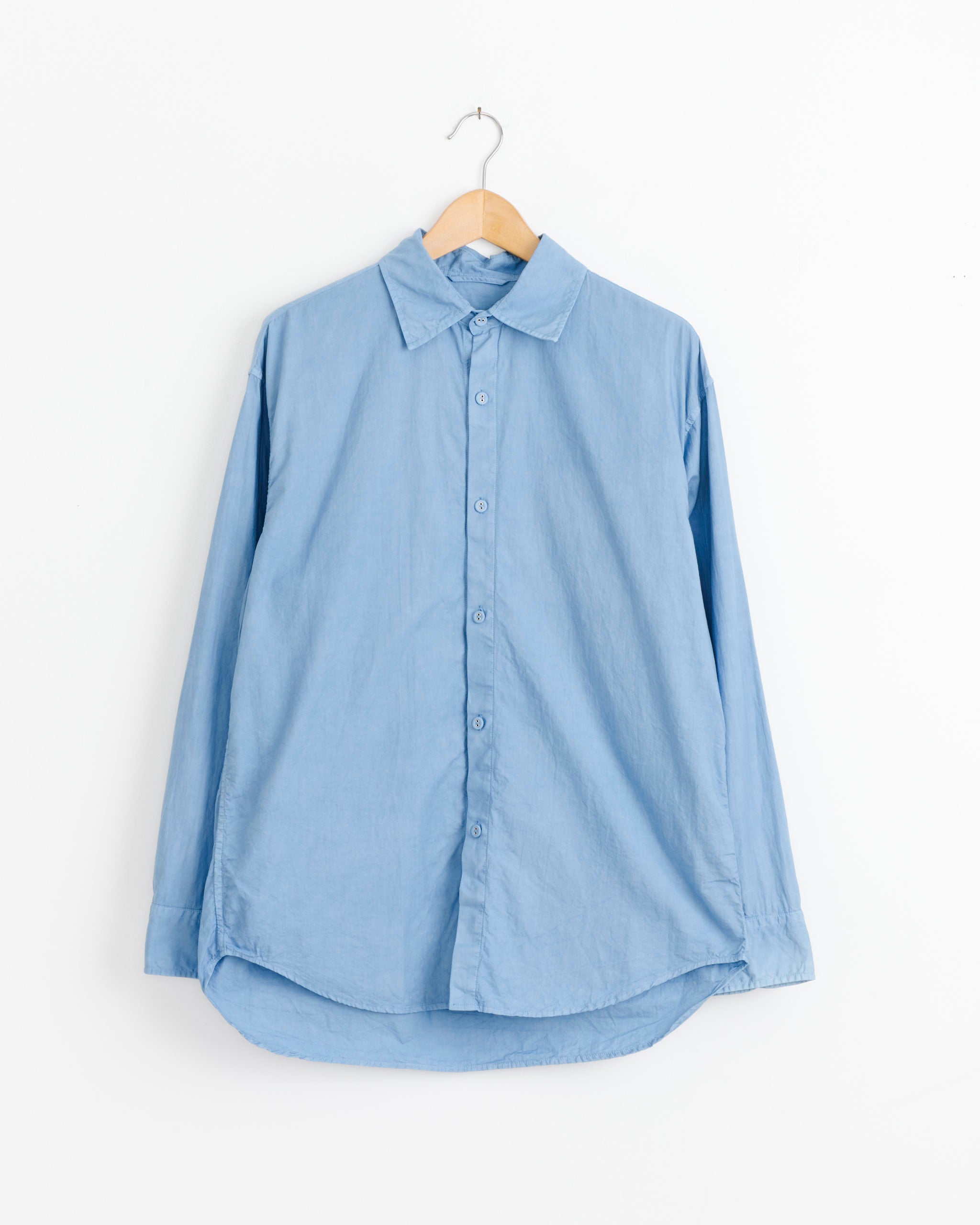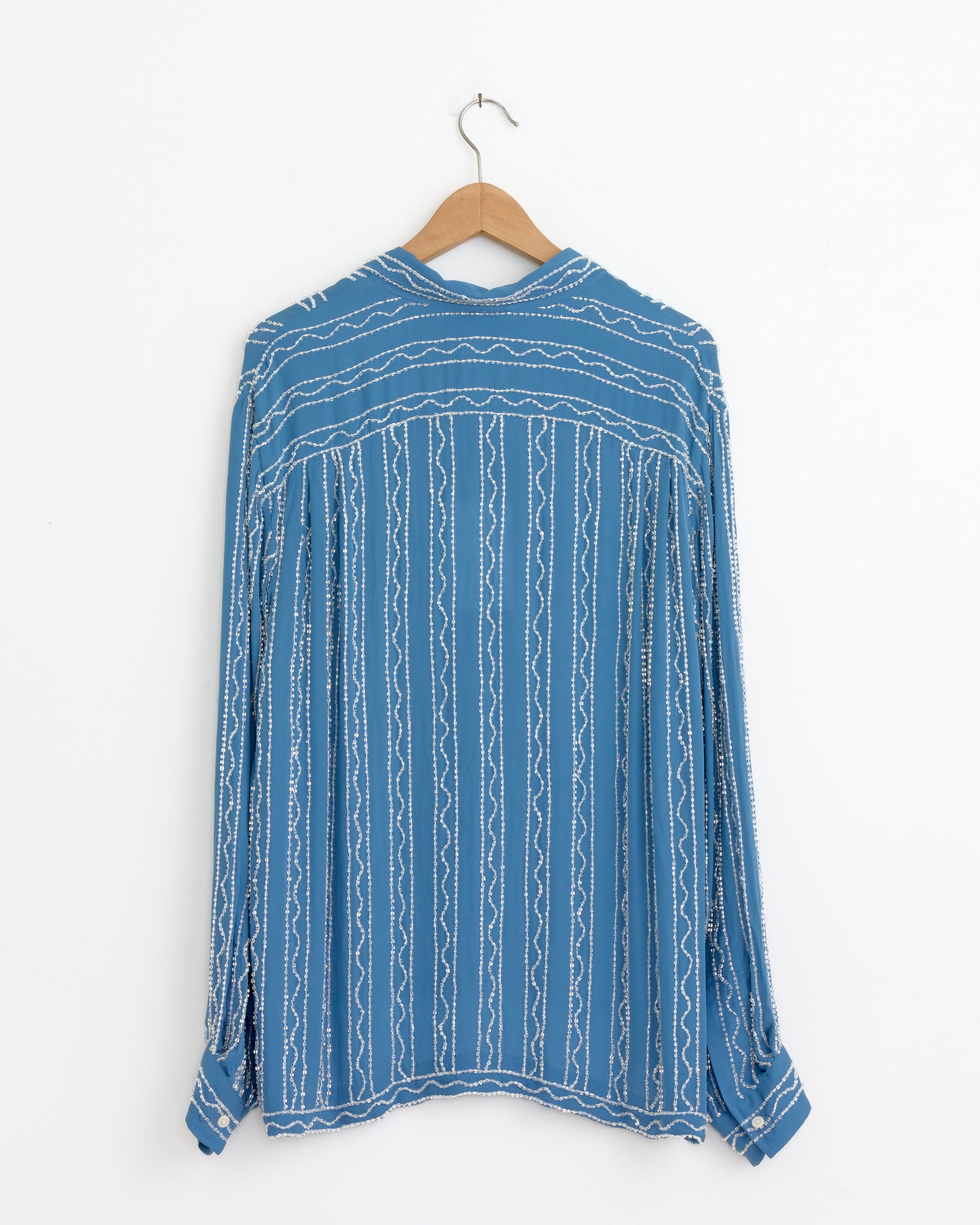 Super Fine Wool Stripe Shirt in Sax Blue Lime