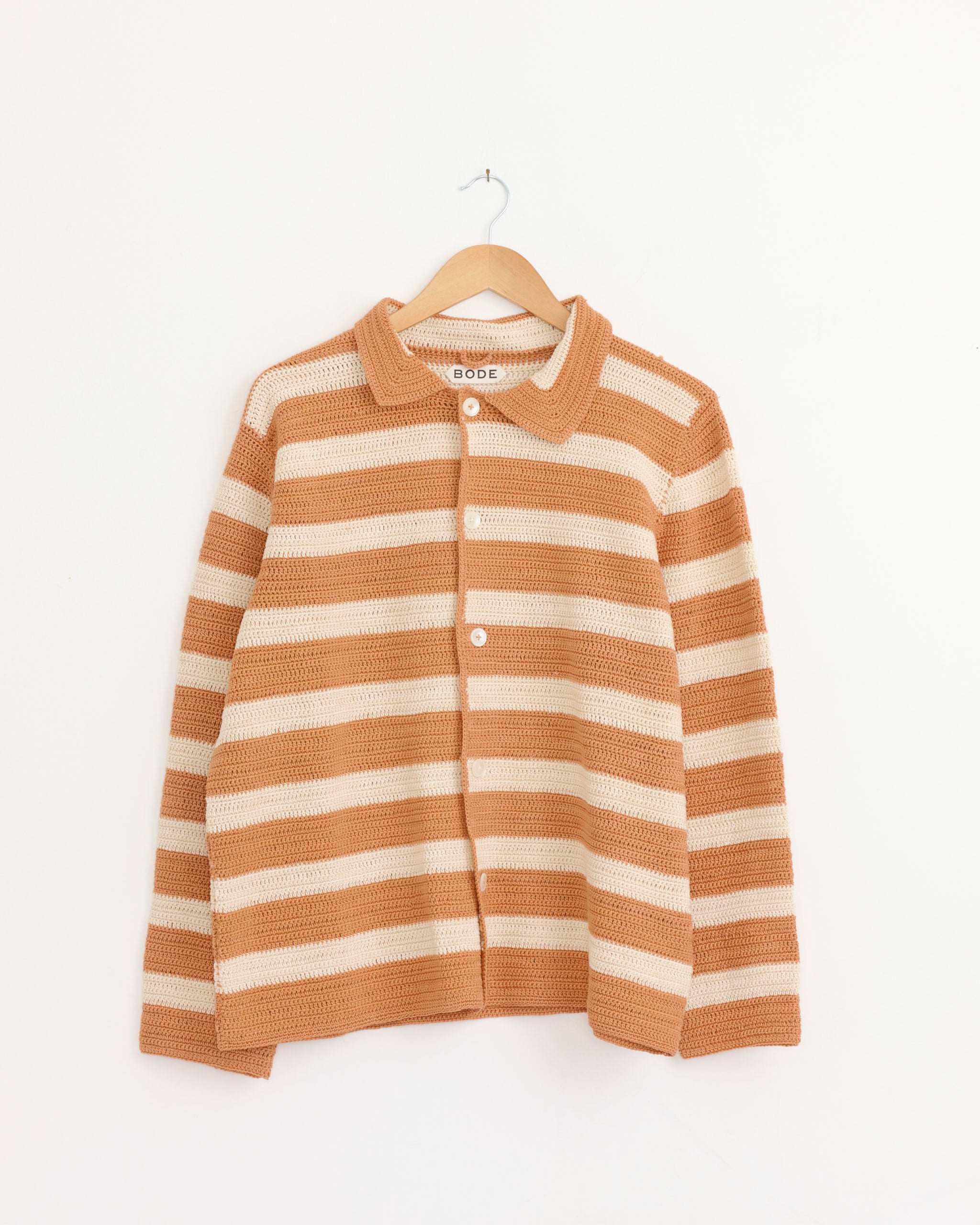 Sherbet Crochet Long Sleeve Shirt in Cream Orange