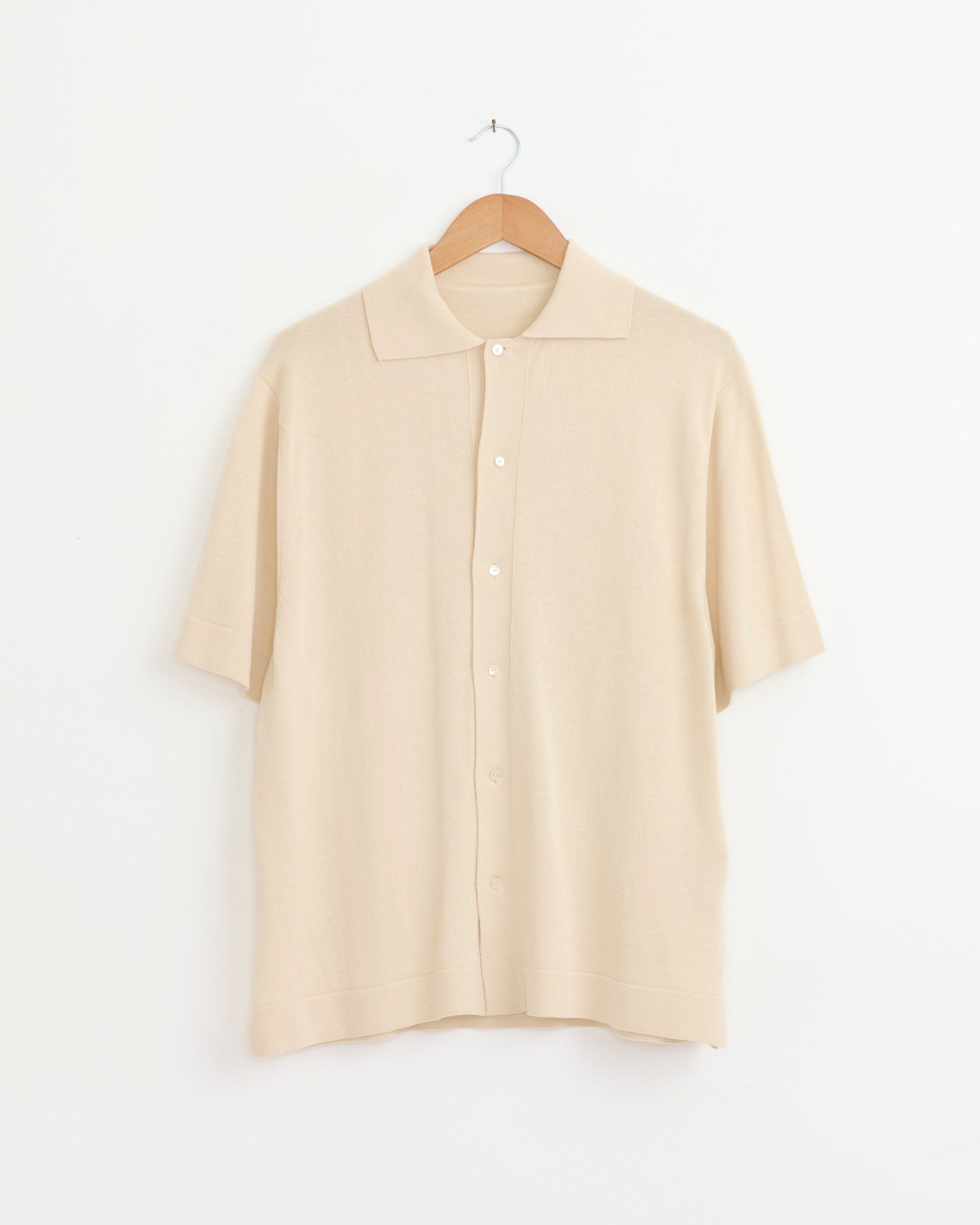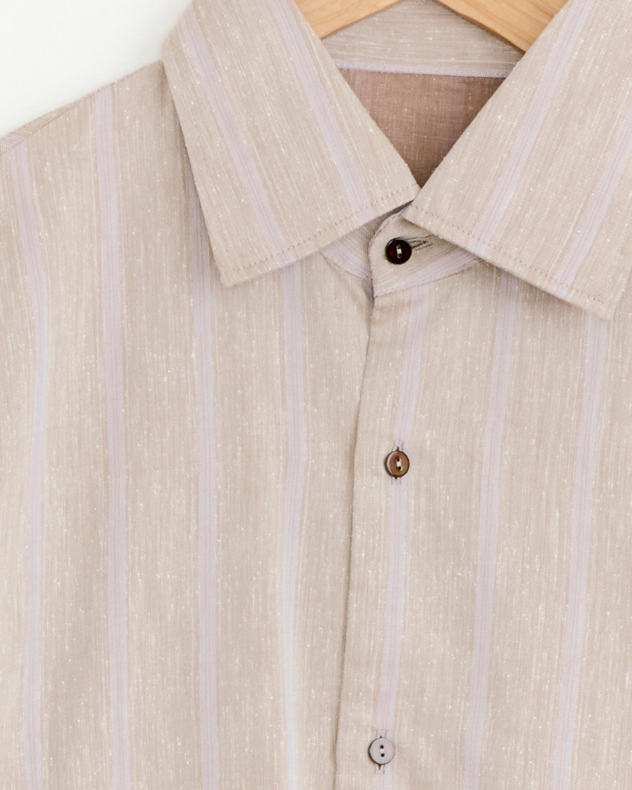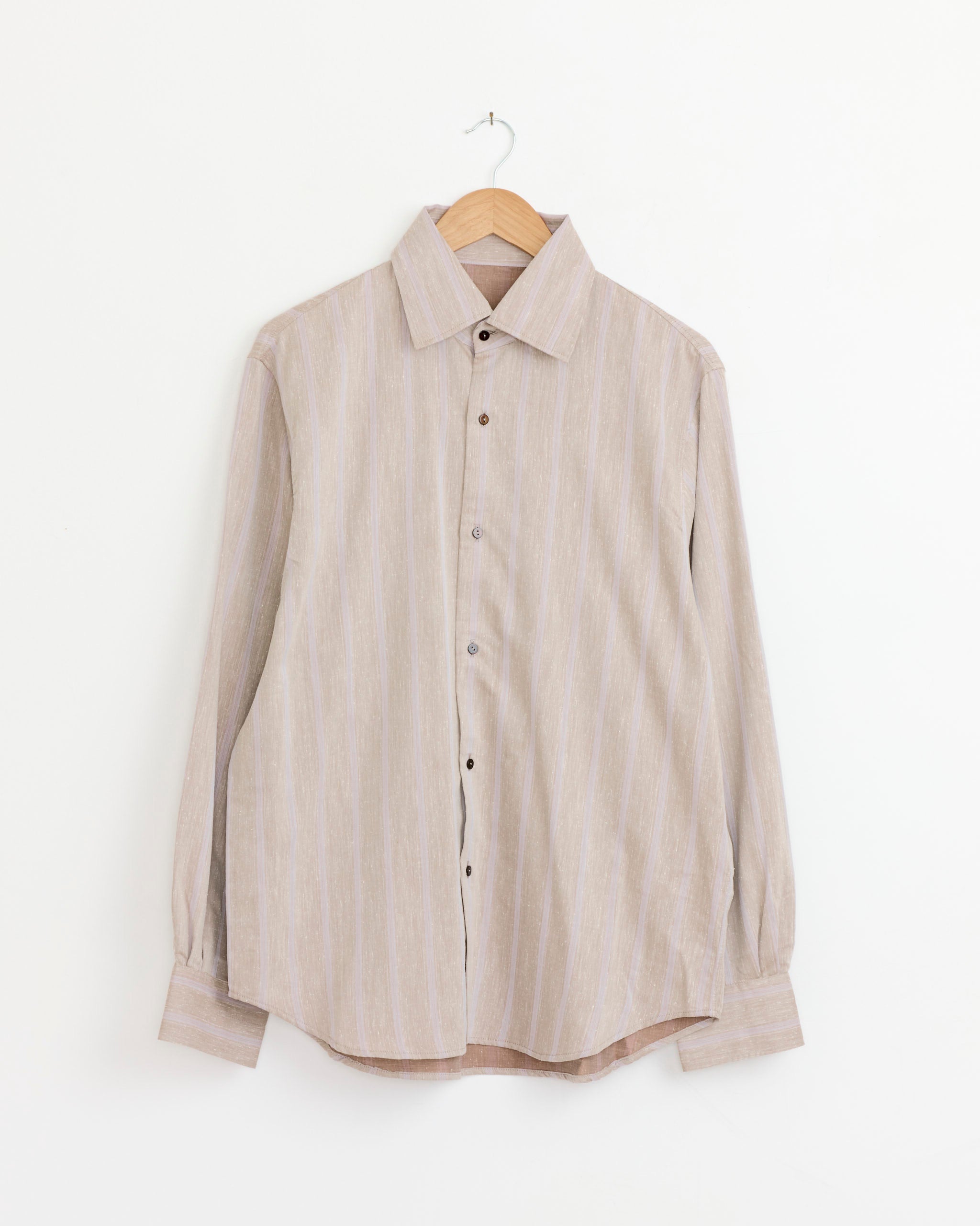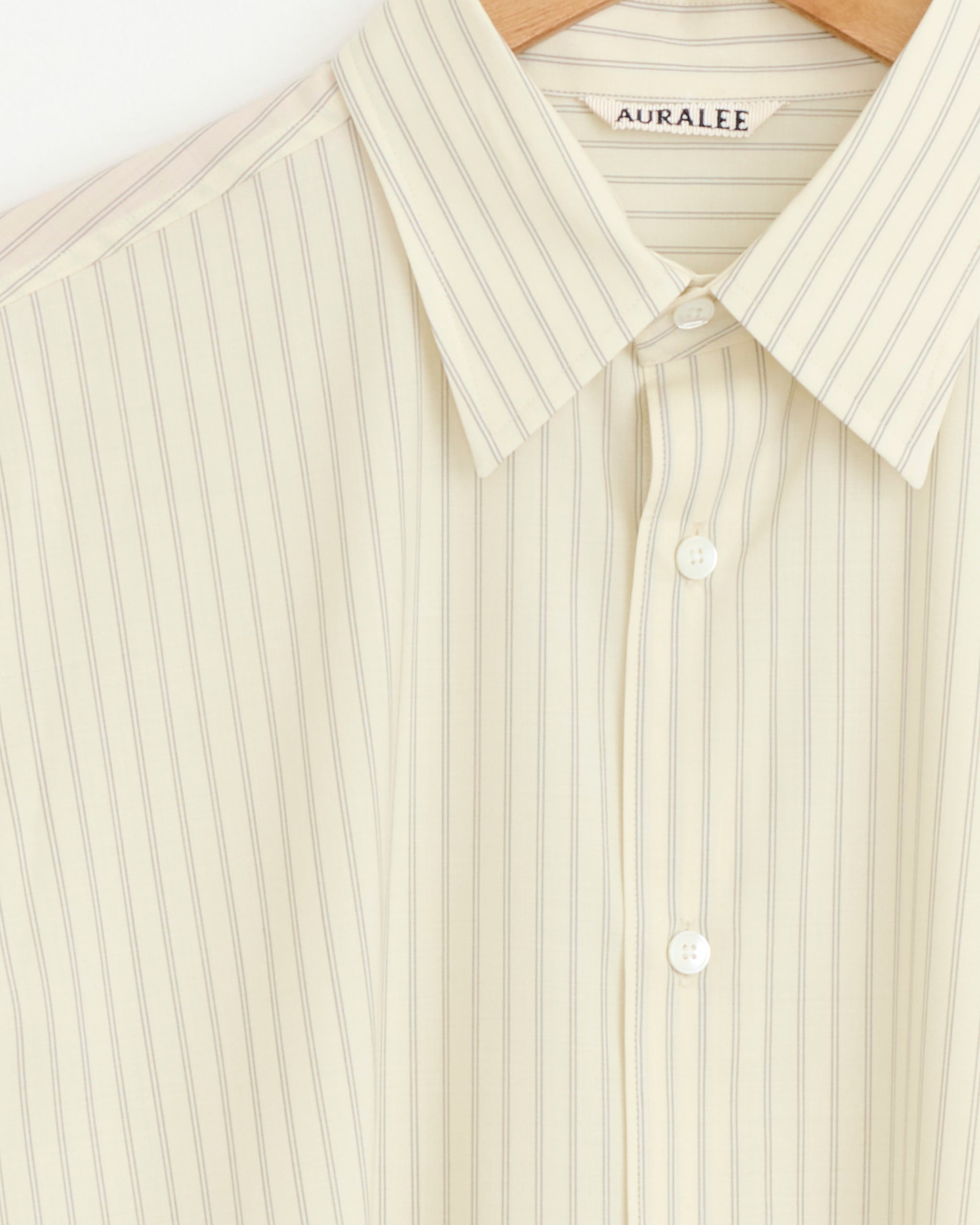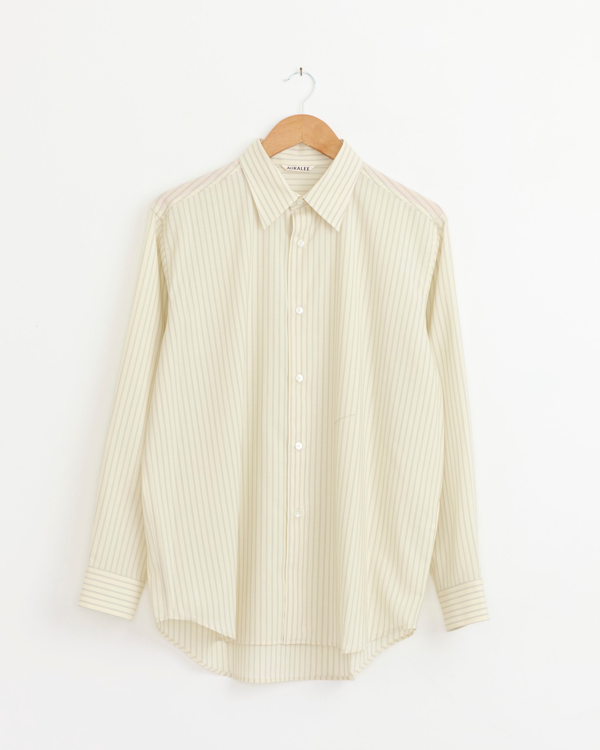 Super Fine Wool Stripe Shirt in Ivory Stripe