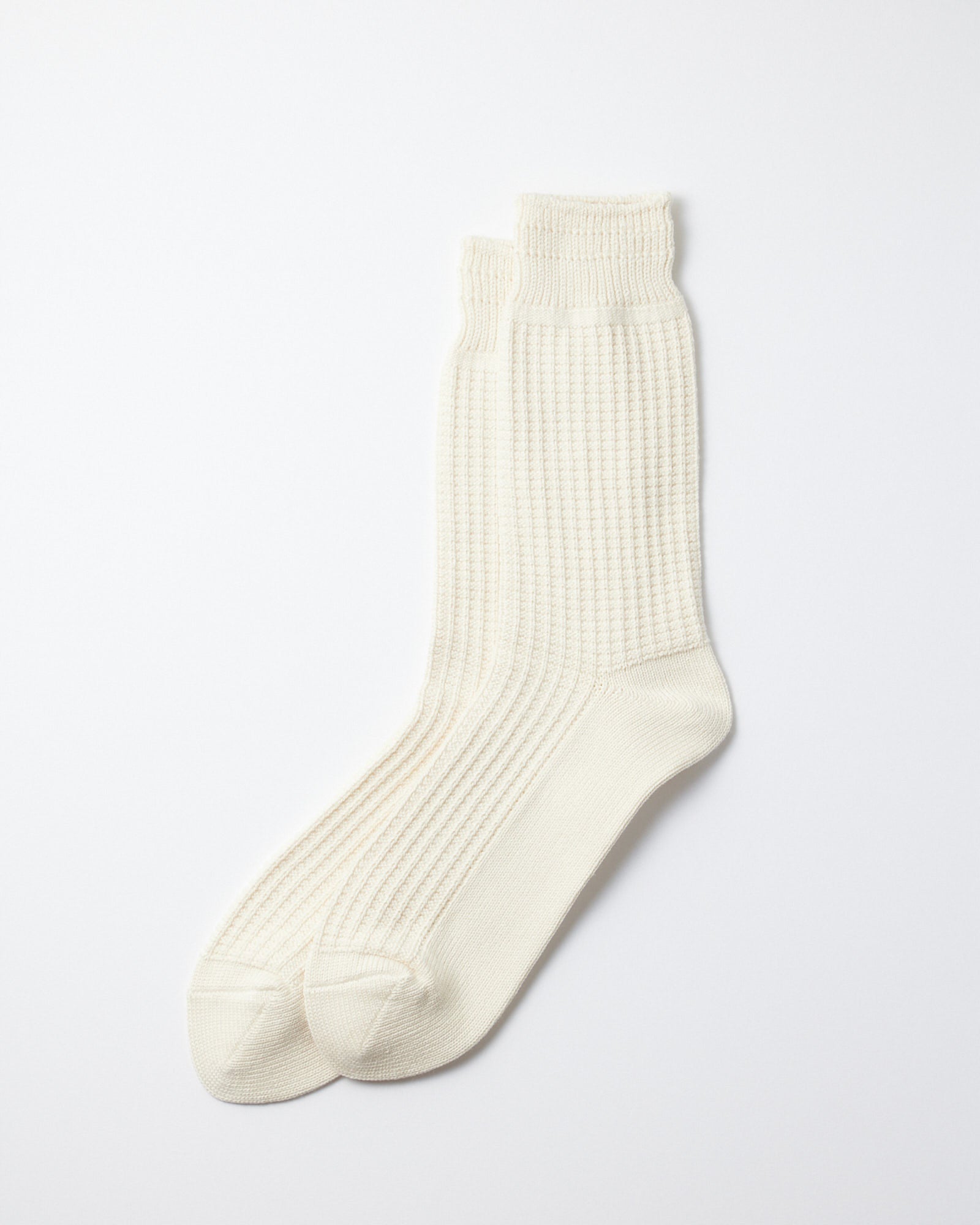 R1110 Waffle Crew Socks in Raw White