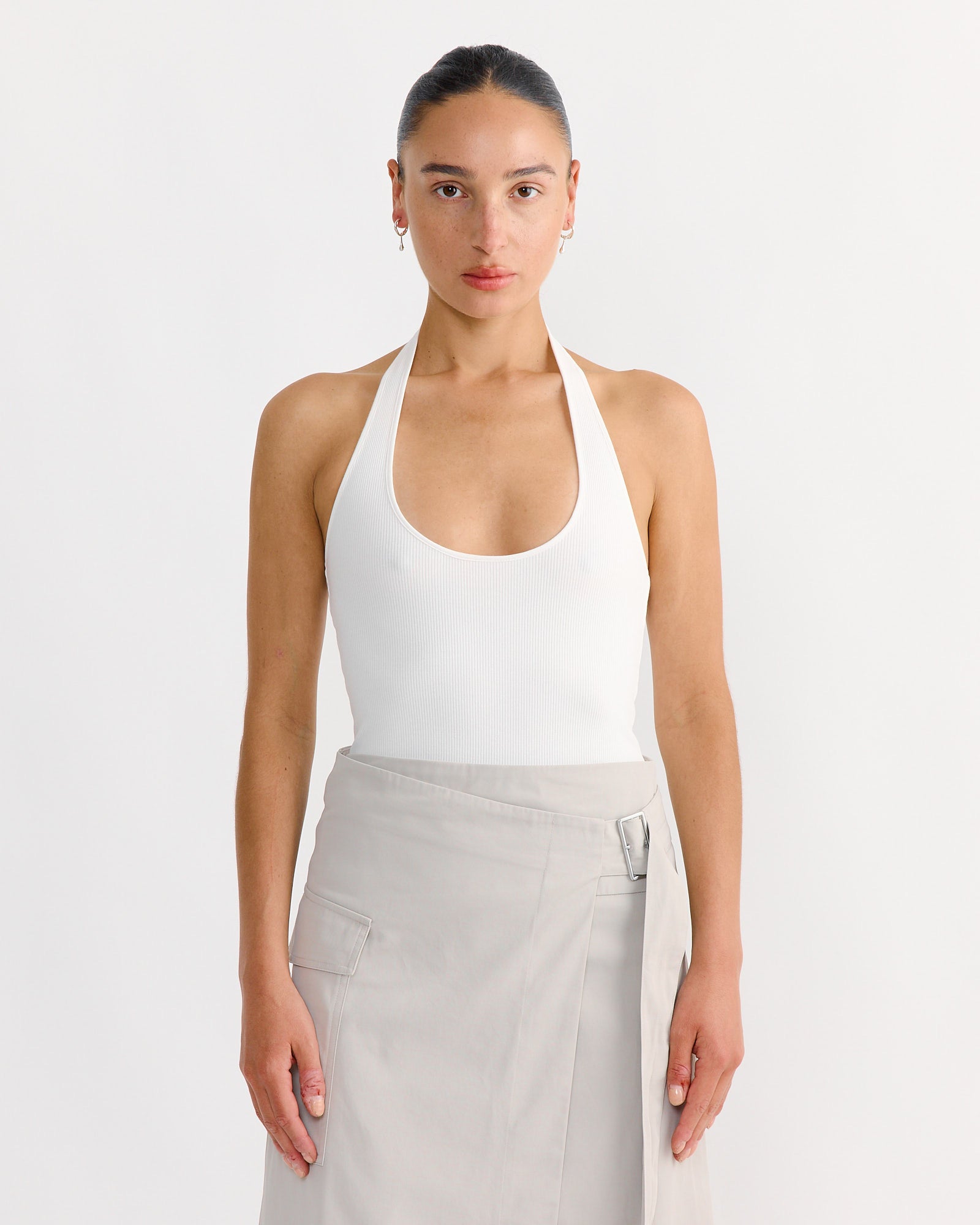Rib Halter Top in White