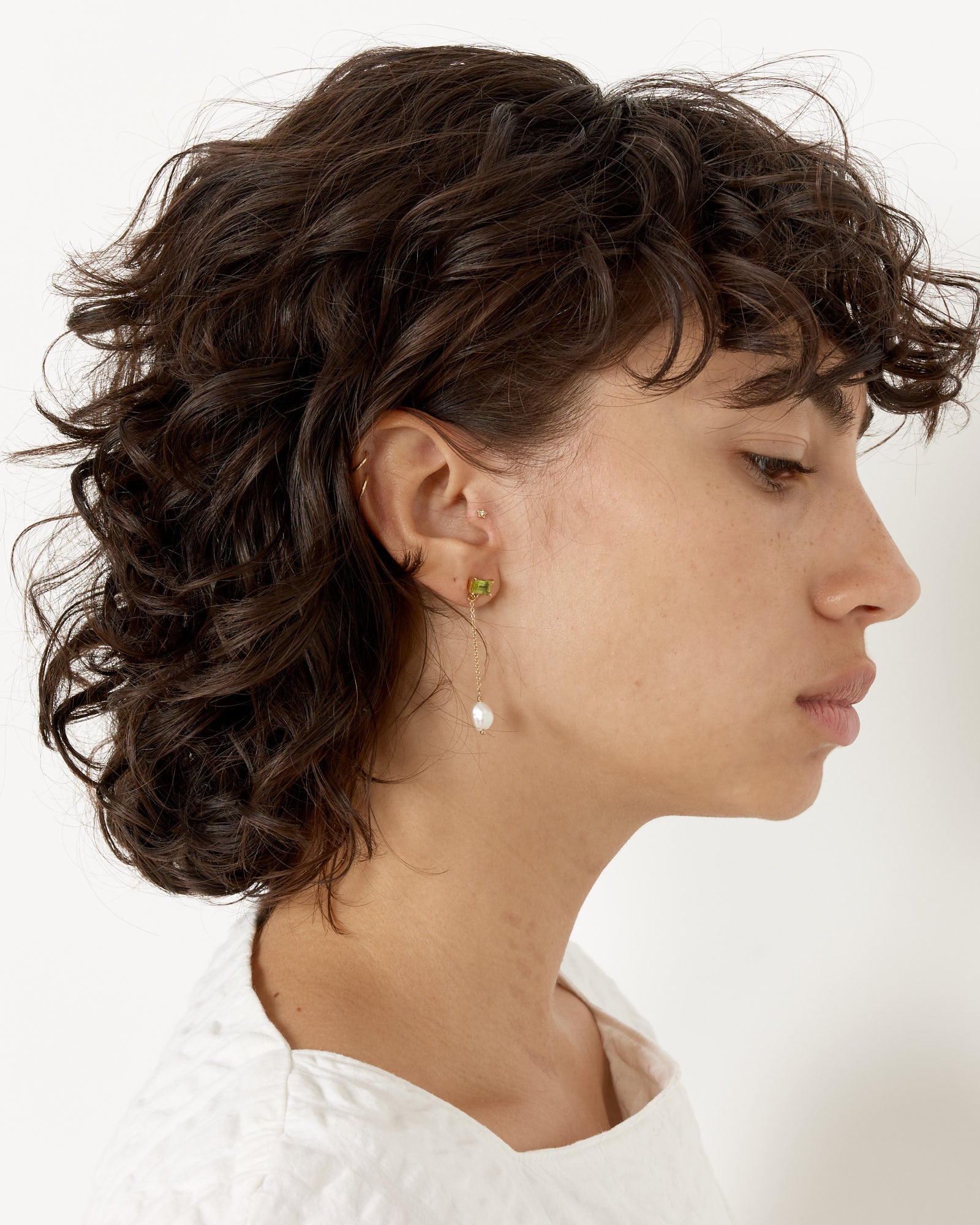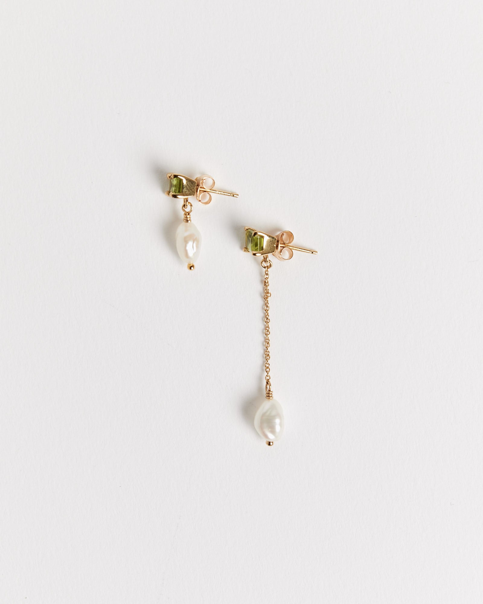 Cora Drops Earrings in Gold Plated Bronze/Green Amethyst
