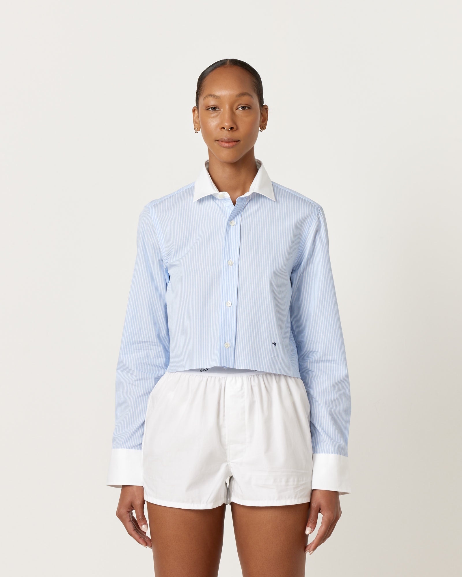 • Cropped Contrast Collar Shirt in Ticking Stripe