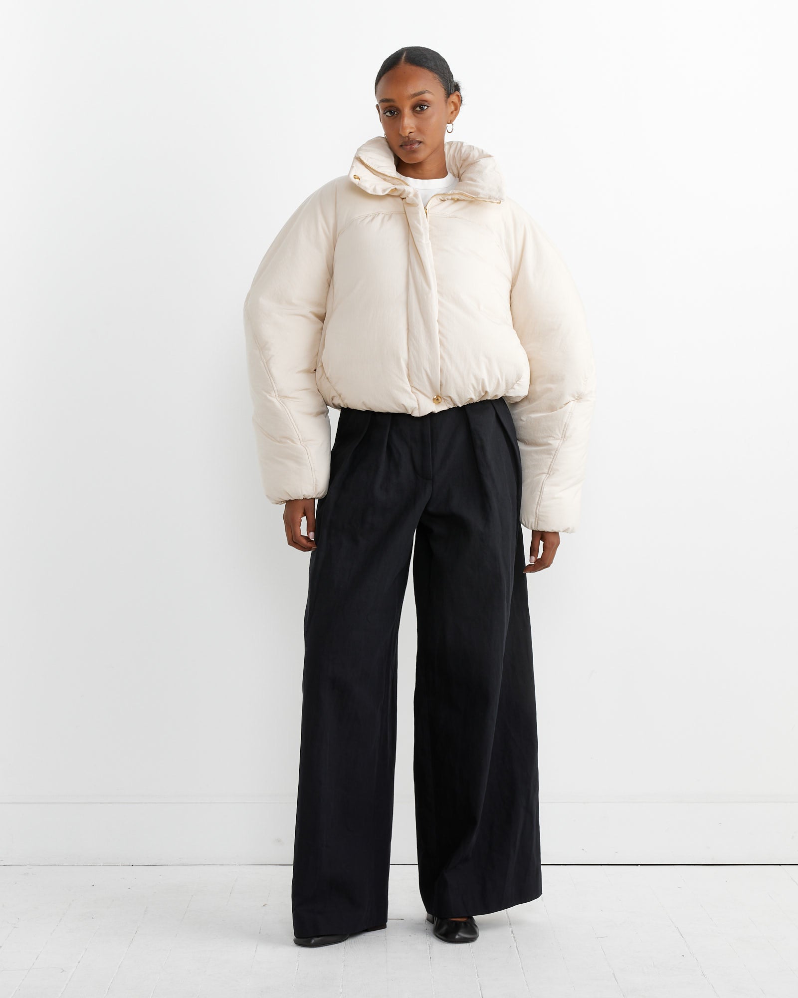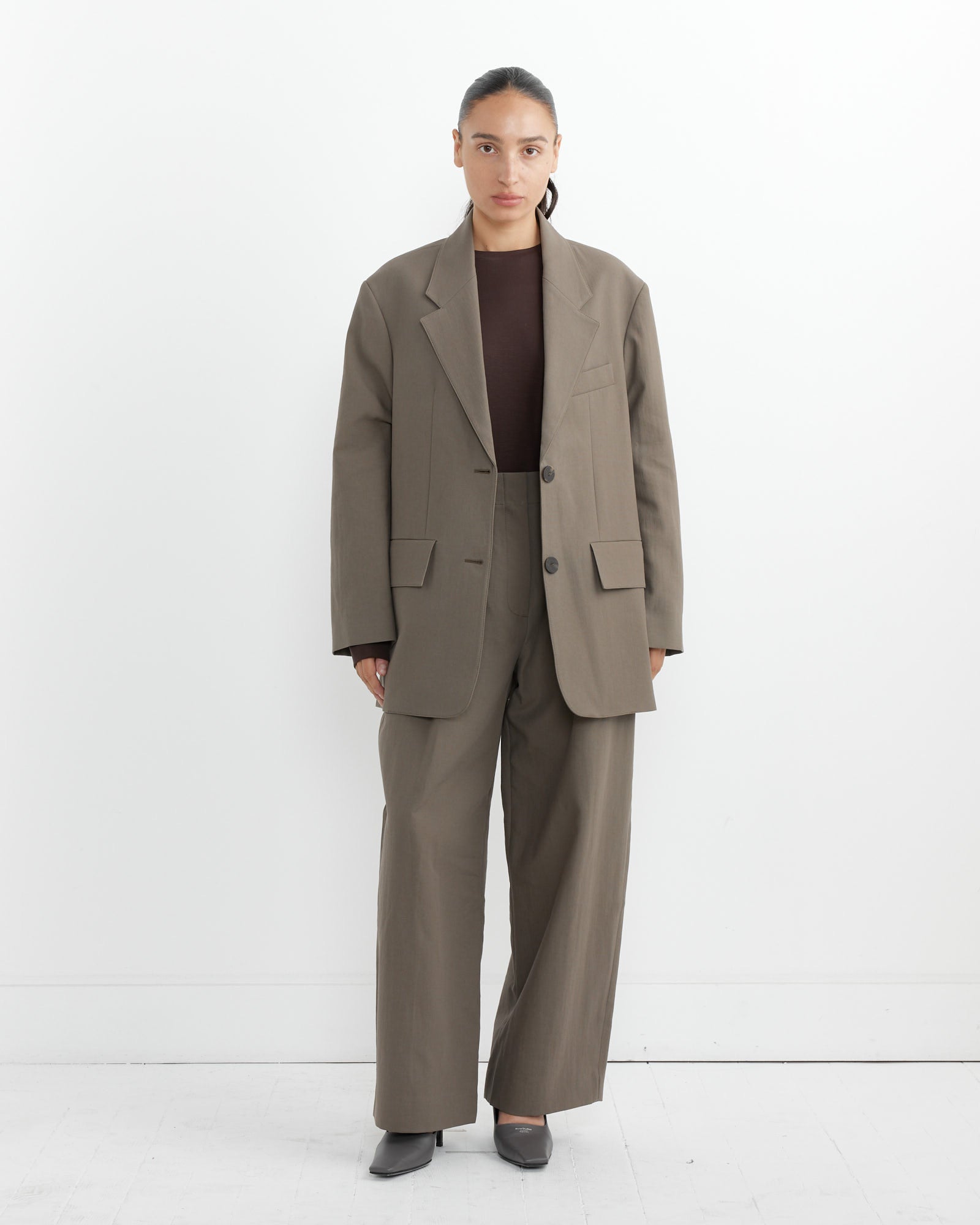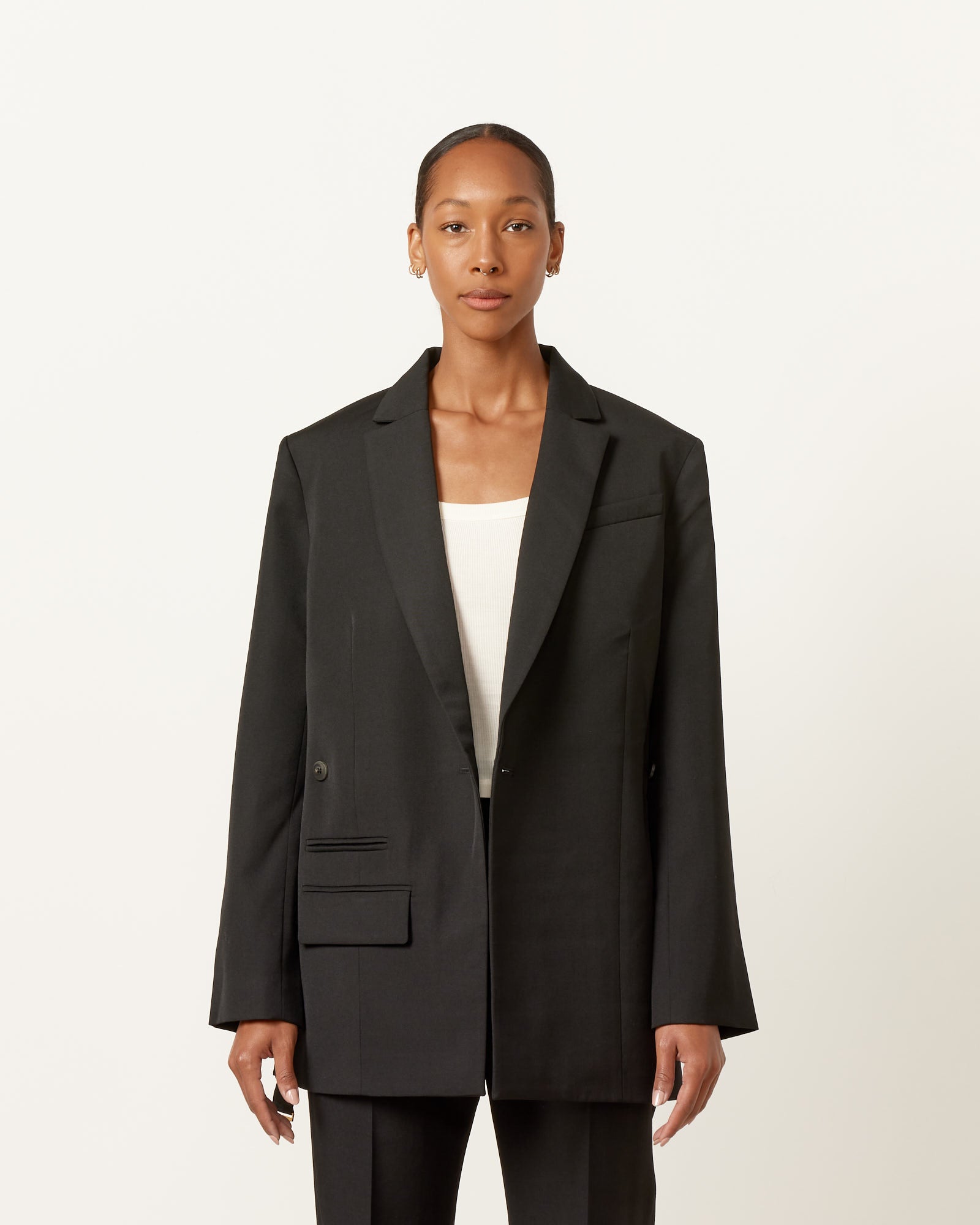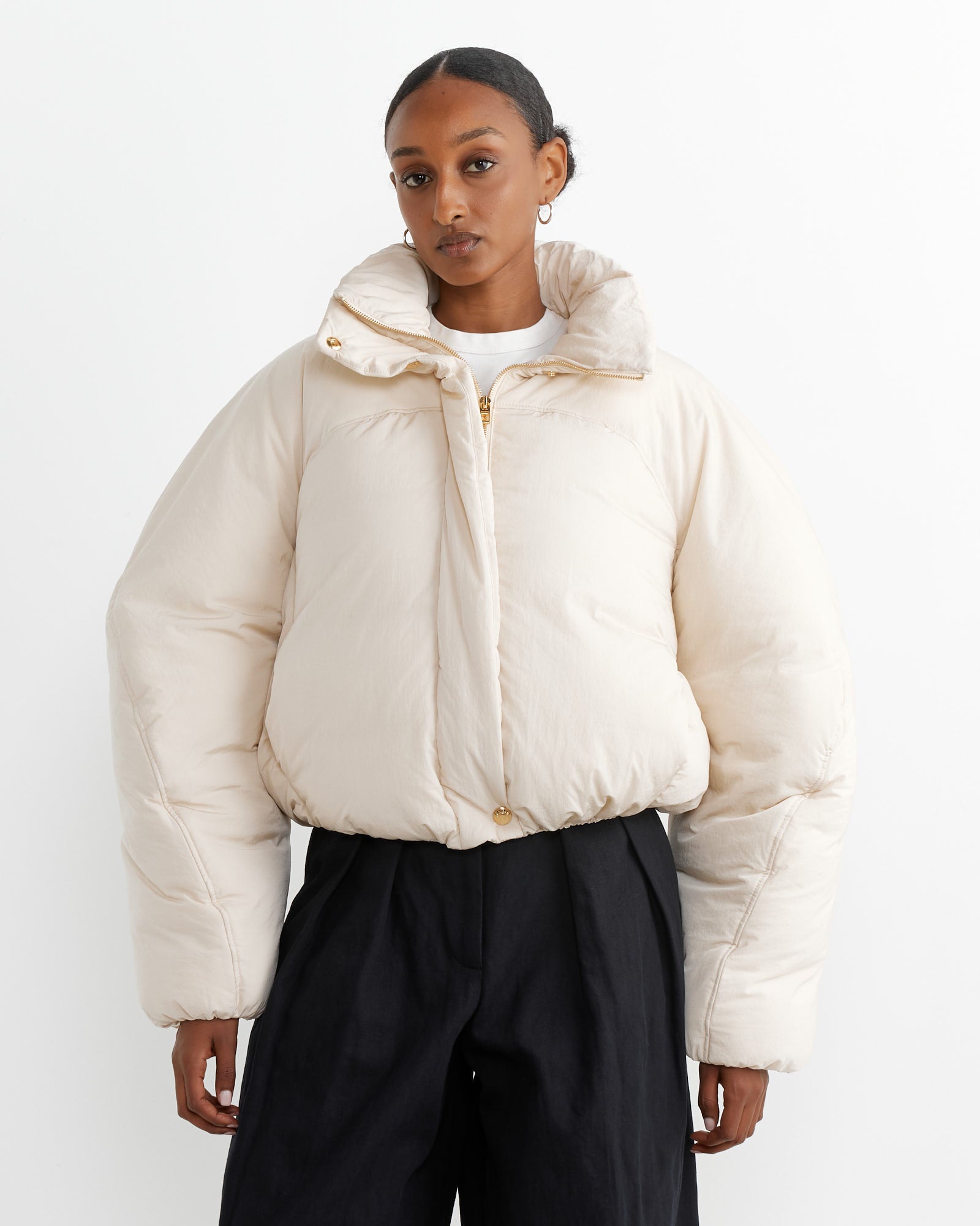 A person wearing a blue denim jacket and jeans, neon green shirt, and brown sunglasses stands facing the camera against a plain white background.