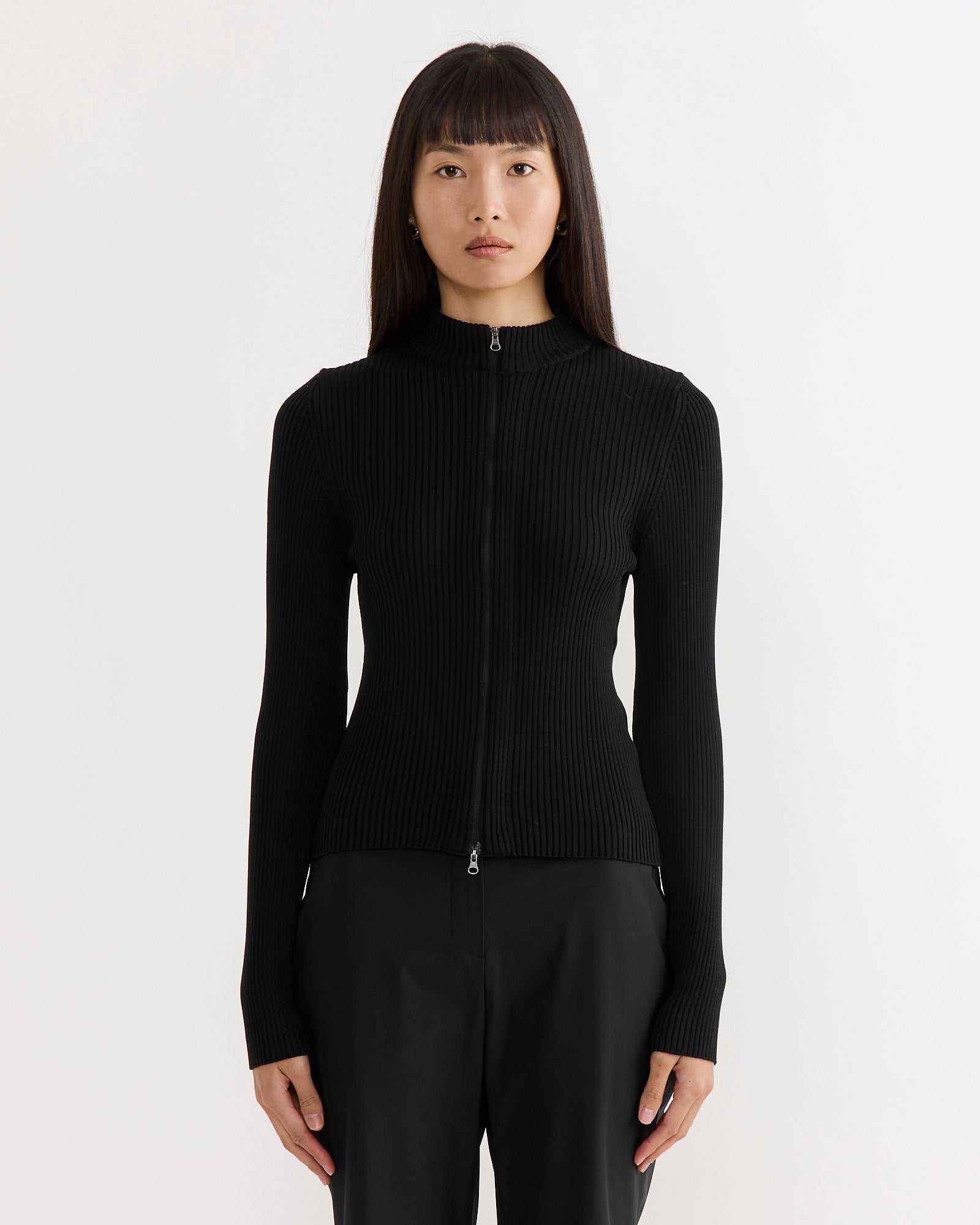 Vendor:High Gauge Rib Cropped Cardigan in Black