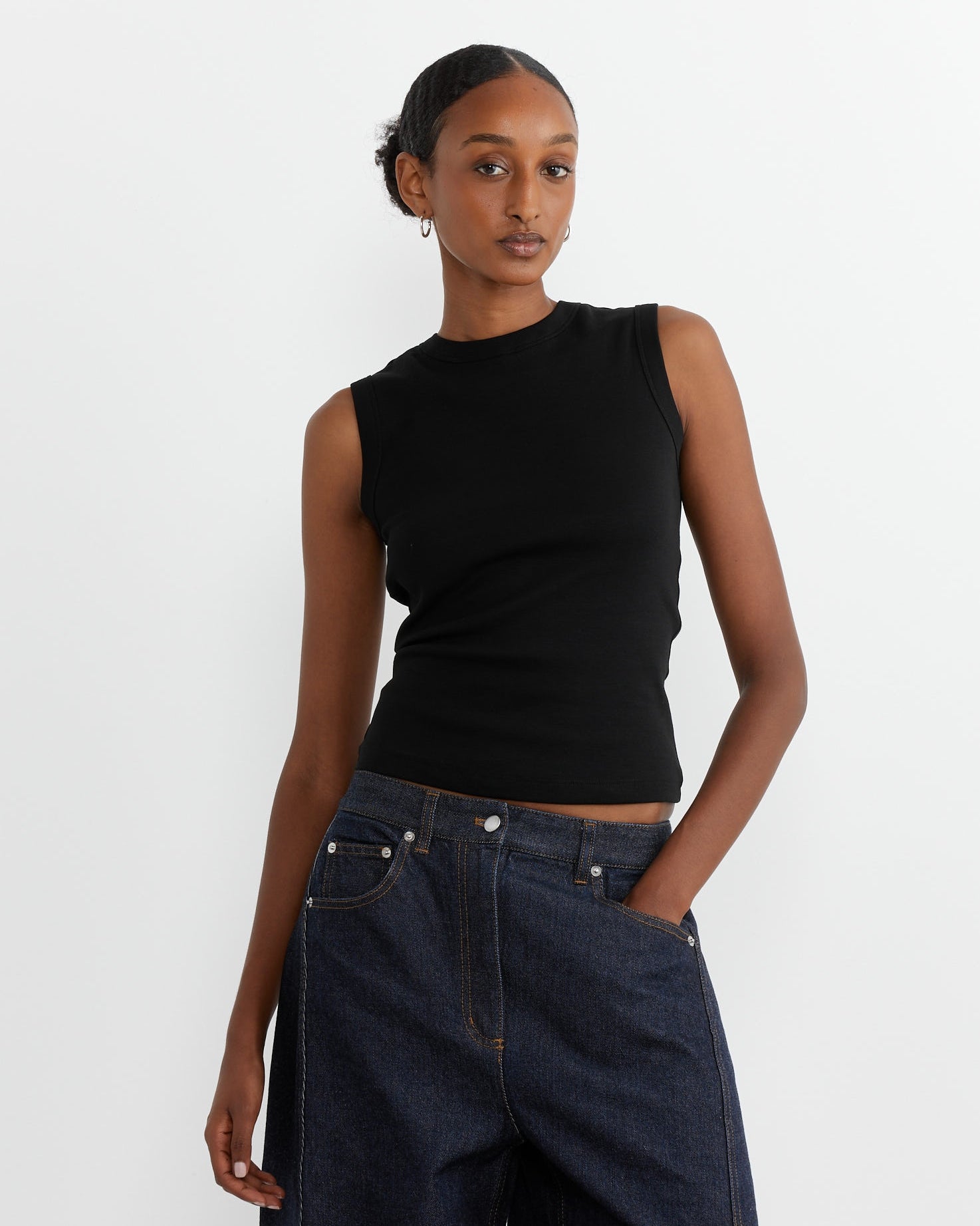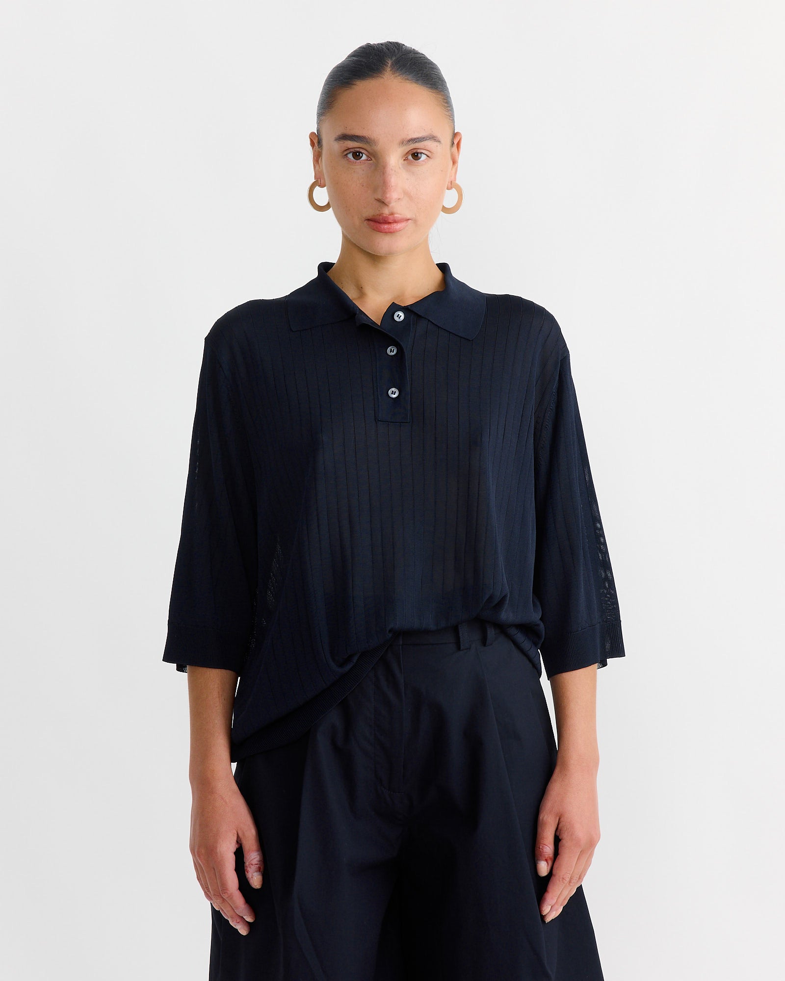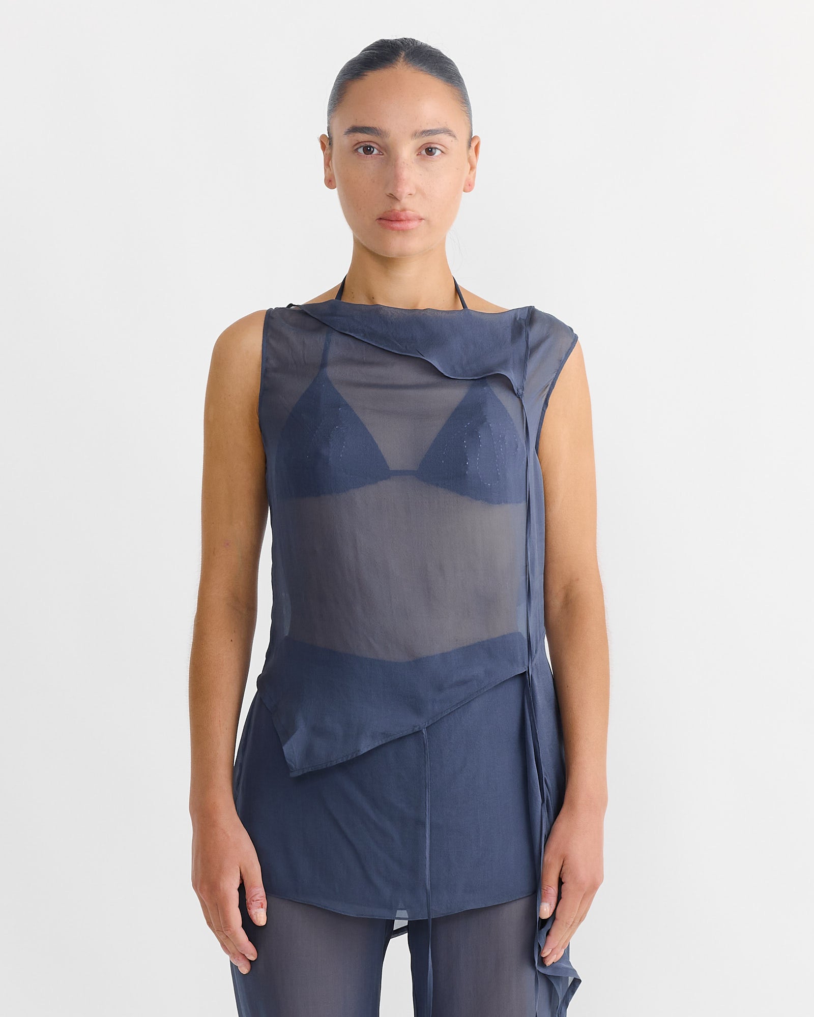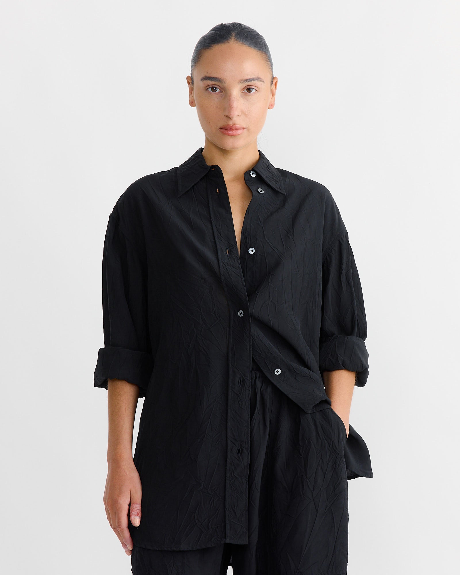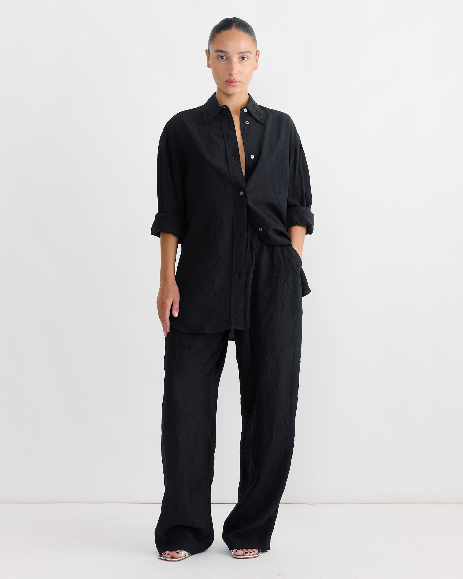 Vendor:Lotte Nylon Shirred Neck Top in Black