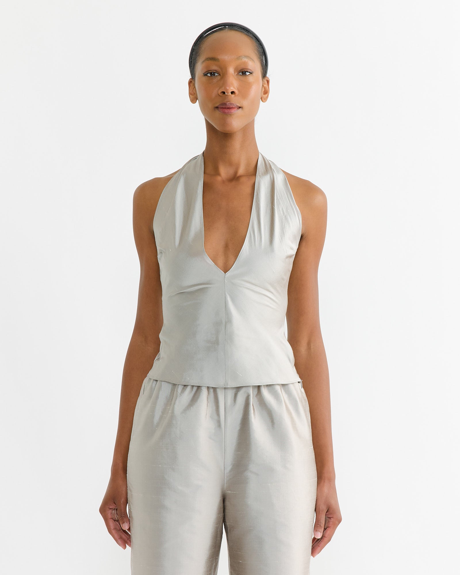 Vendor:Crushed Halter Top in Petite Pinstripe