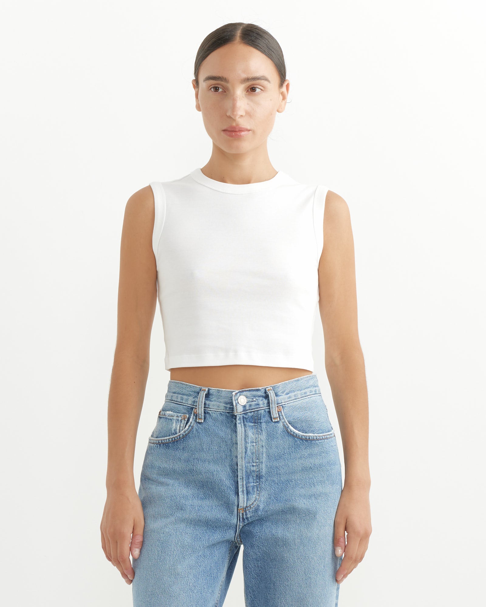 A modern take on the timeless tank top, FLORE FLORE's Esme Crop Tank is cut from a medium-weight baby rib and features a banded crewneck, scooped-out armholes, and a double-stitched cutt-off seam at the back.