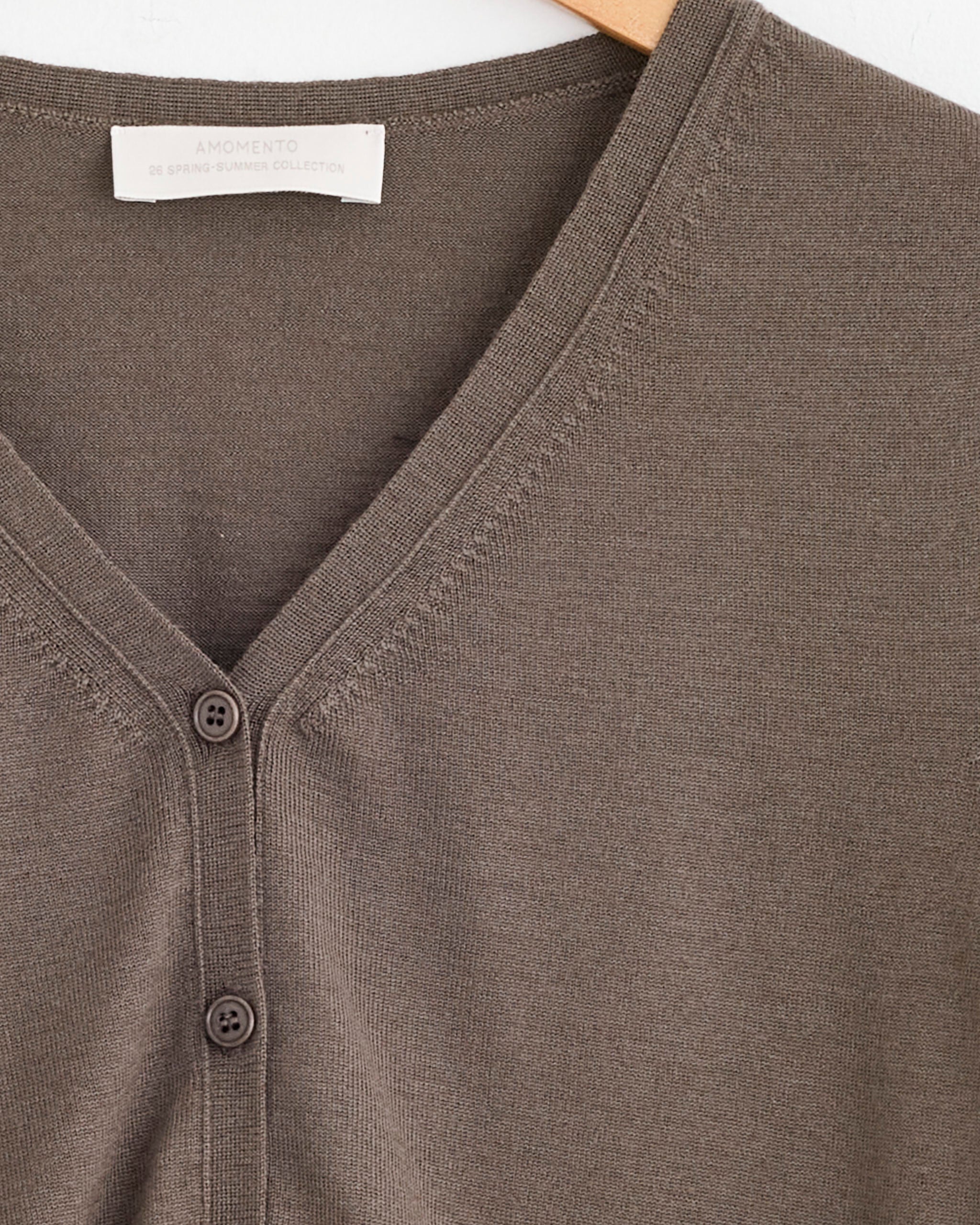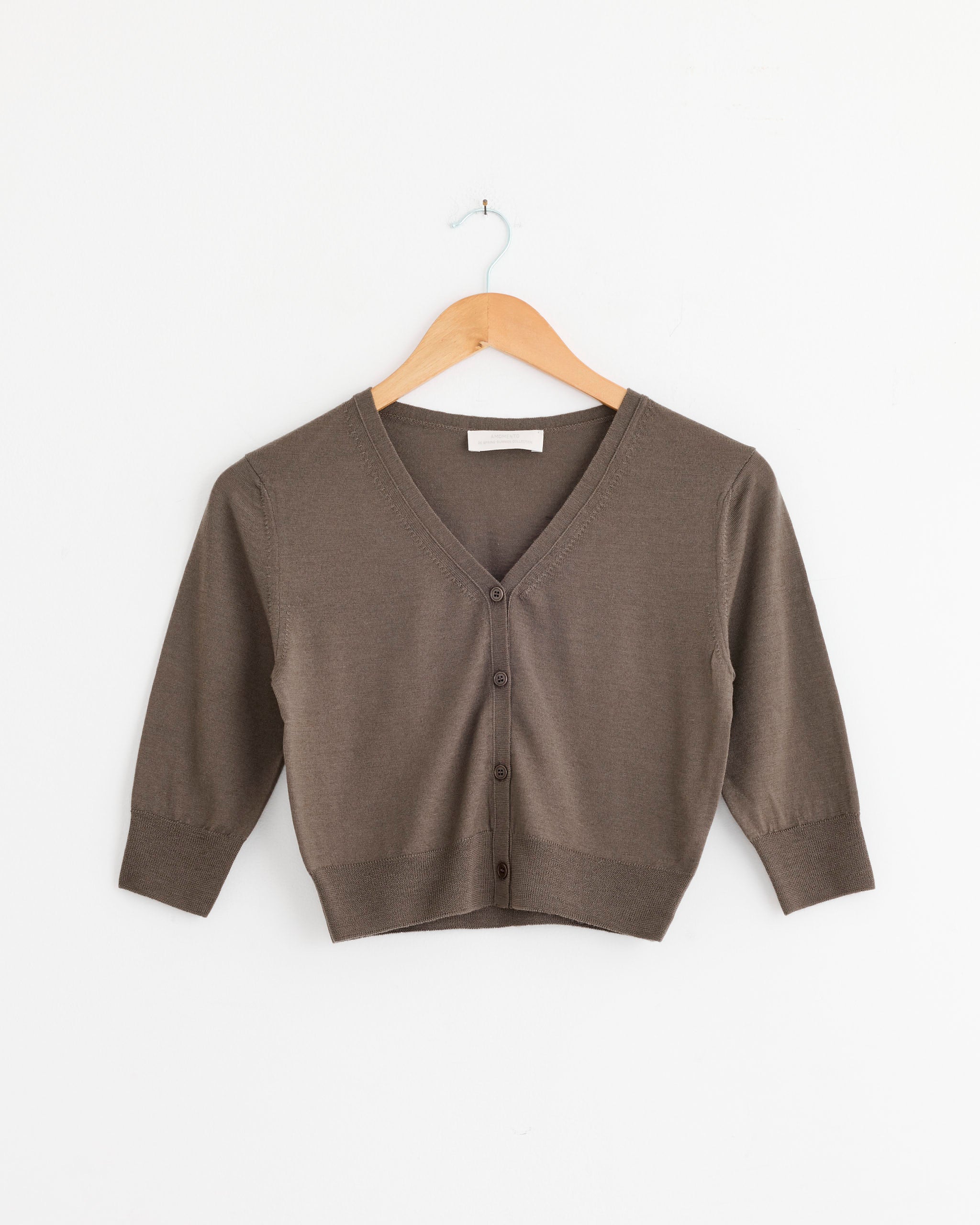 Wool V-Neck Crop Cardigan in Brown