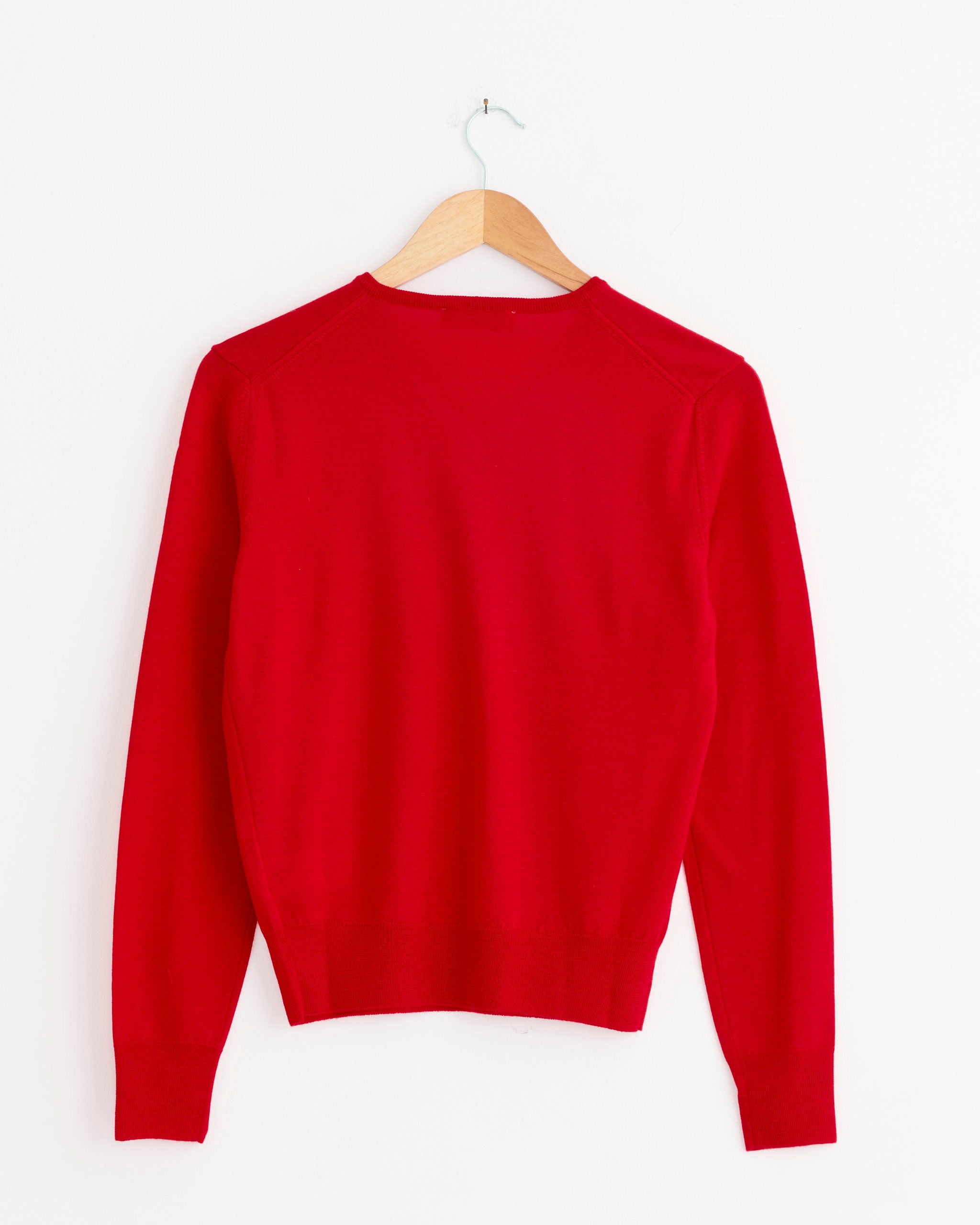 Wool V-Neck Knit in Red