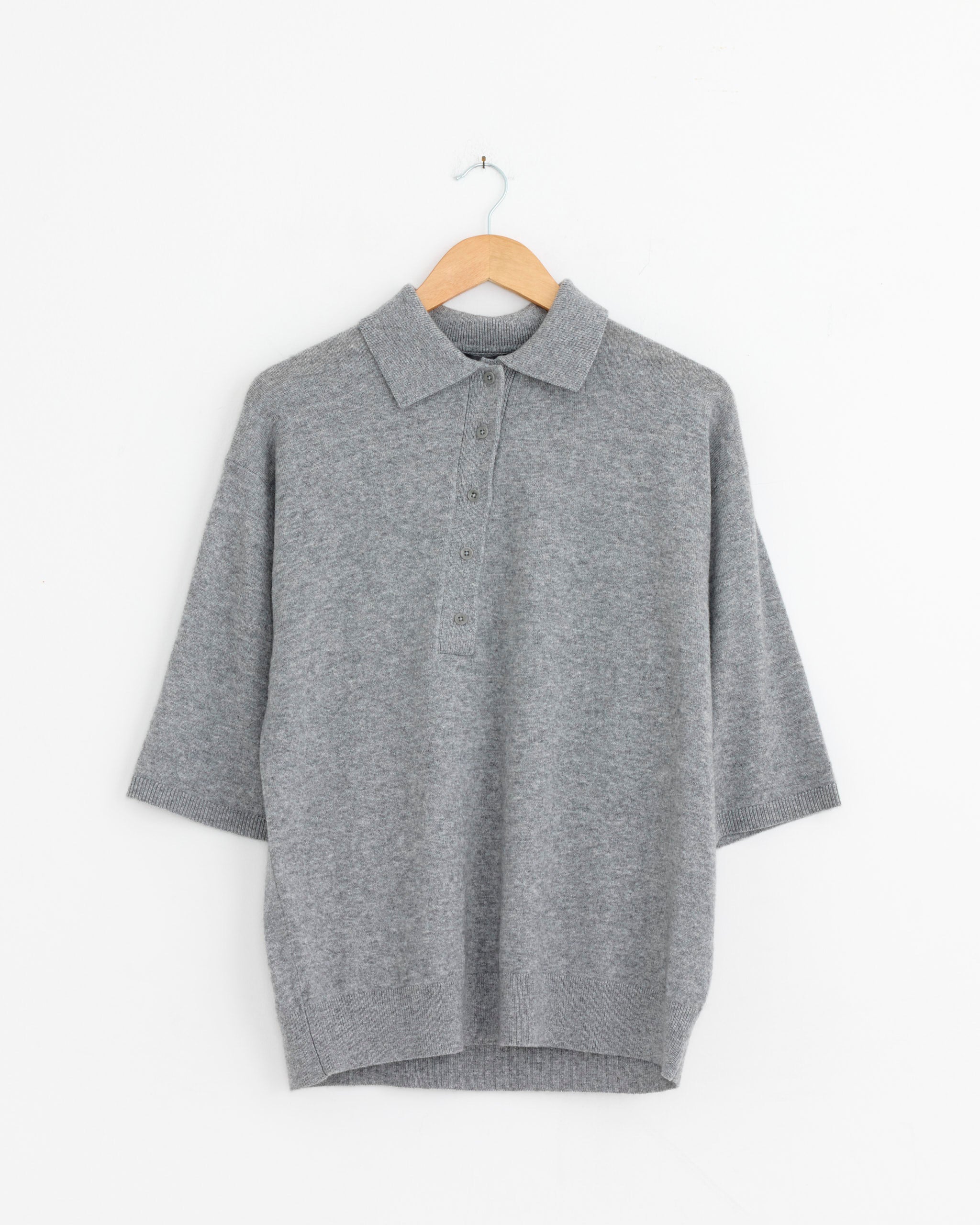 Washable Cashmere Oversized Easy Polo in Heather Grey