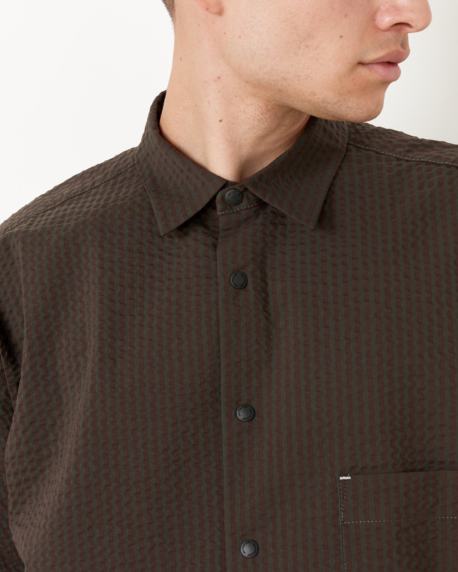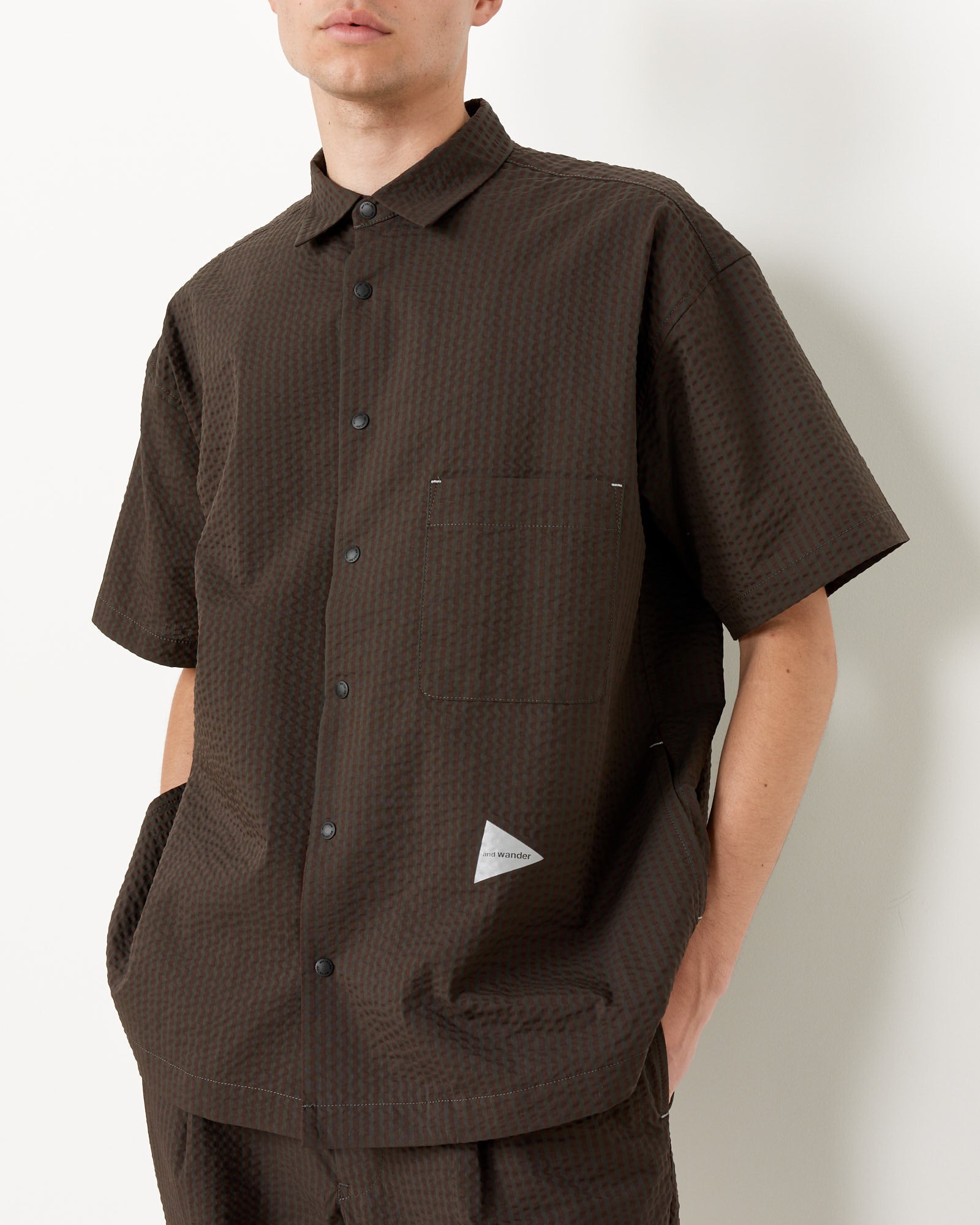 And Wander's Dry Soft Seersucker Shirt is done in a seersucker fabric utilizing Coolmax at the warp for its breathability, moisture-wicking, and quick-drying properties, and features rear pleats at the shoulders, a snap-front placket, a chest pocket, and reflective branding for enhanced visibility at night.