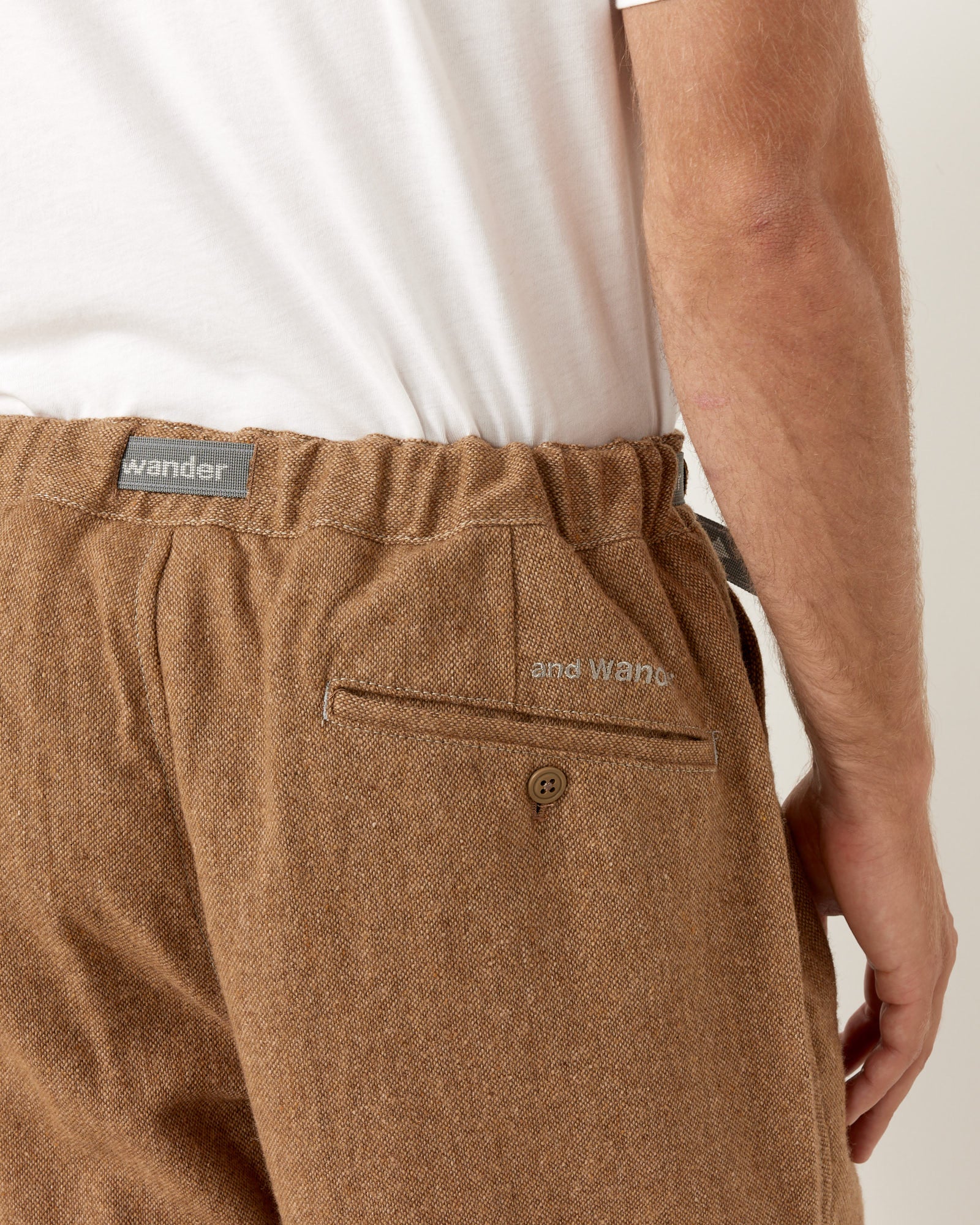 And Wander's REWOOL Tweed Wide Pant is cut with a wide leg silhouette from a sustainable fabric made from recycled polyester and raw materials, and features an elasticated waistband with an adjustable webbing belt and four-pocket styling.