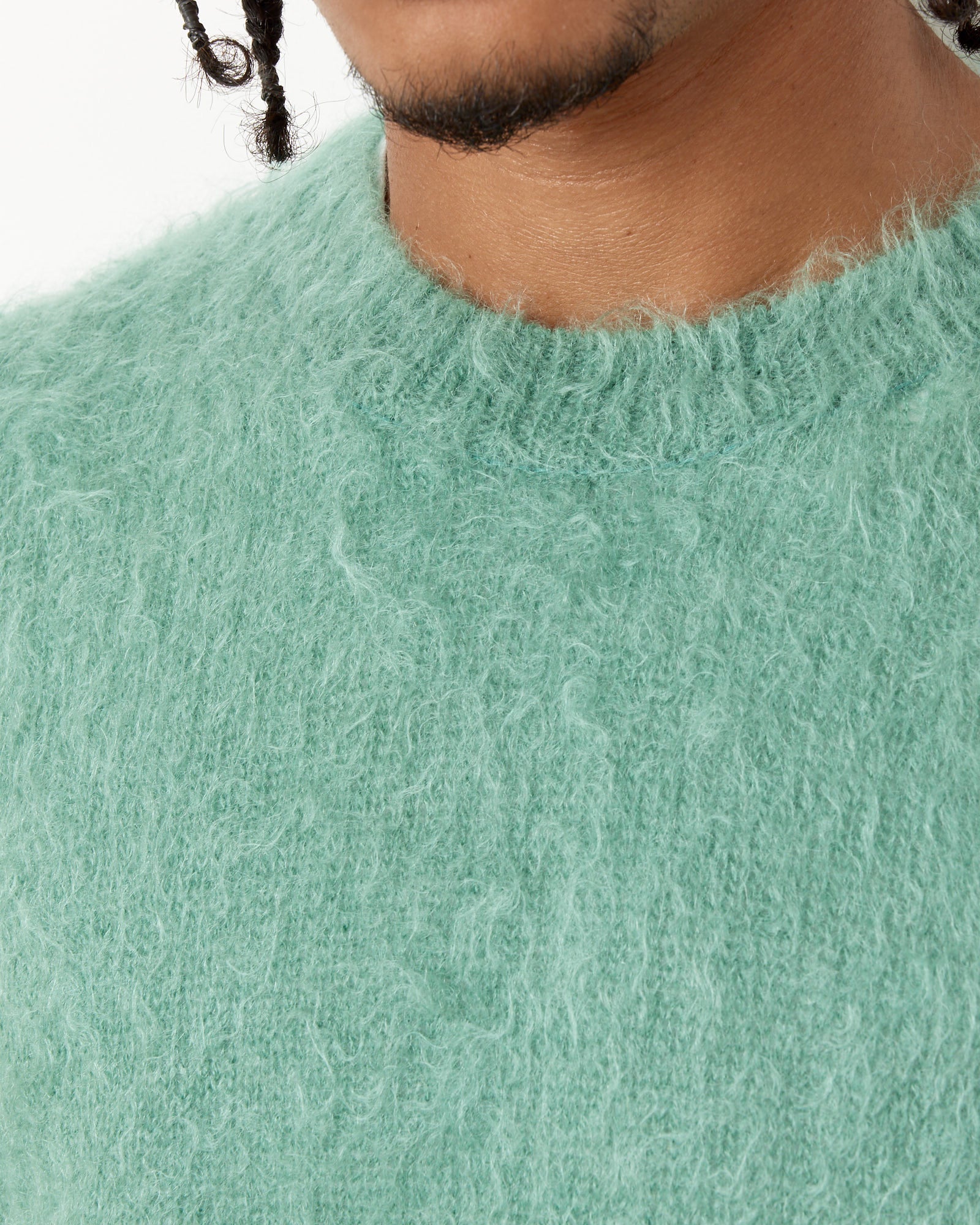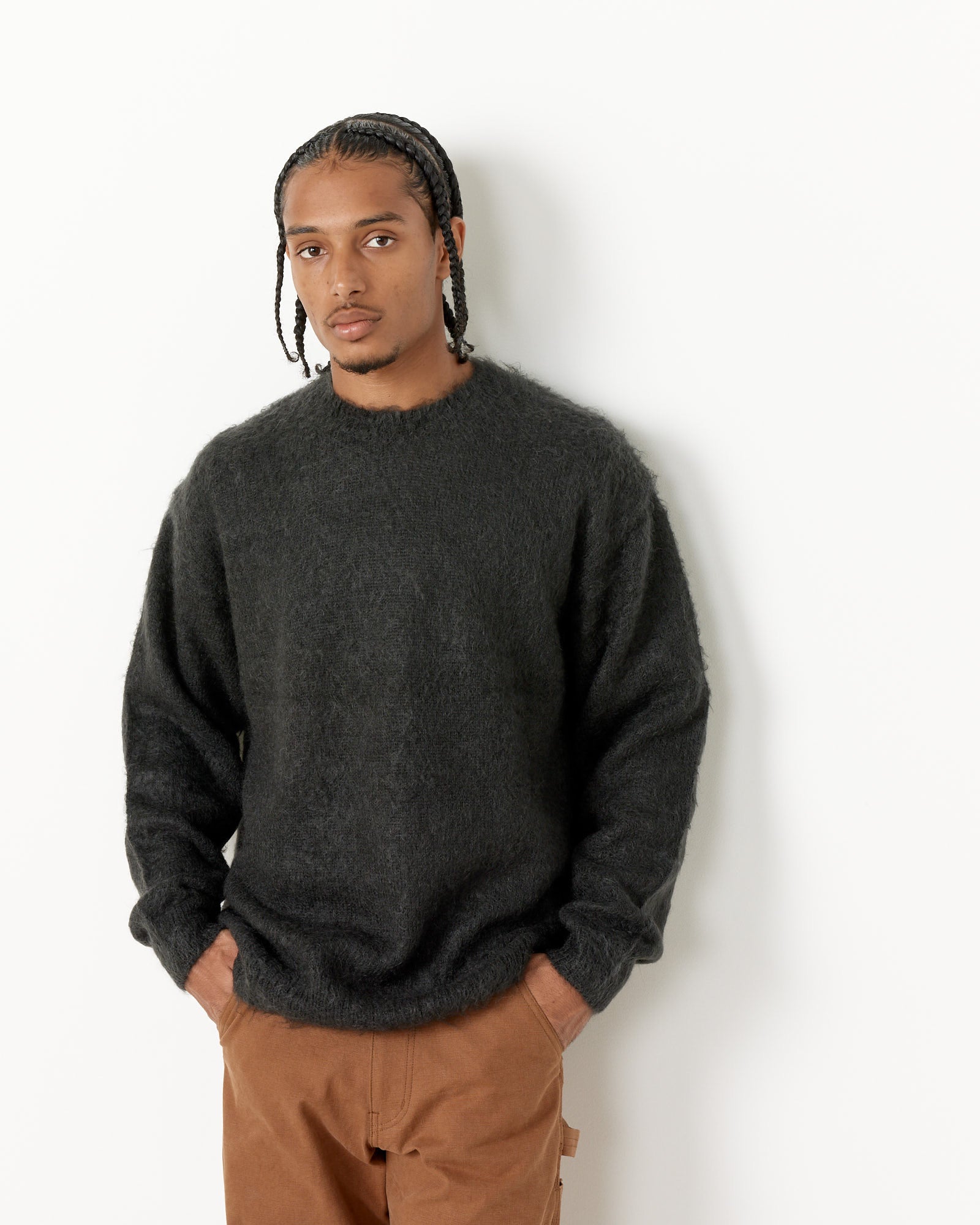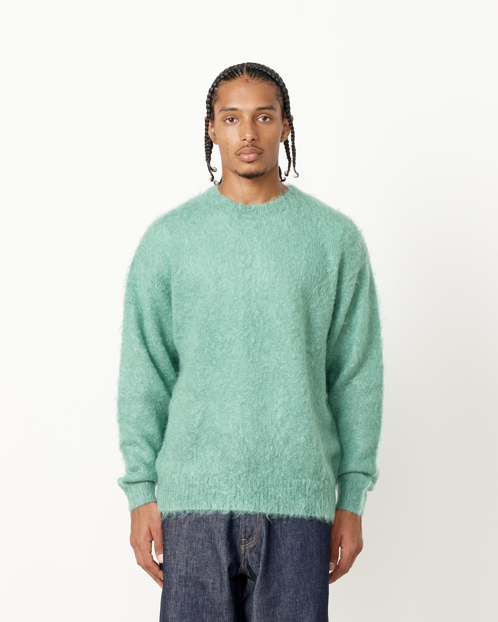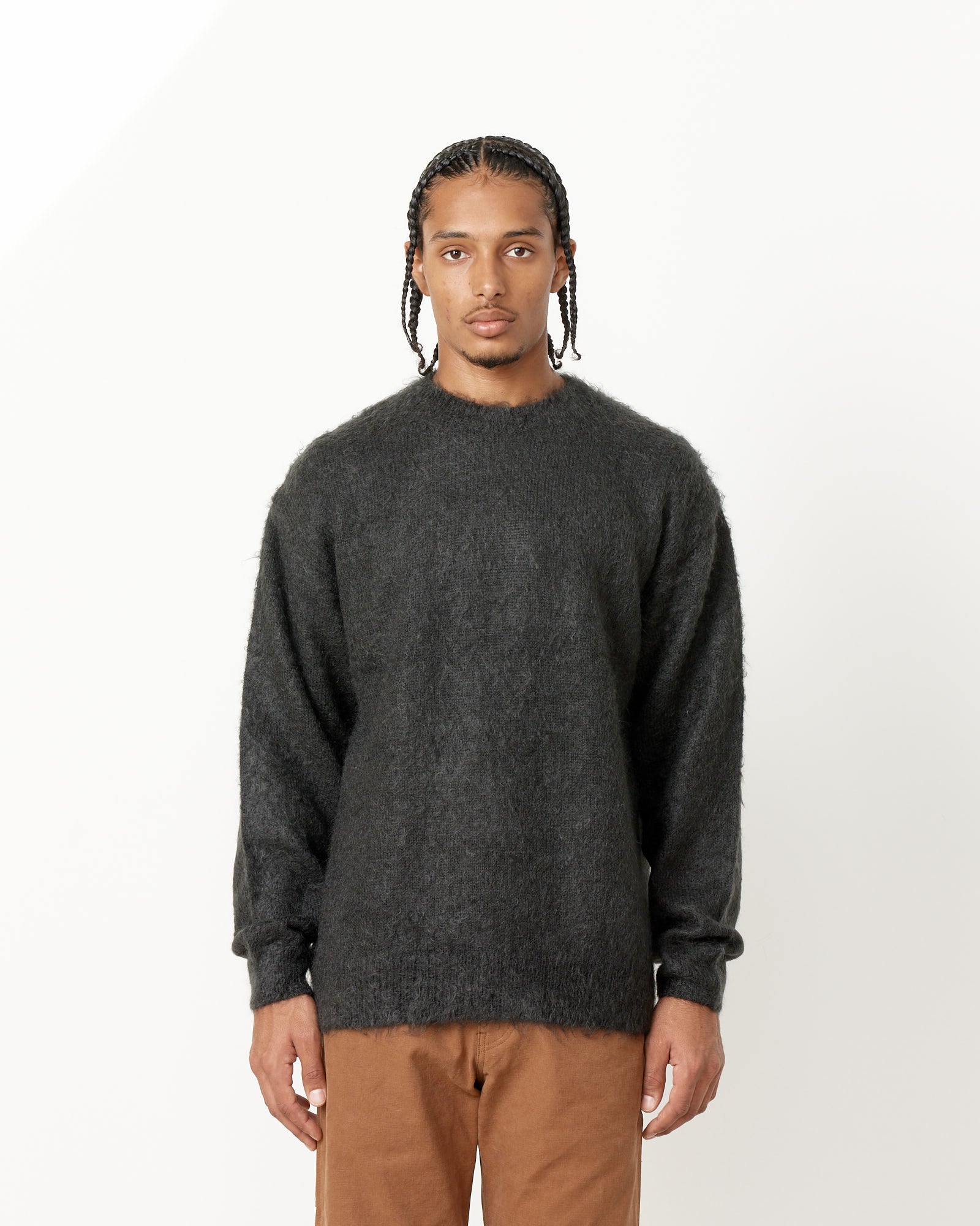 Auralee's Brushed Mohair Knit Pullover provides a luxe look and feel with a brushed blend of kid mohair and wool, and features a twisted-knit construction with rib-knit trim at the collar, hemline, and cuffs.
