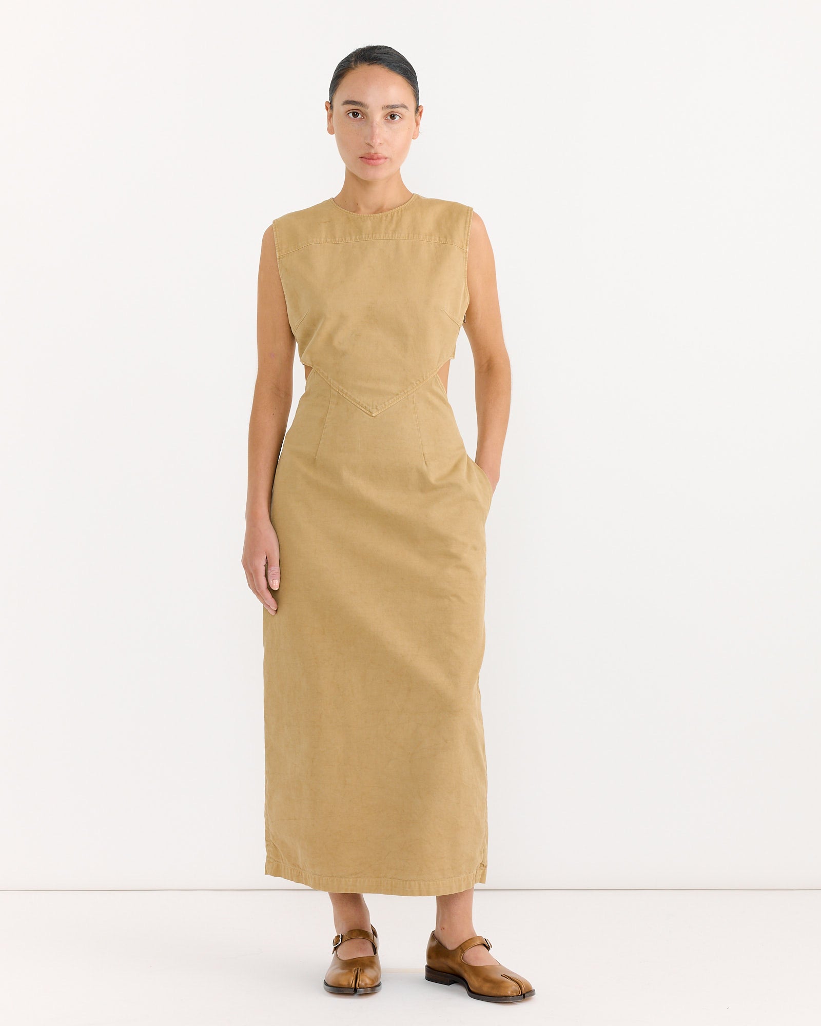 Dyed Finx Gabardine Dress in Beige