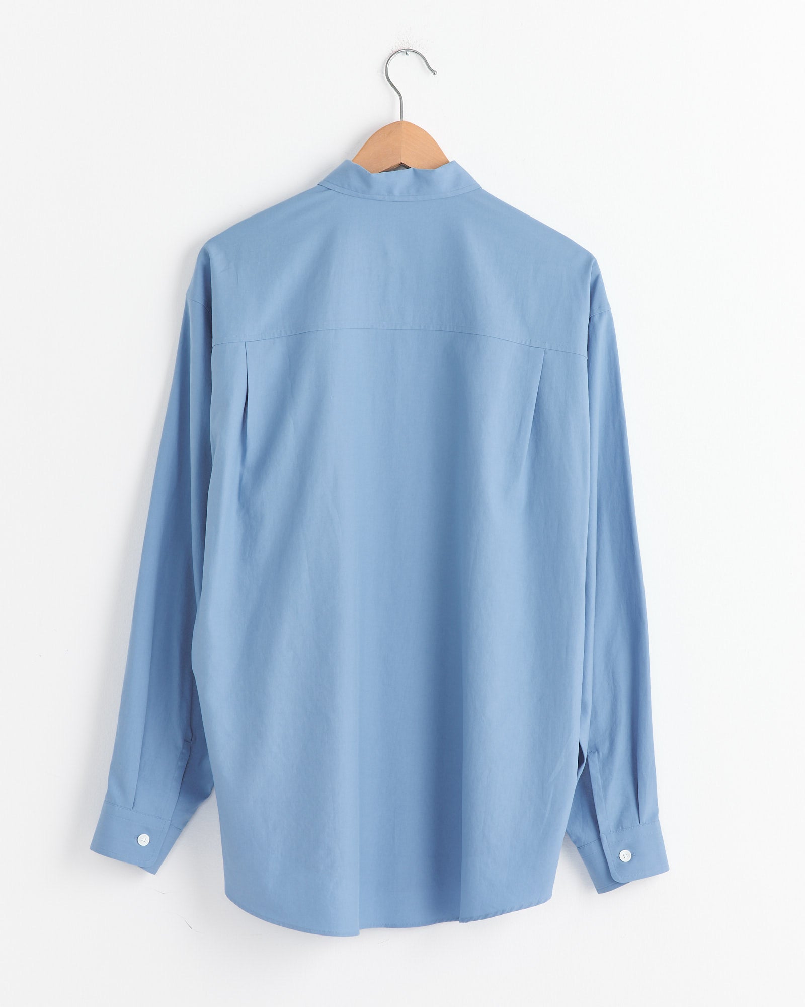The Auralee Finx Twill Big Shirt has a relaxed, oversized fit and is crafted from densely woven Egyptian extra-long staple Finx cotton. The fabric undergoes a meticulous hardening, washing, and kneading process to achieve a supple texture with a silk-like feel, an elegant sheen, and a beautiful drape.