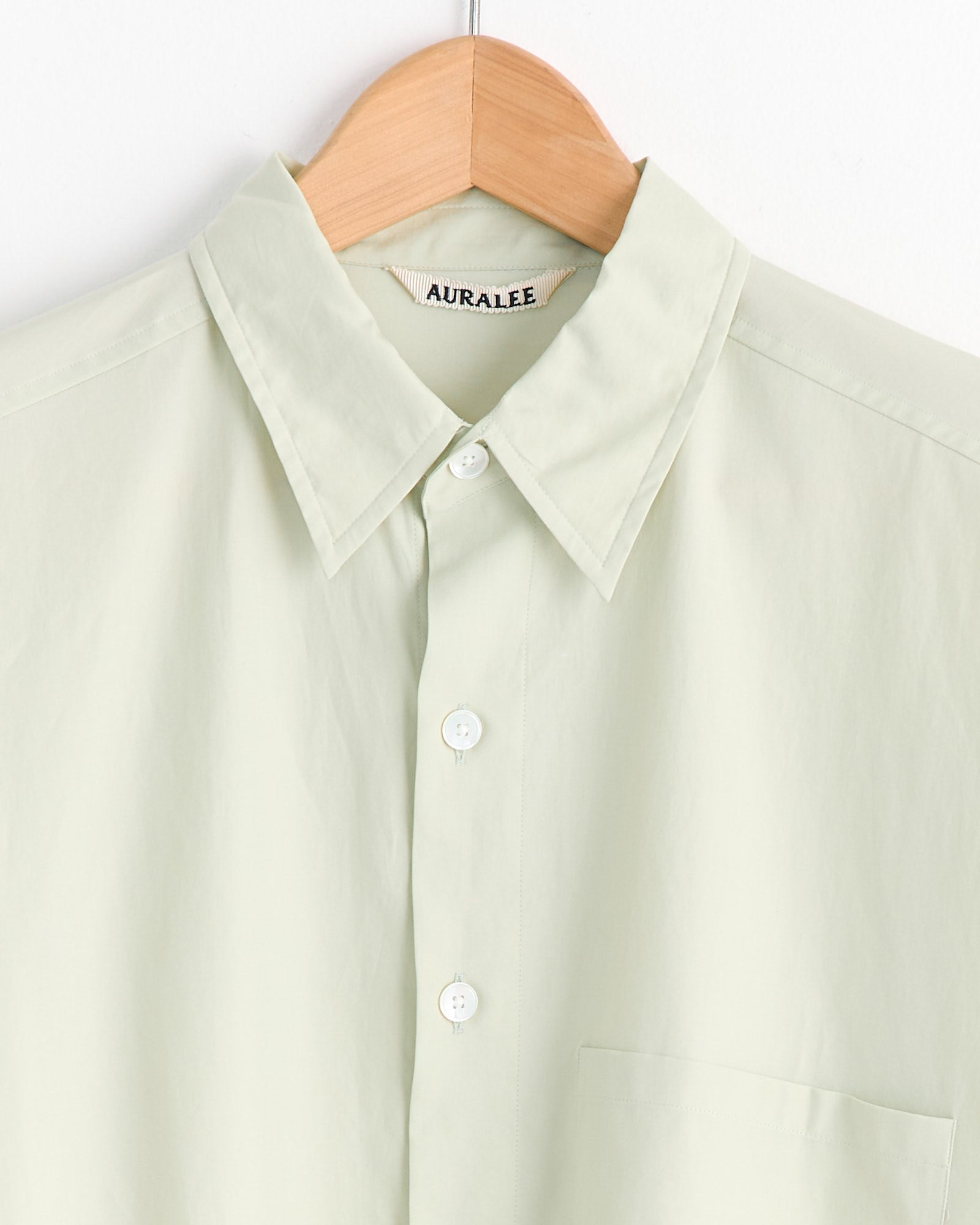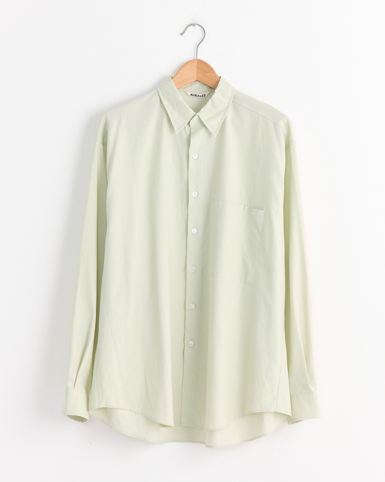 The Auralee Finx Twill Big Shirt has a relaxed, oversized fit and is crafted from densely woven Egyptian extra-long staple Finx cotton. The fabric undergoes a meticulous hardening, washing, and kneading process to achieve a supple texture with a silk-like feel, an elegant sheen, and a beautiful drape.