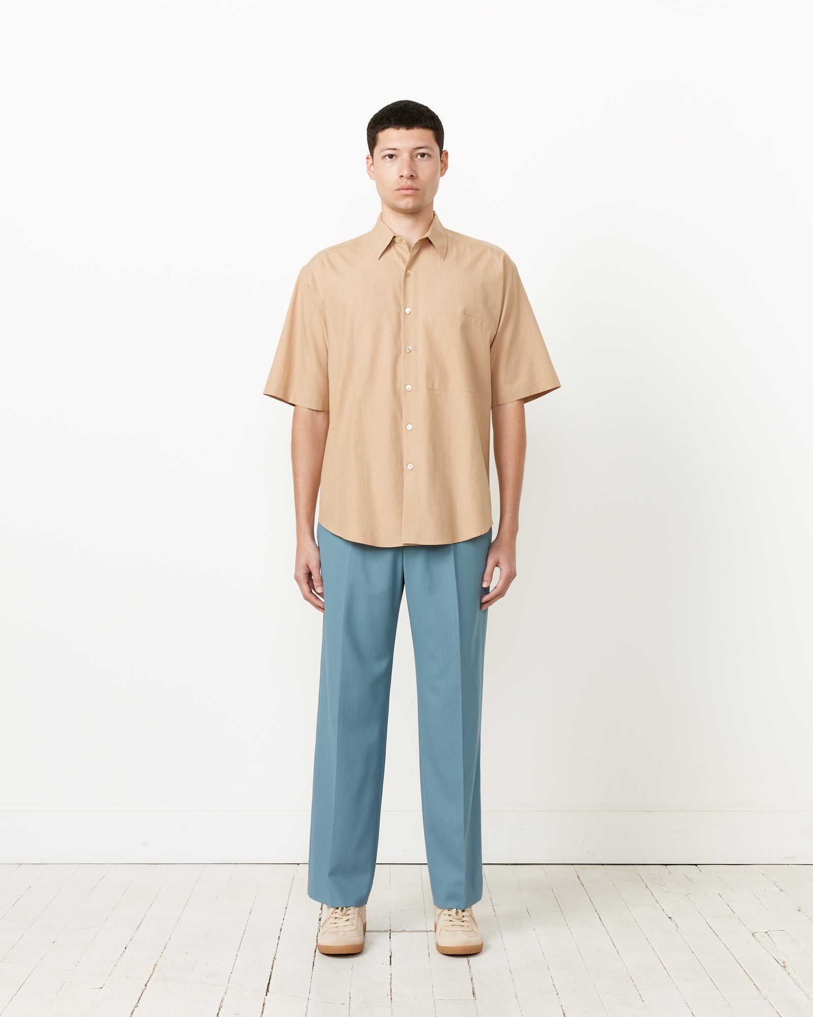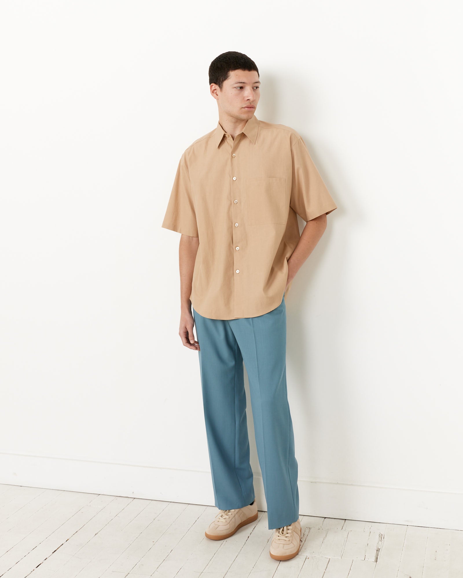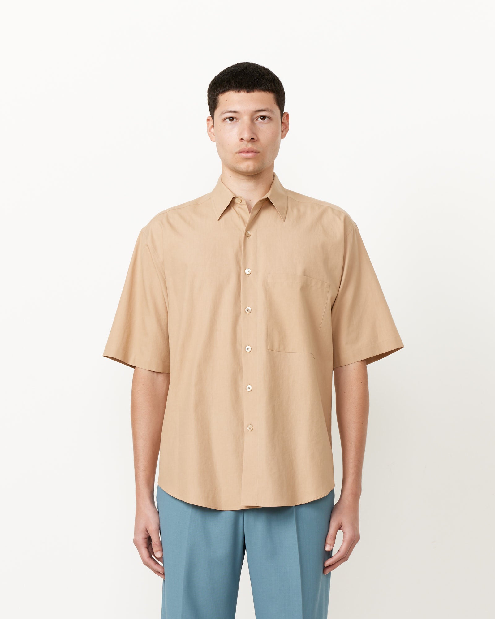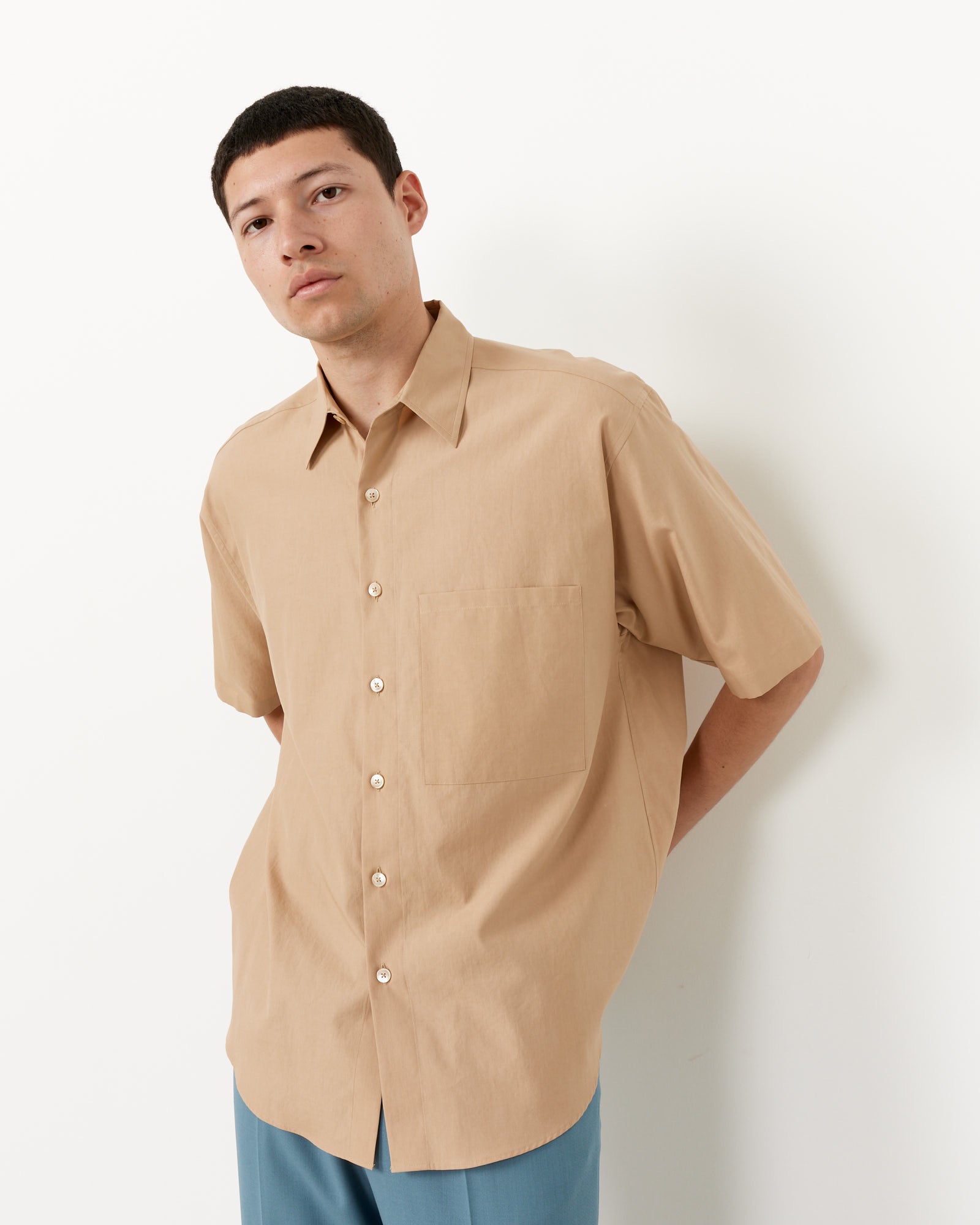 Washed Finx Twill Big Half Sleeve Shirt in Light Brown