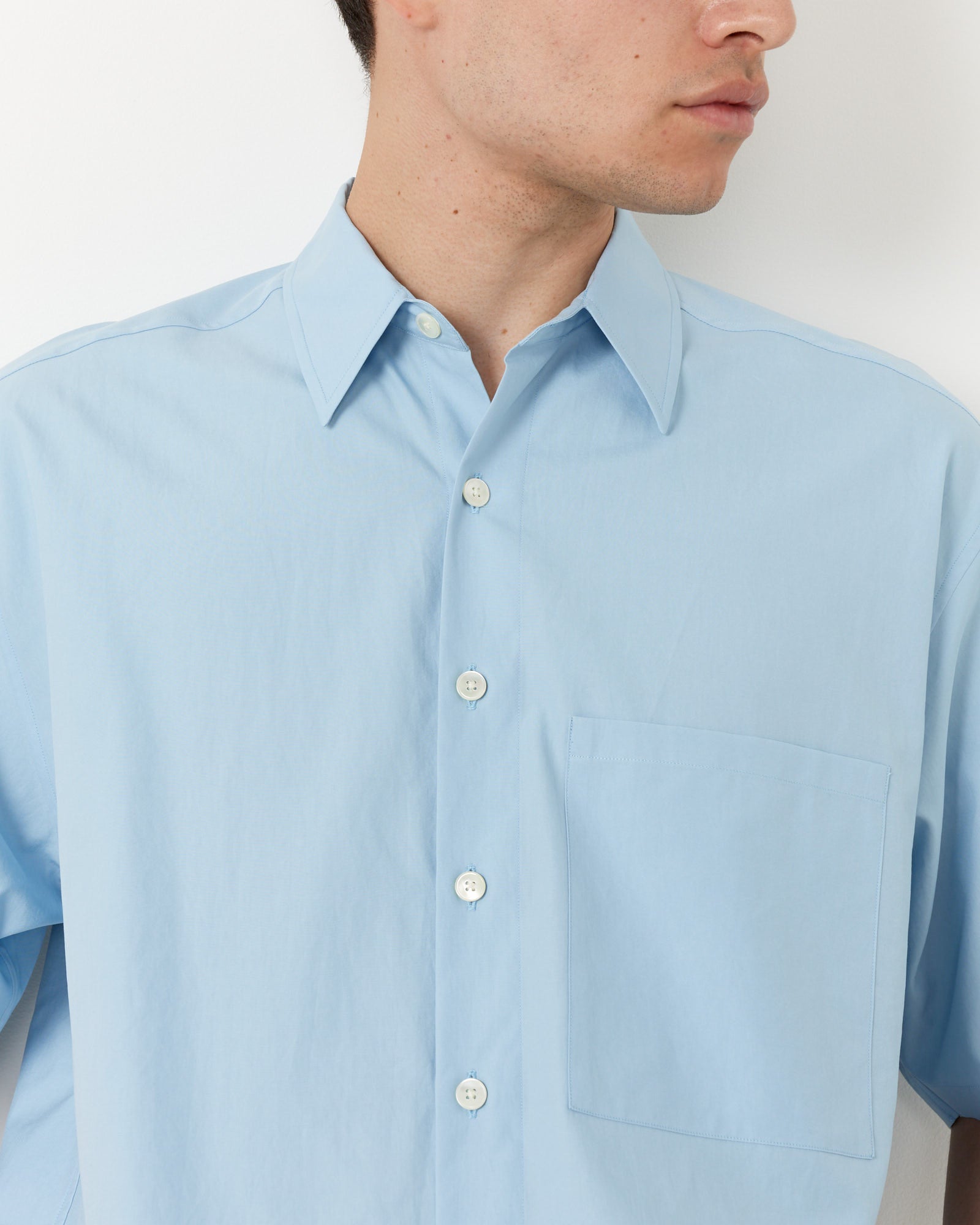Washed Finx Twill Big Half Sleeve Shirt in Sax Blue