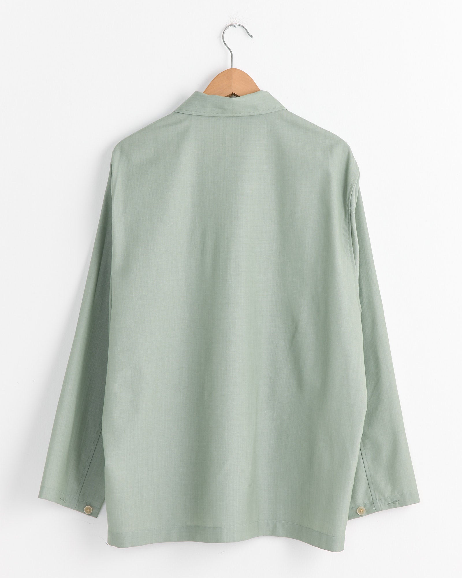 The Wool Herringbone Over Shirt has an oversized fit with a concealed front button closure for a clean, streamlined look. Crafted from Super 120’s fine wool, it offers a luxurious texture with a natural sheen and drape. A cargo pocket adds functionality while maintaining a refined silhouette.