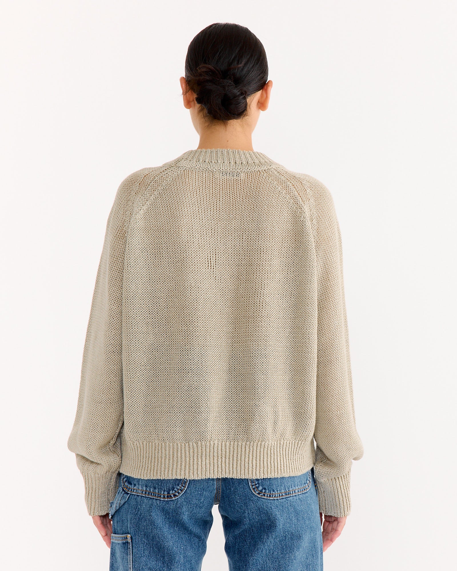The B SIDES Lind Raglan Crew is crafted from deadstock Italian linen yarn, offering a lightweight feel with a clean, sporty finish. Designed with a classic fit, it features openwork raglan fashioning unique to B SIDES, making it a versatile knit for layering or standalone wear.