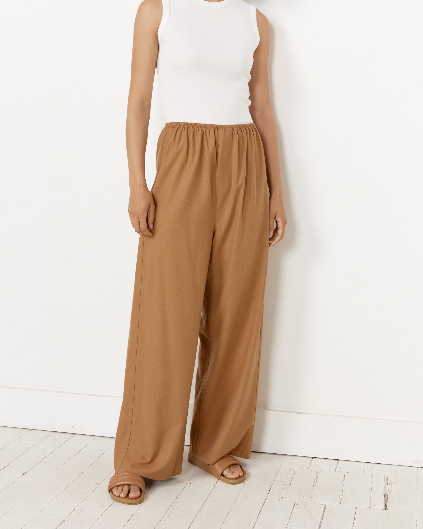 Baserange's Stoa Pants offer equal measures of easy and elevated with a draping, wide-leg silhouette cut from silk, and an elasticated waistband for day-long comfort.