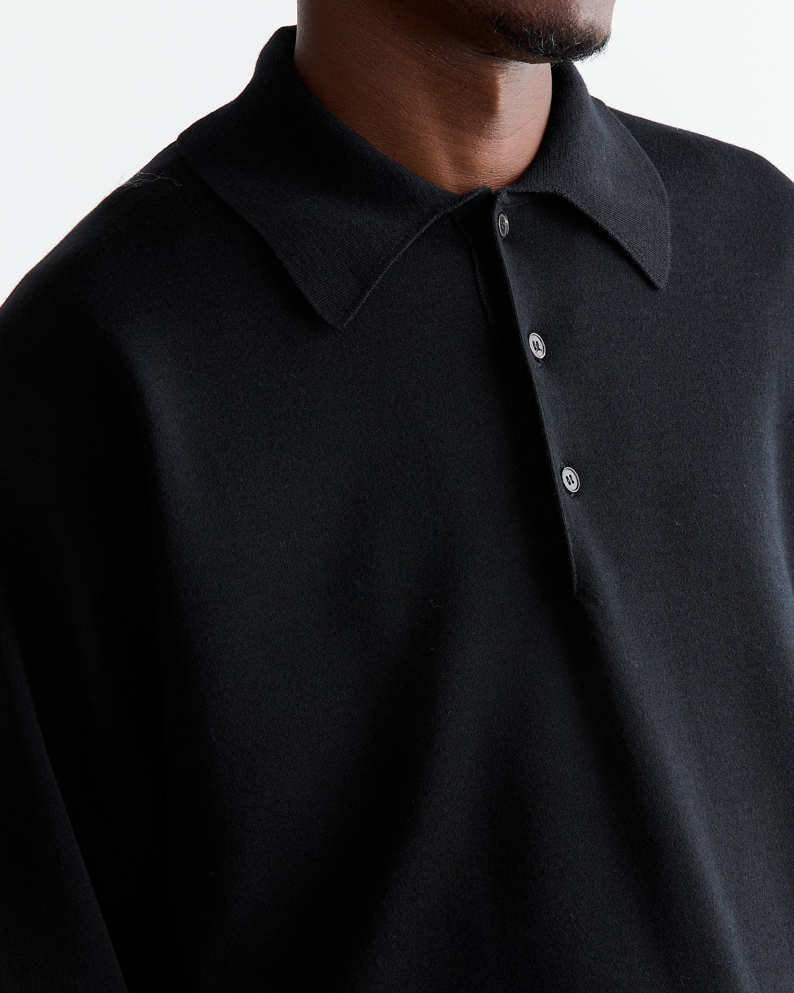 The Batoner 32 Gauge Smooth Wool Polo is crafted from super extra fine merino wool, renowned for its softness, often used for undergarments. Made with tight tension on a high-gauge knitting machine, this classic design combines the finest raw materials with expert techniques in fabric selection and knitting. The result is a timeless, standard silhouette.