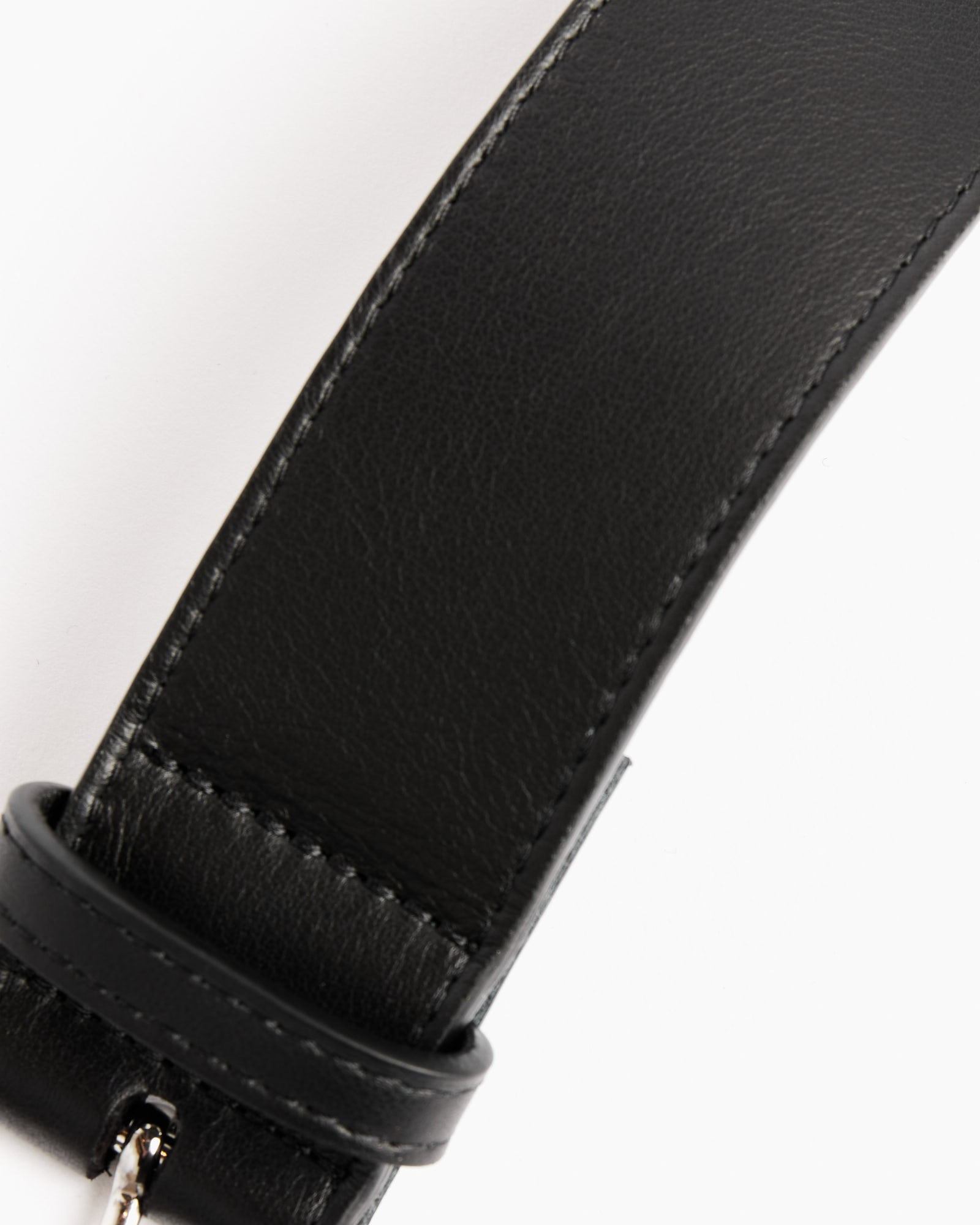 Beaufille's Slant Belt features an oversized buckle with a grained 1.5"-wide leather strap.