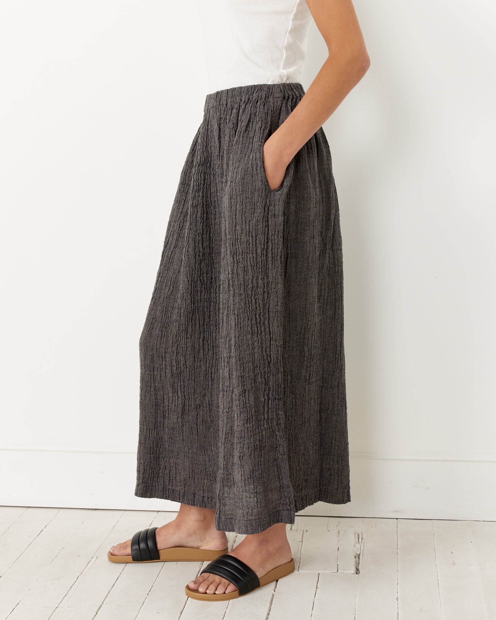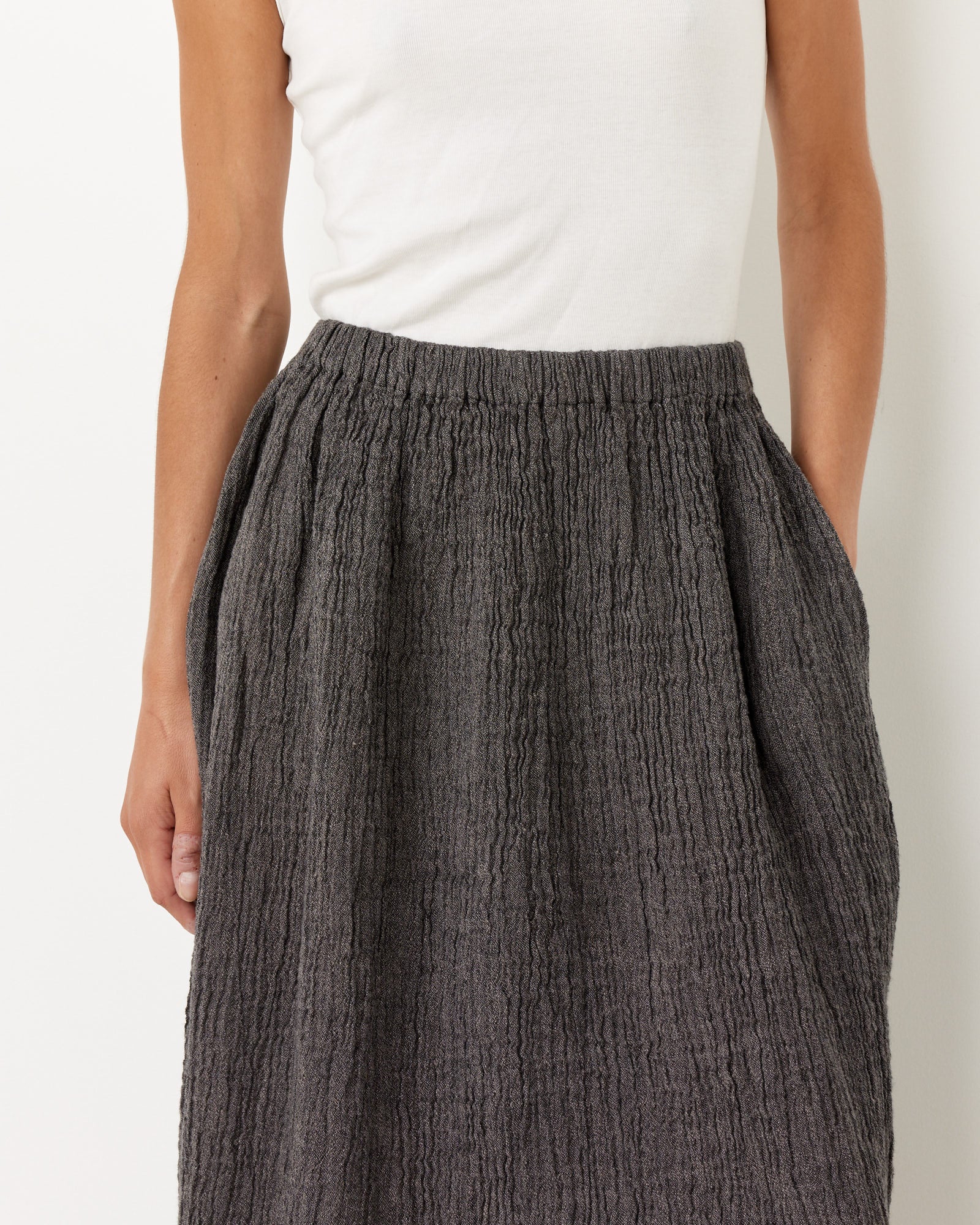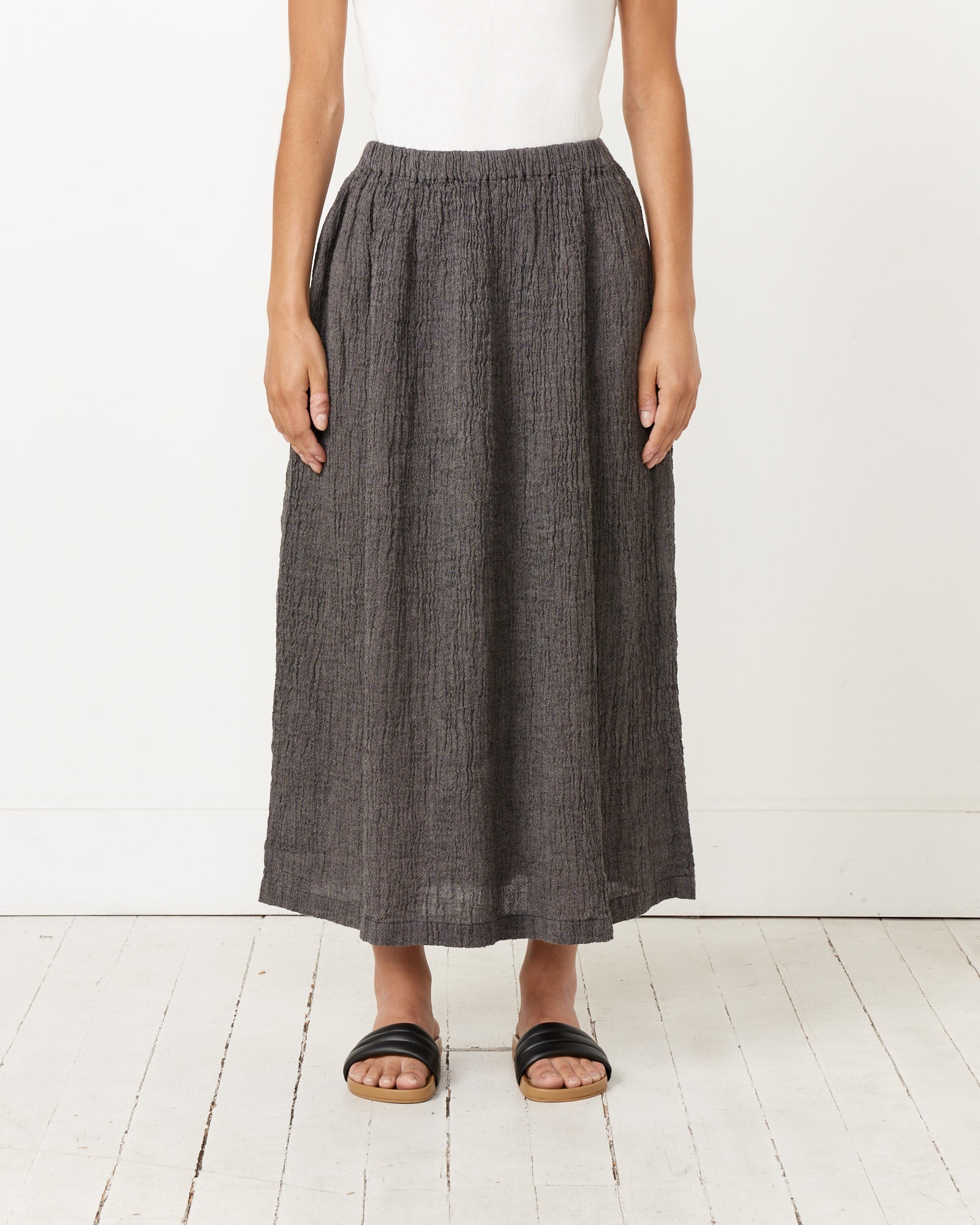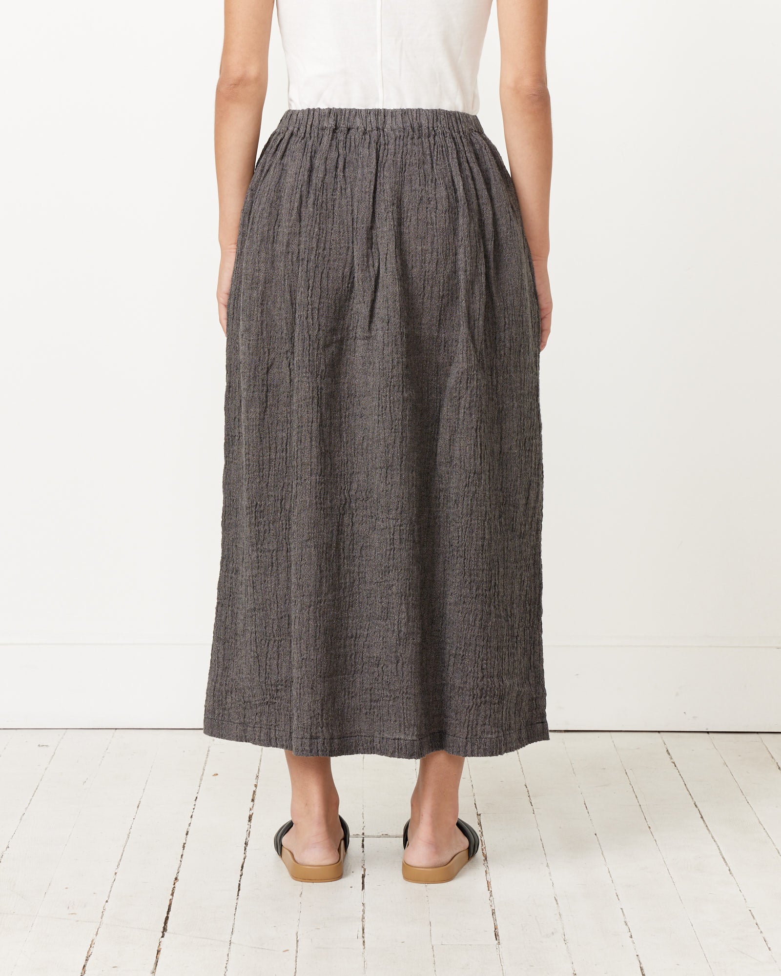 Black Crane's Classic Skirt is crafted in a textured, slightly sheer linen-blend fabric cut in a relaxed straight silhouette featuring a shirred waistline with an adjustable self-fabric tie and sides seam pockets at the sides.