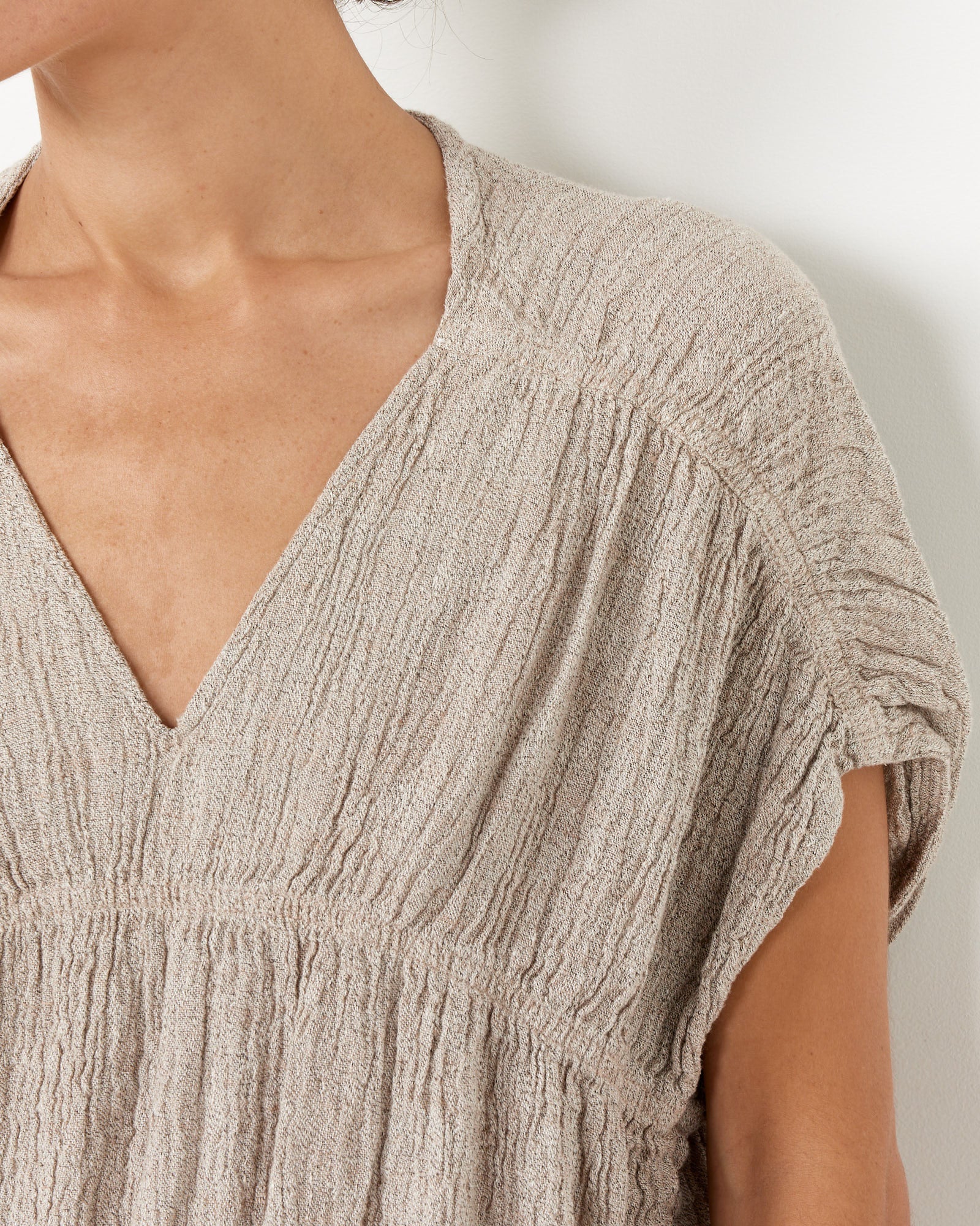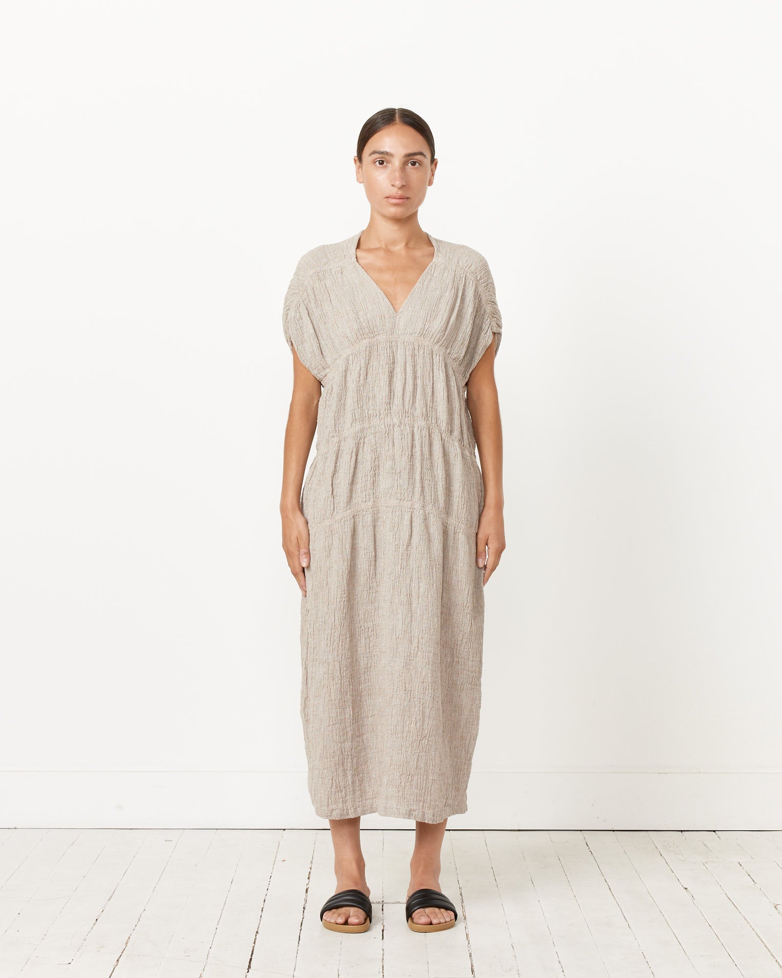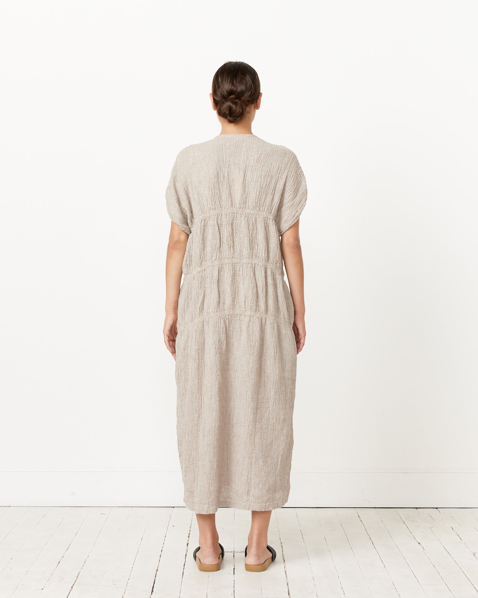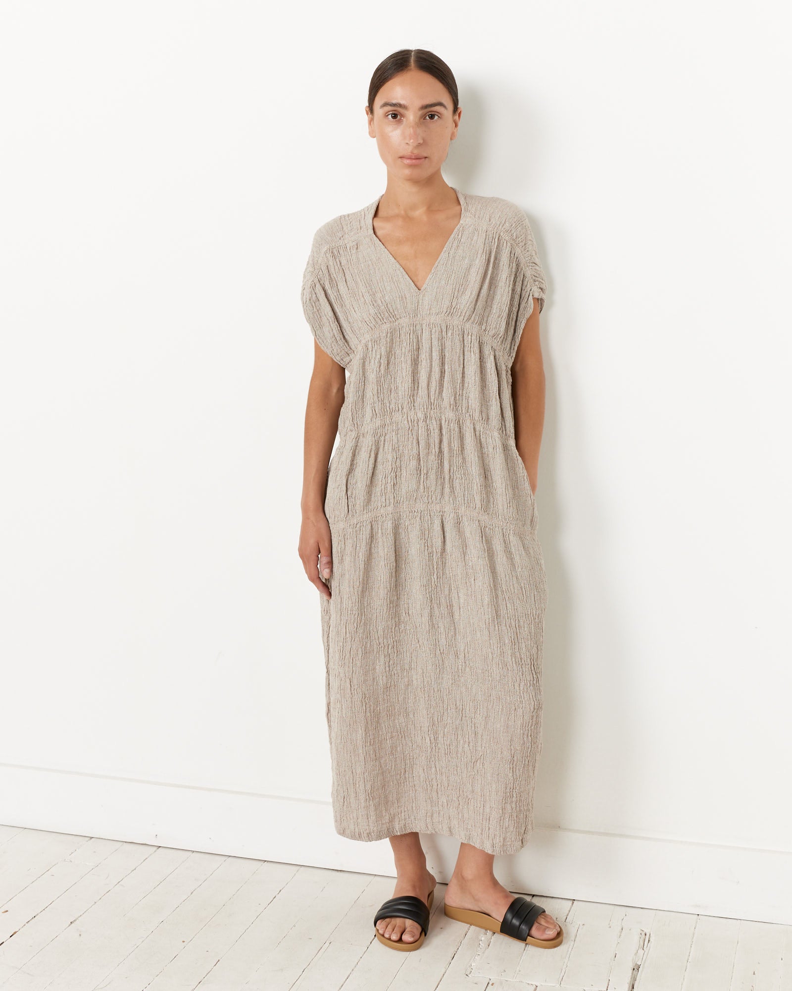 Cut from a slightly sheer linen-blend fabric with a lovely texture, Black Crane's Gem Neck Dress features shirred detailing with elastic across the shoulder and body, side seam pockets, and a gem-shaped neckline.