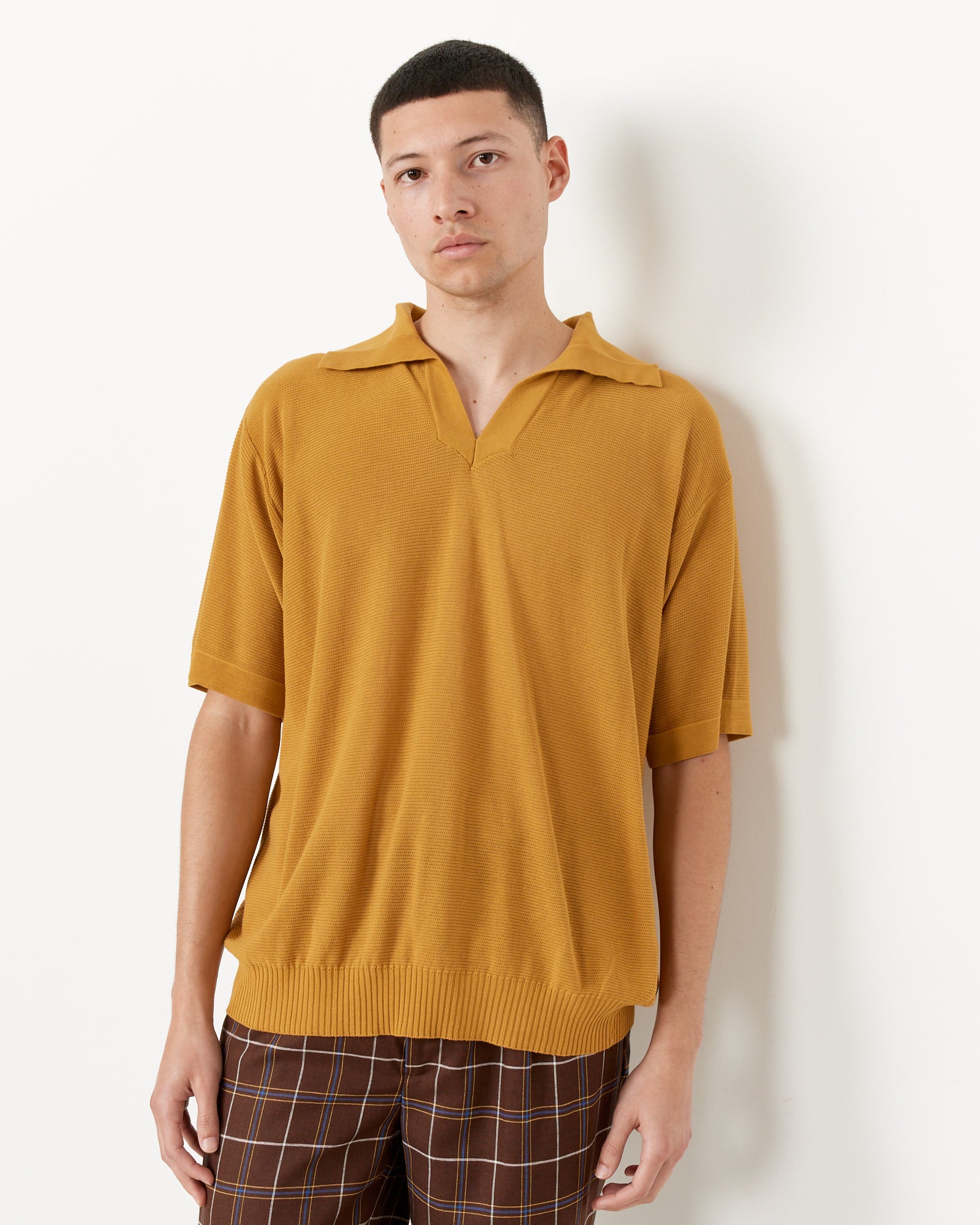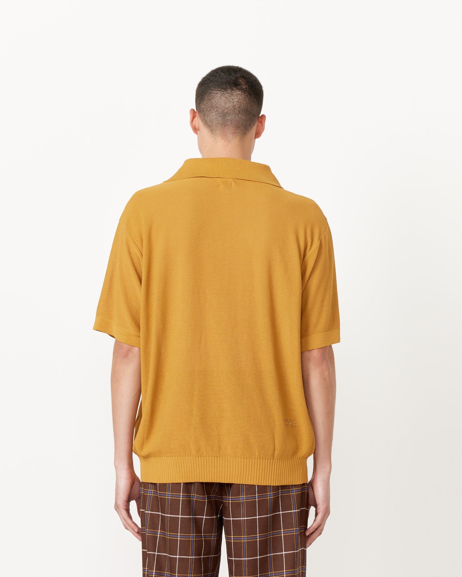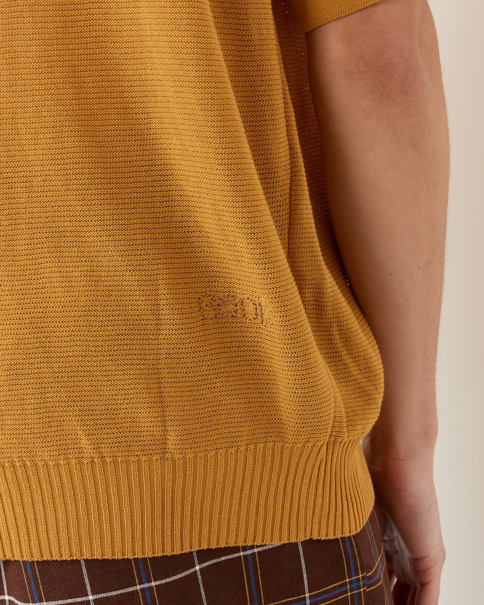 Inspired by a polo from the 1970s in Bode's archives, their Boxy Polo recreates the boxy silhouette of the original and features an enlarged spread polo collar with an open placket, ribbed trim at the cuffs and hem, and a hand-embroidered Bode logo.