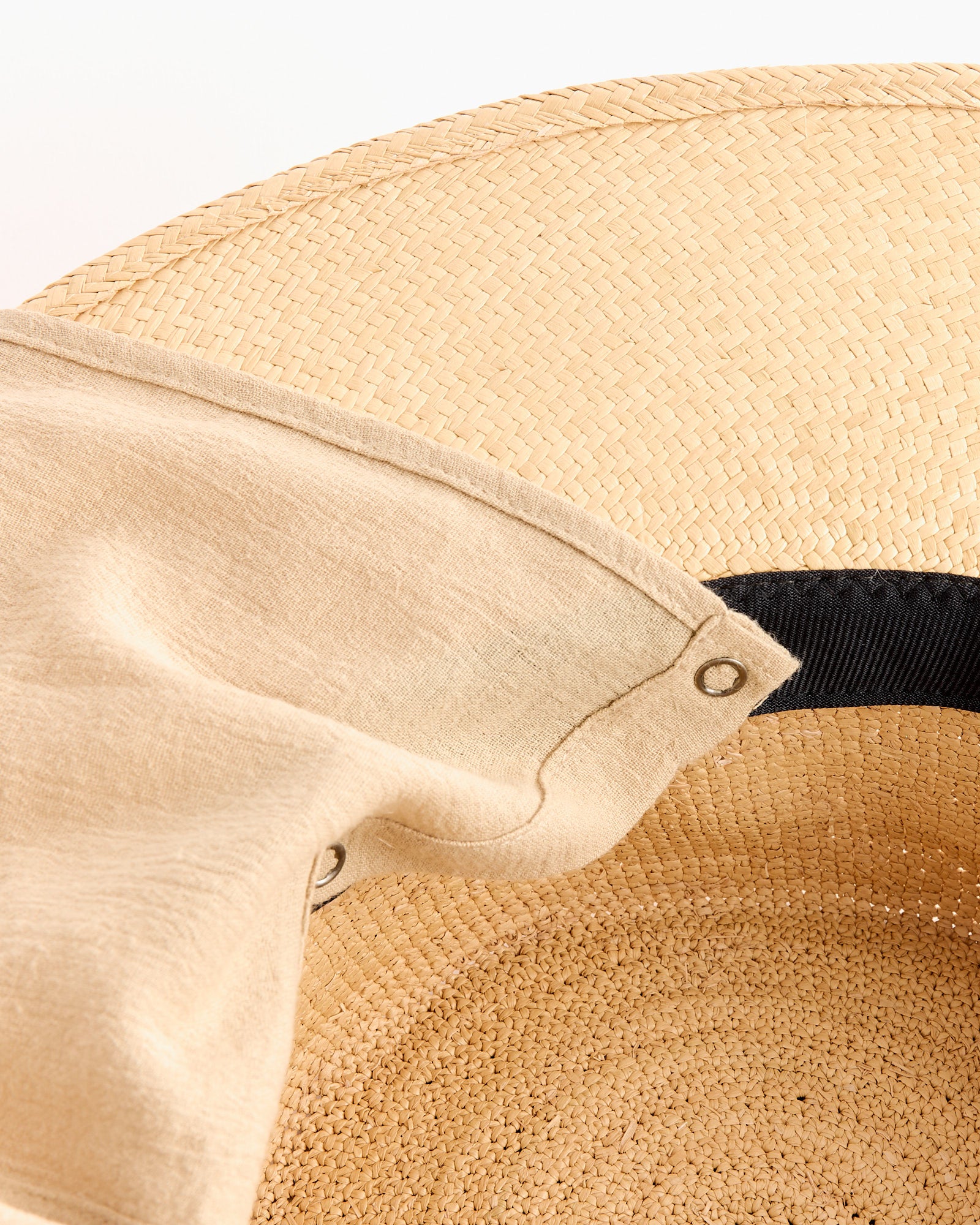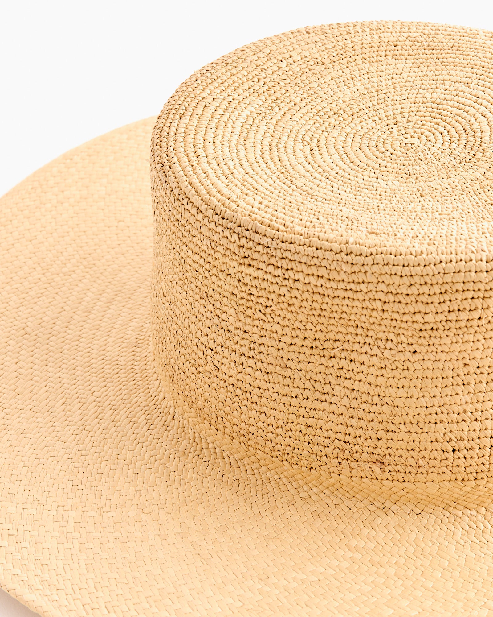 Sharp detailed crochet top boater style hat. Sun protecting brim. Adjustable interior headband for comfort fit. Adjustable interior headband. See Size and Fit for measurements.