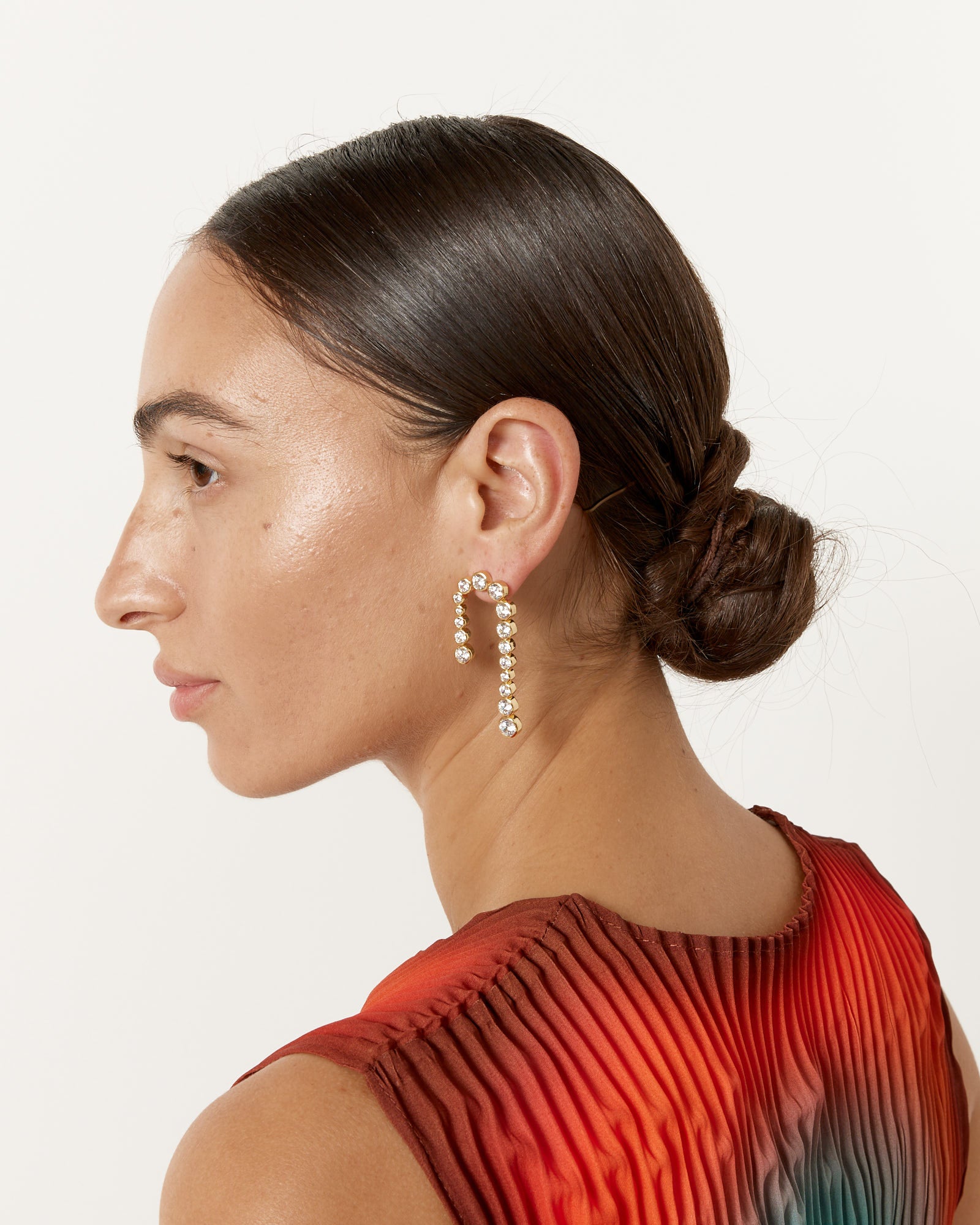 Completedworks' elegant Cubic Zirconia Earrings are a handcrafted, mismatched pair that feature cubic zirconia gemstones set in gold vermeil secured by posts with butterfly backs.