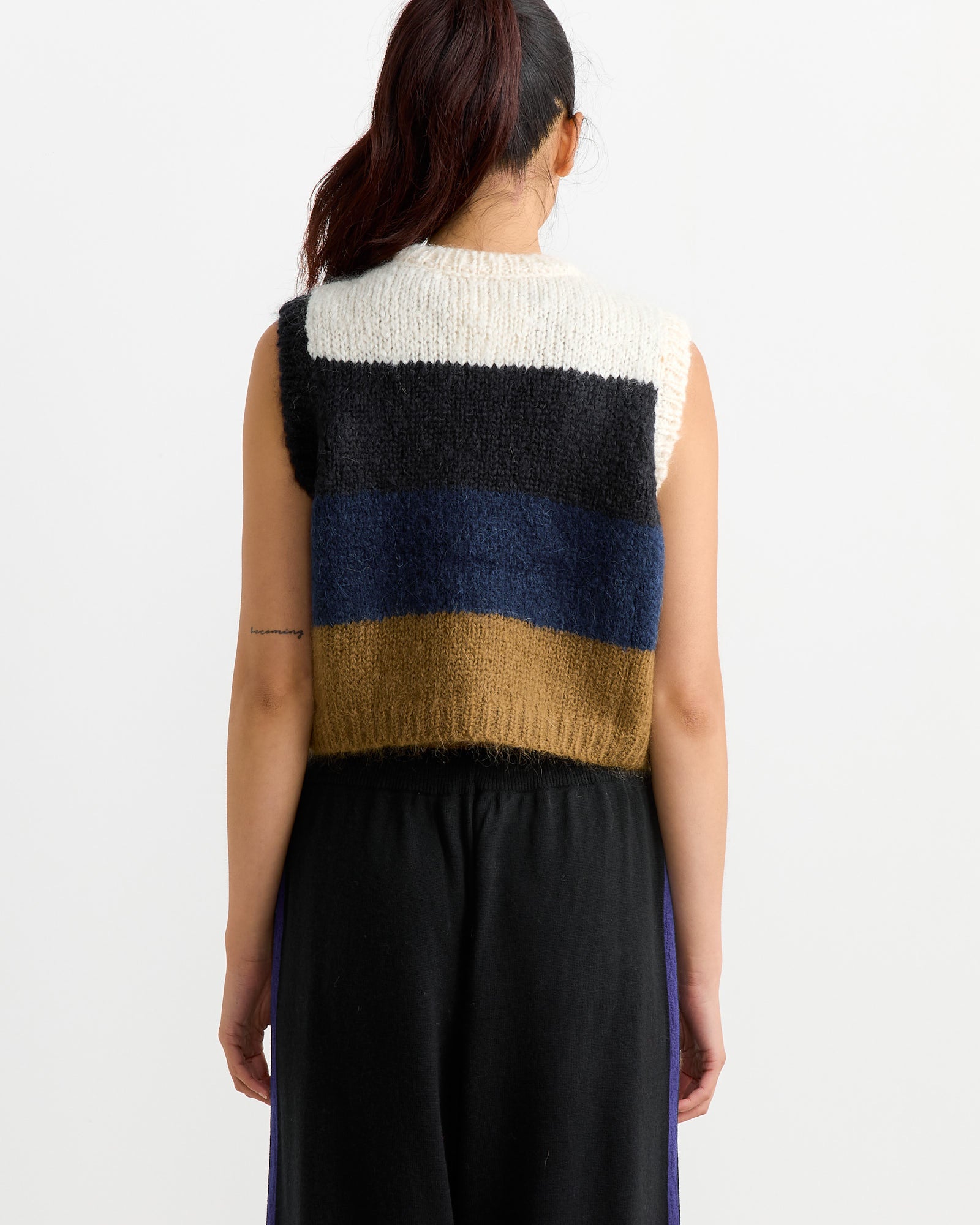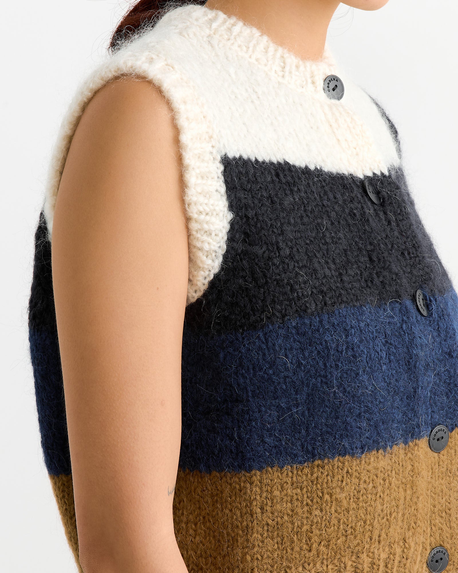 Alpaca Mohair Striped Waistcoat in Blue/Brown