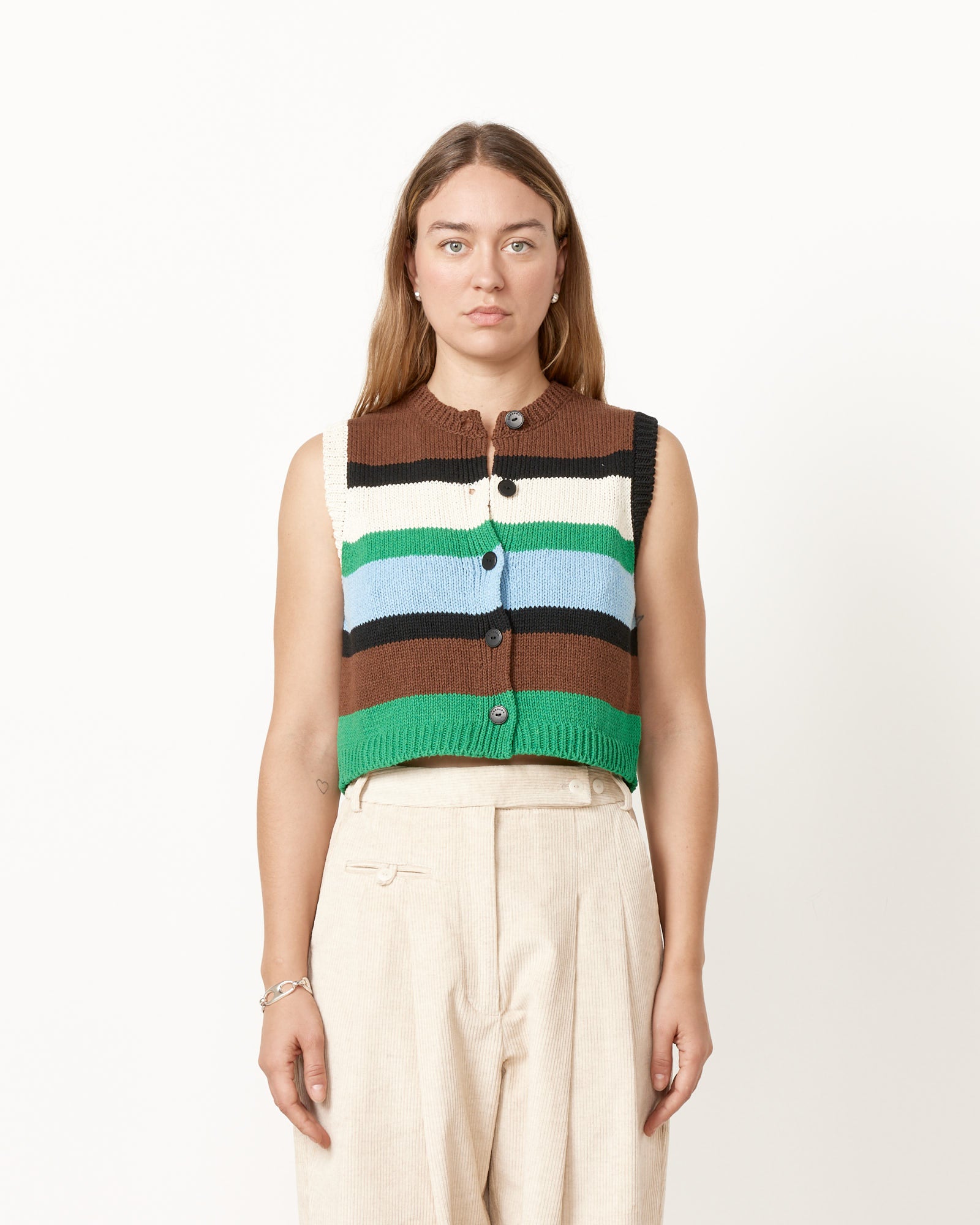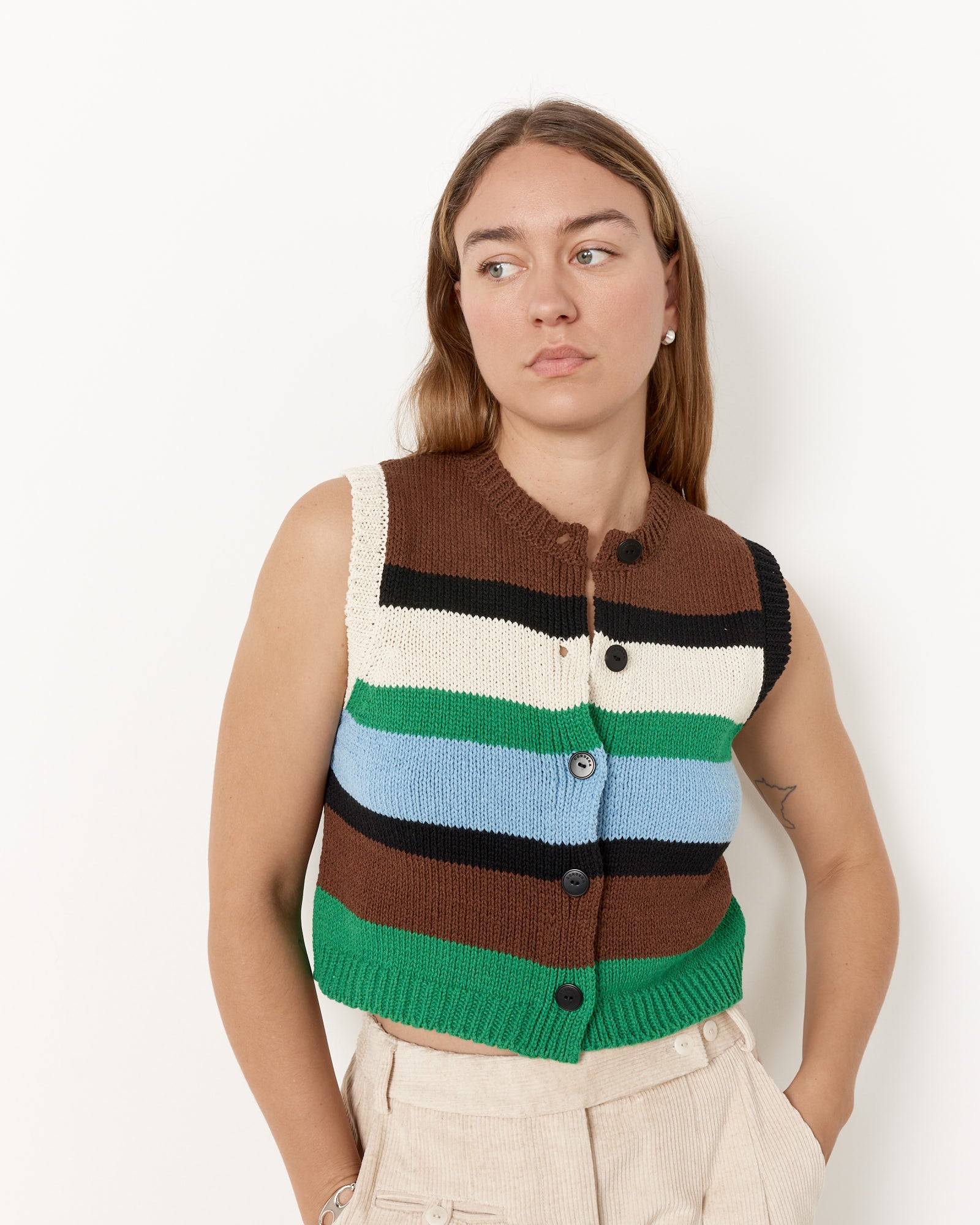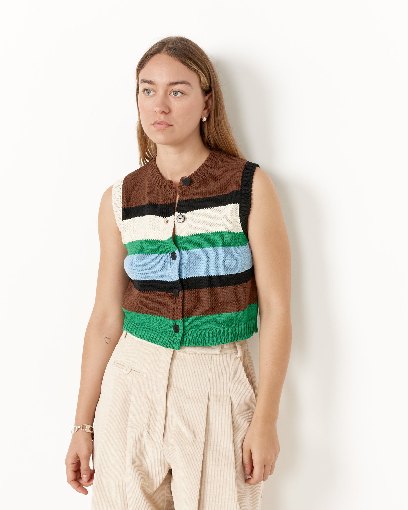 Cordera's Cotton Striped Waistcoat is crafted from a soft and durable blend of ethical cotton nit with a one-size regular fit that features chunky ribbed trim, button fastening at the front, and a dynamic combination of colors.