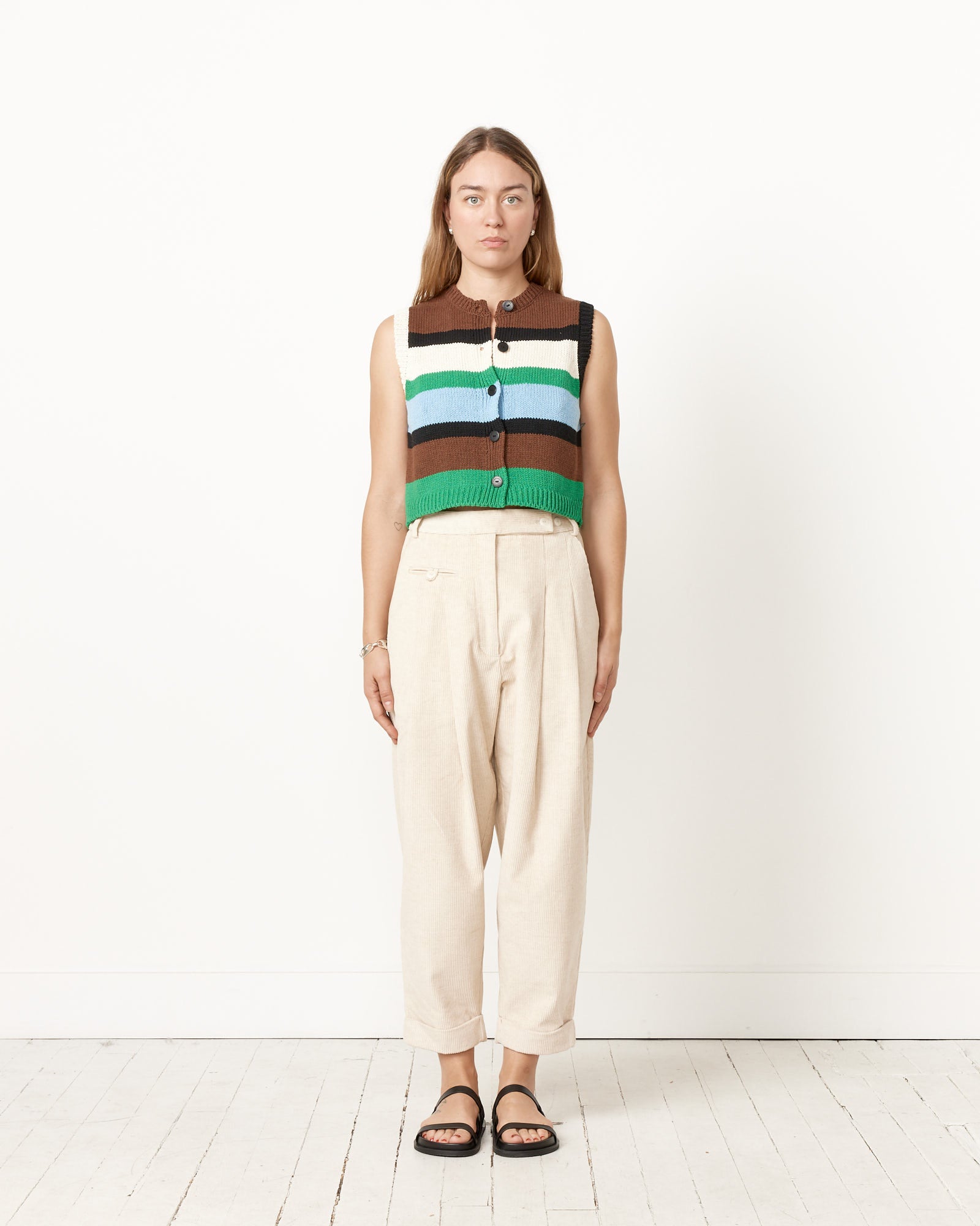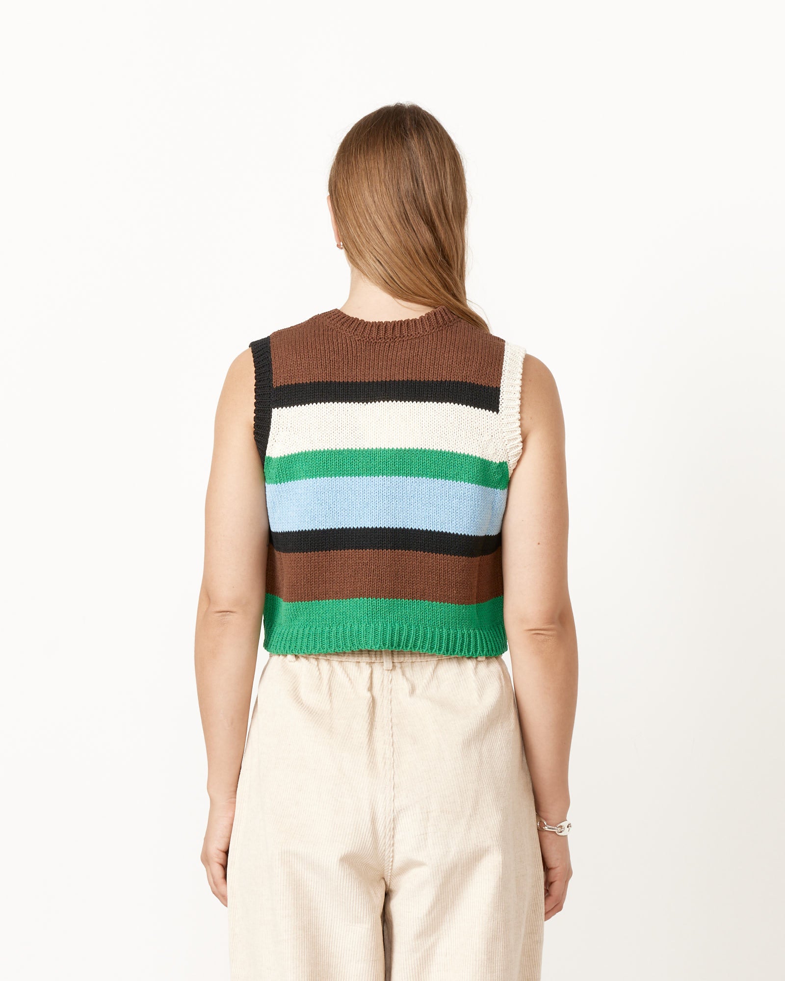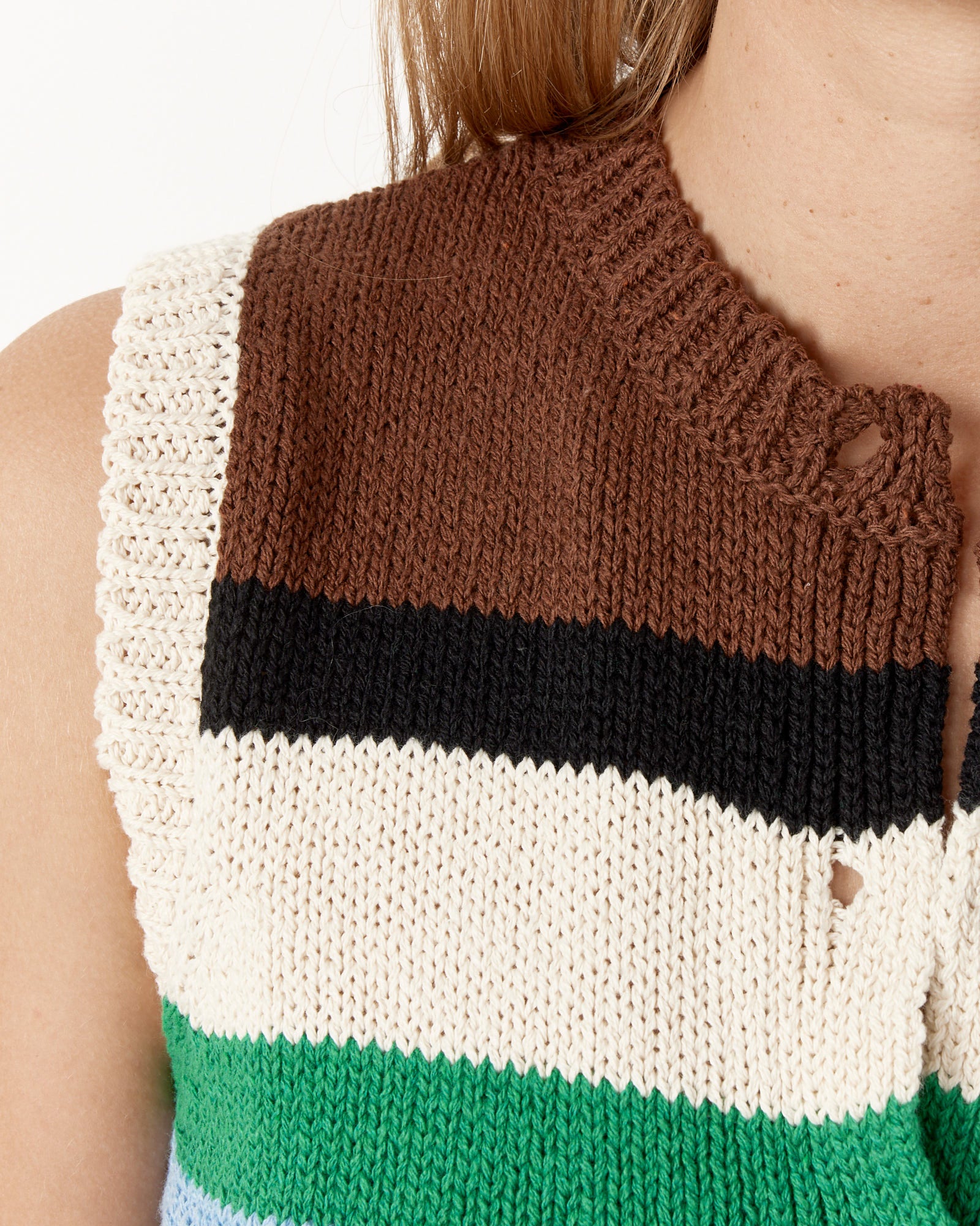 Cordera's Cotton Striped Waistcoat is crafted from a soft and durable blend of ethical cotton nit with a one-size regular fit that features chunky ribbed trim, button fastening at the front, and a dynamic combination of colors.