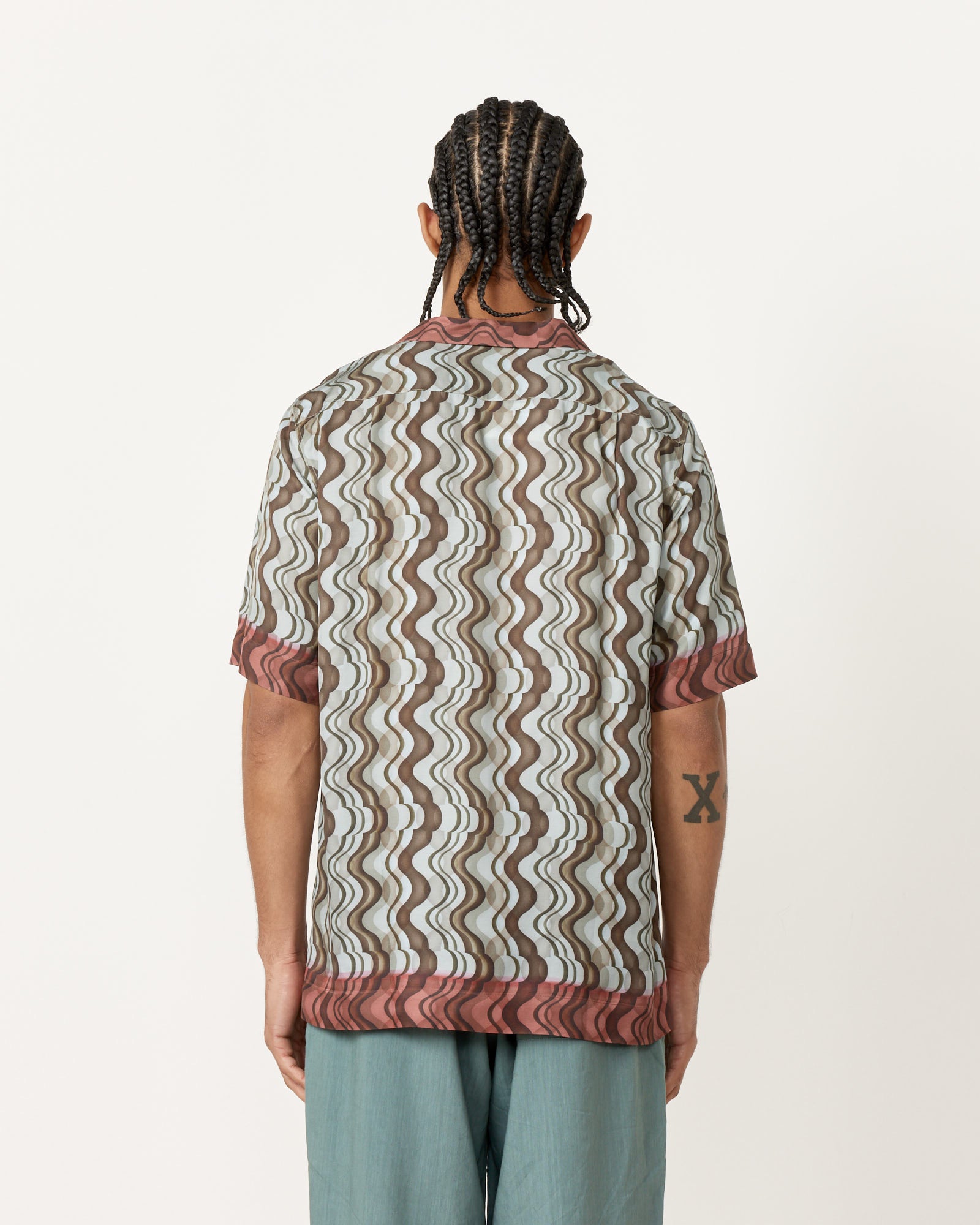 Dries Van Noten's Brown Graphic Shirt features a graphic pattern printed across a lightweight plain-woven viscose fabric cut in a boxy silhouette with an open spread collar, a patch pocket, vented side seams, and pleats at the back yooke.