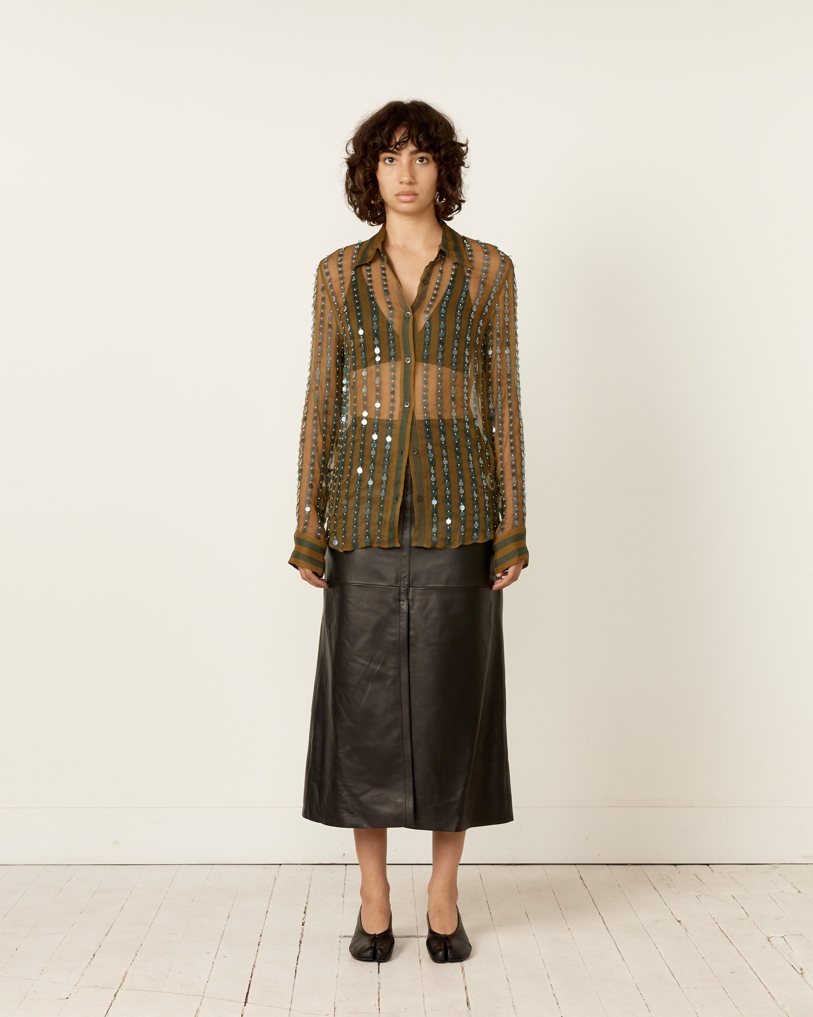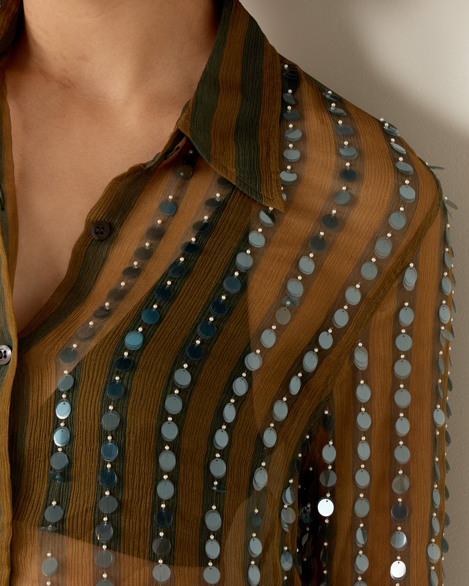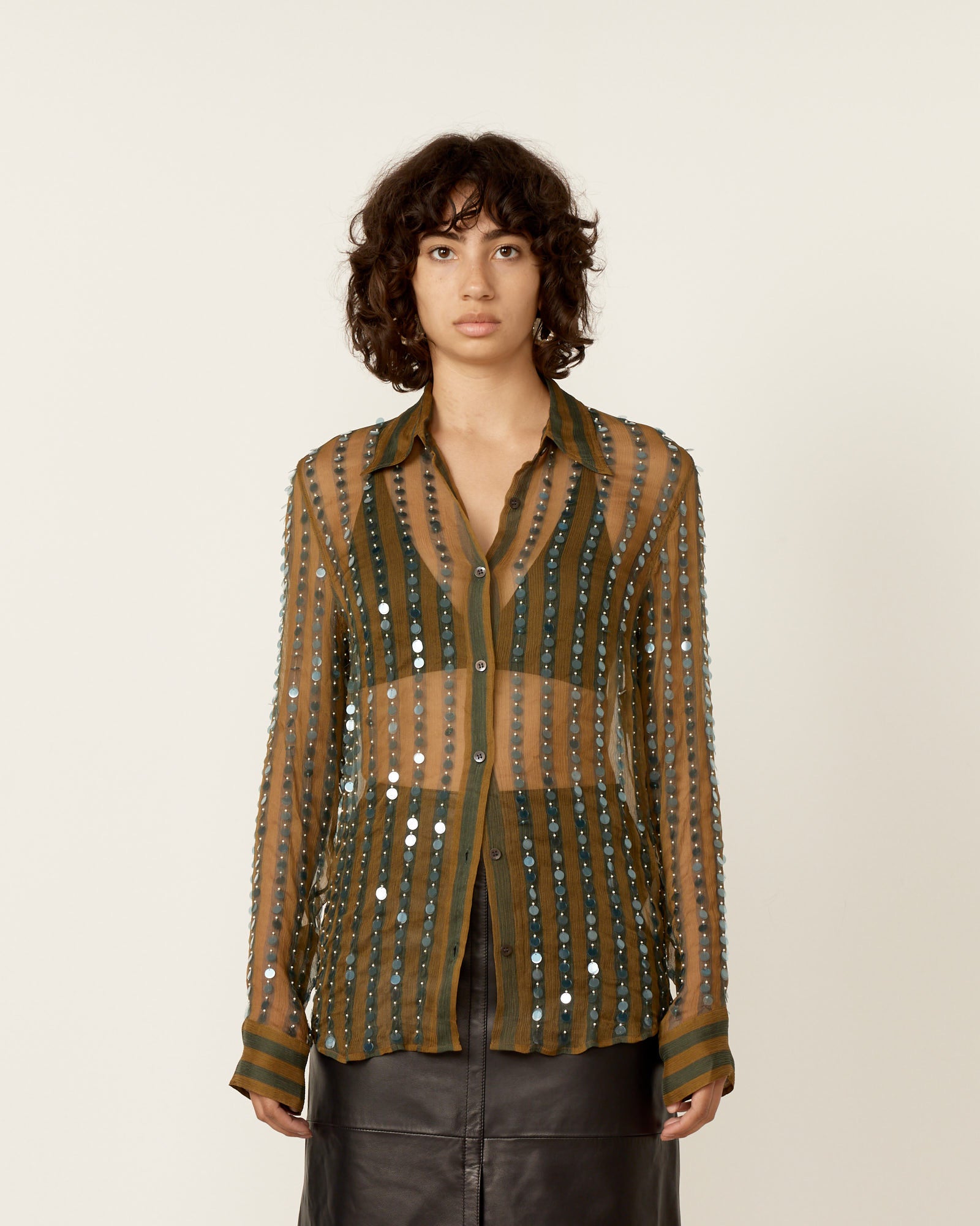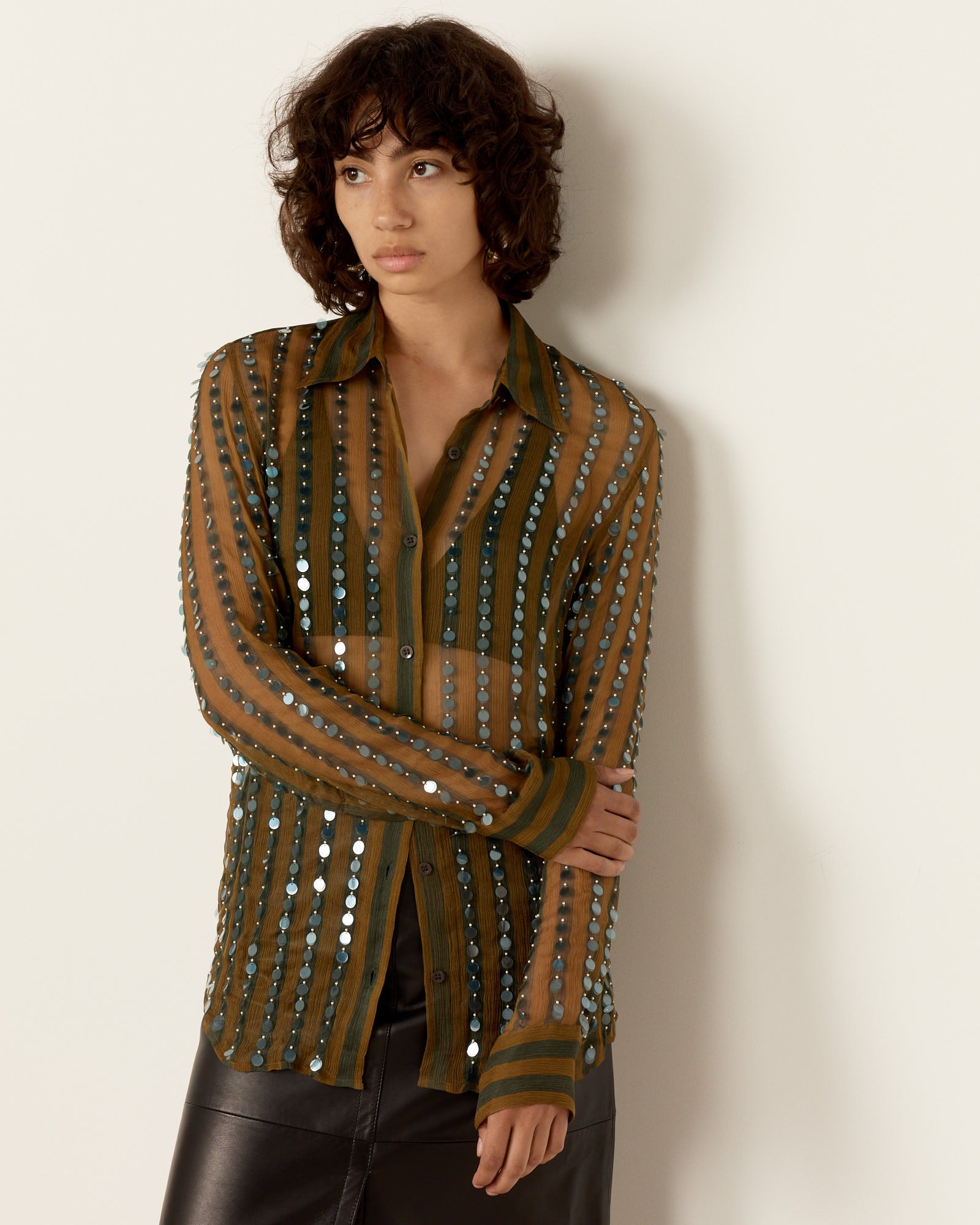 Dries Van Noten's Sequinned Shirt is crafted with a fluid, semi-sheer viscose button-down shirt embellished with beaded sequins across the front.