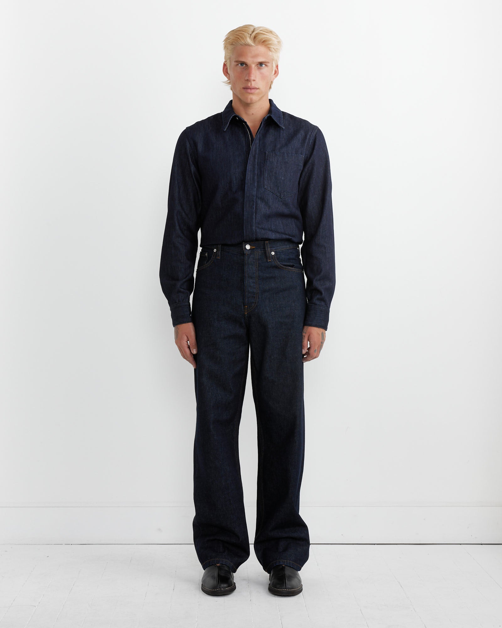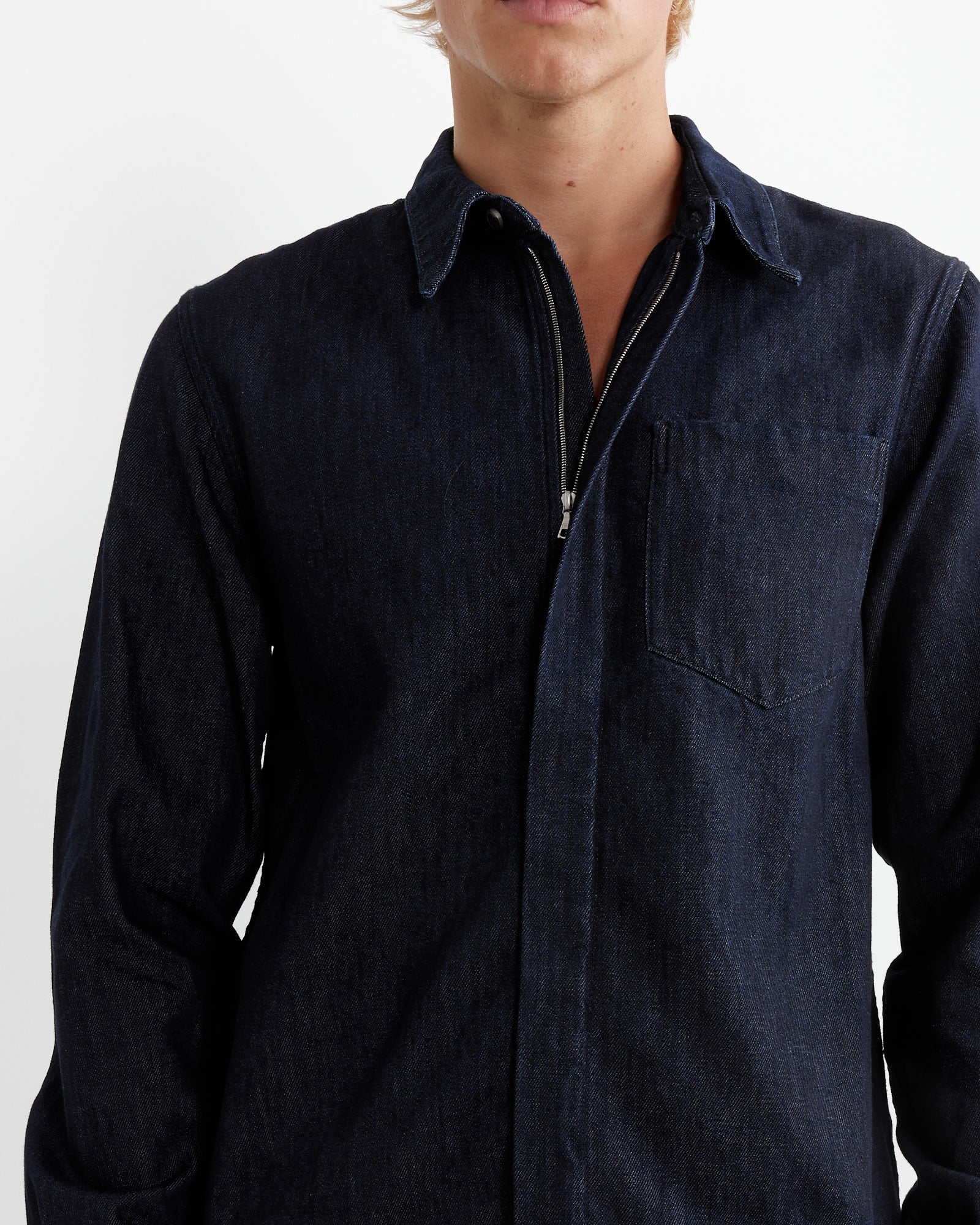 Timeless shirting with a twist, Dries Van Noten's Zip Shirt features a concealed zipper at the front, a flat hem, and a beautiful, indigo-dyed cotton fabric in a rich shade of dark blue.