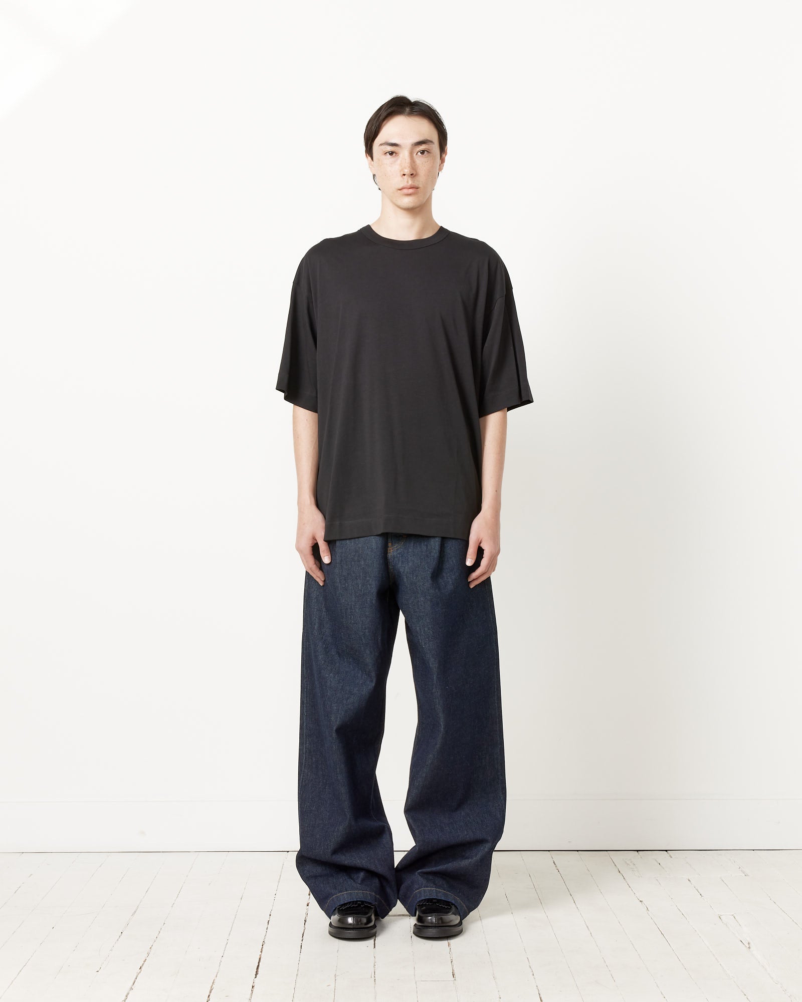 Aiki is 6'2" with a 32" waist and 34" inseam. Aiki is wearing the Oversized T-Shirt in size M.