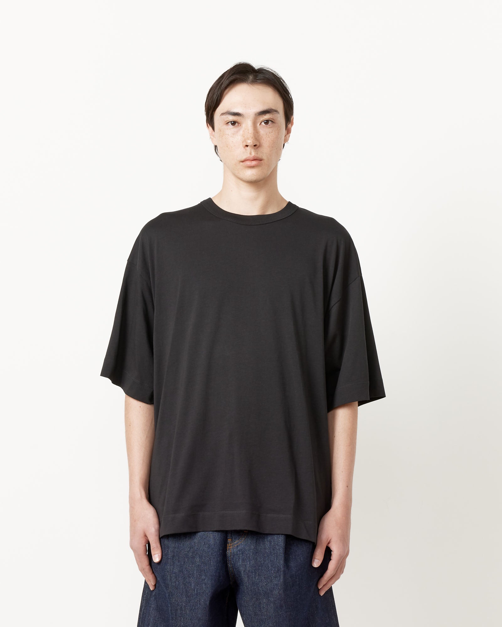 Dries Van Noten holds a masterful understanding of shape and volume, as is evident by the Oversized T-Shirt, crafted in a draping cotton-jersey fabric with wide sleeves and a generous silhouette.