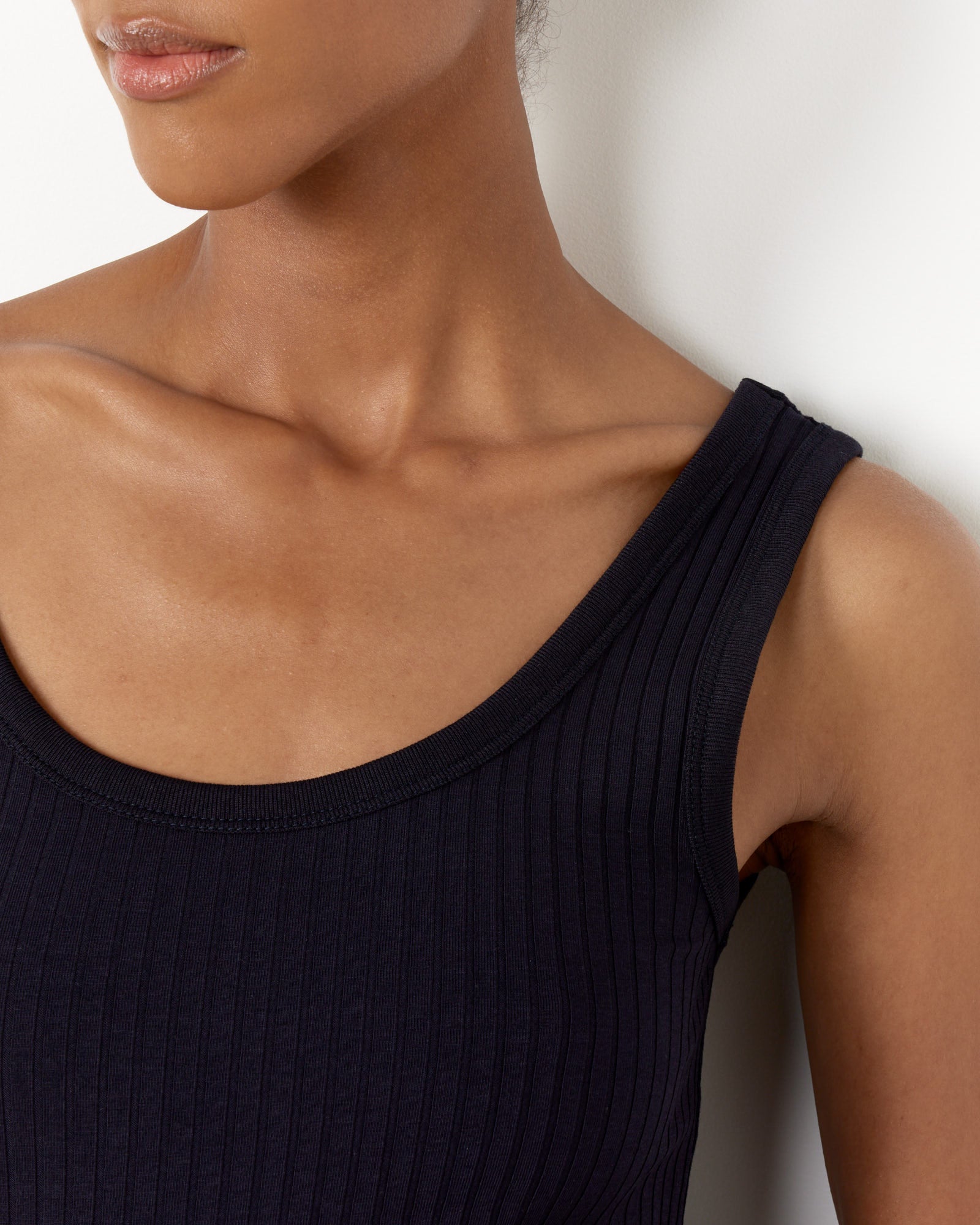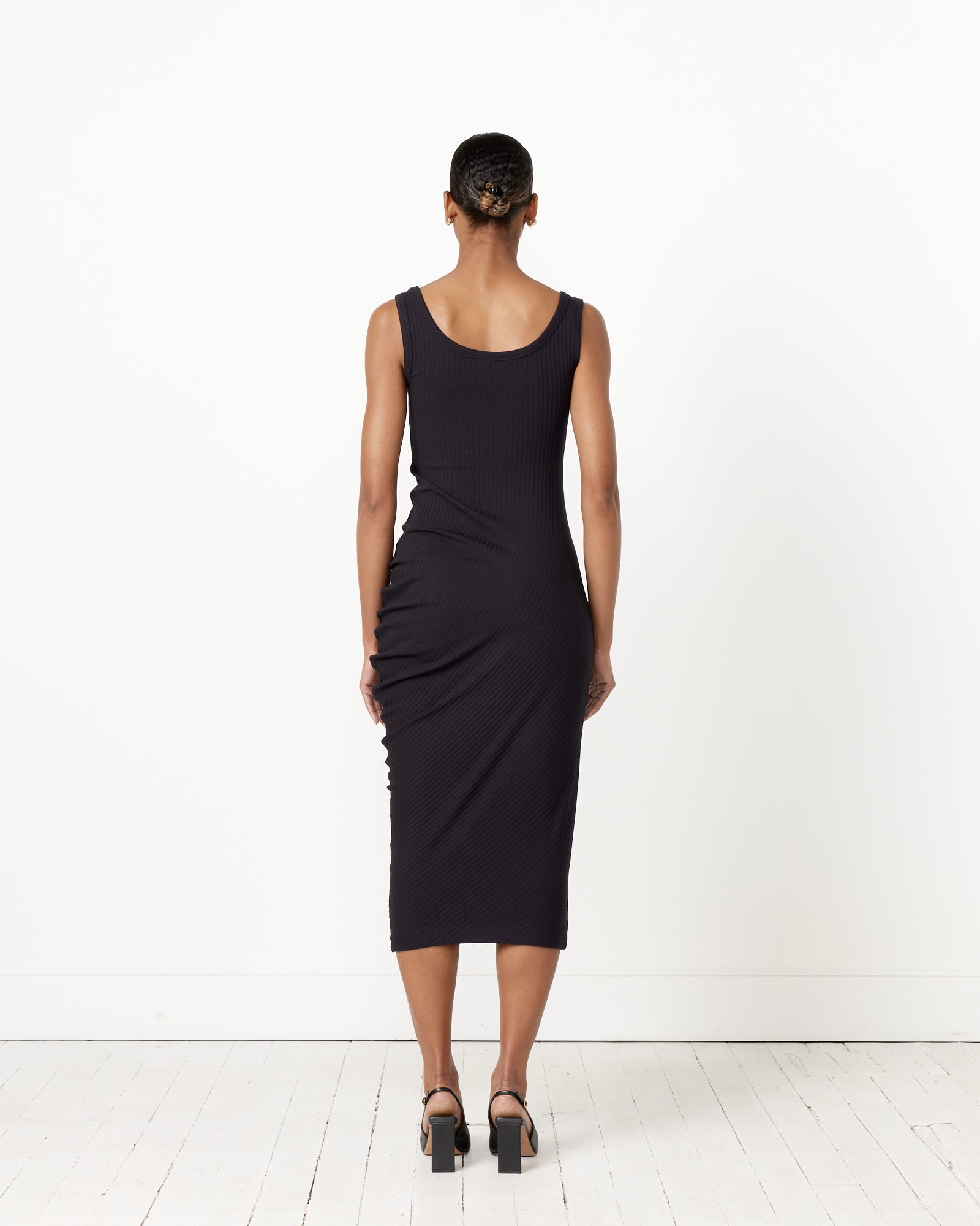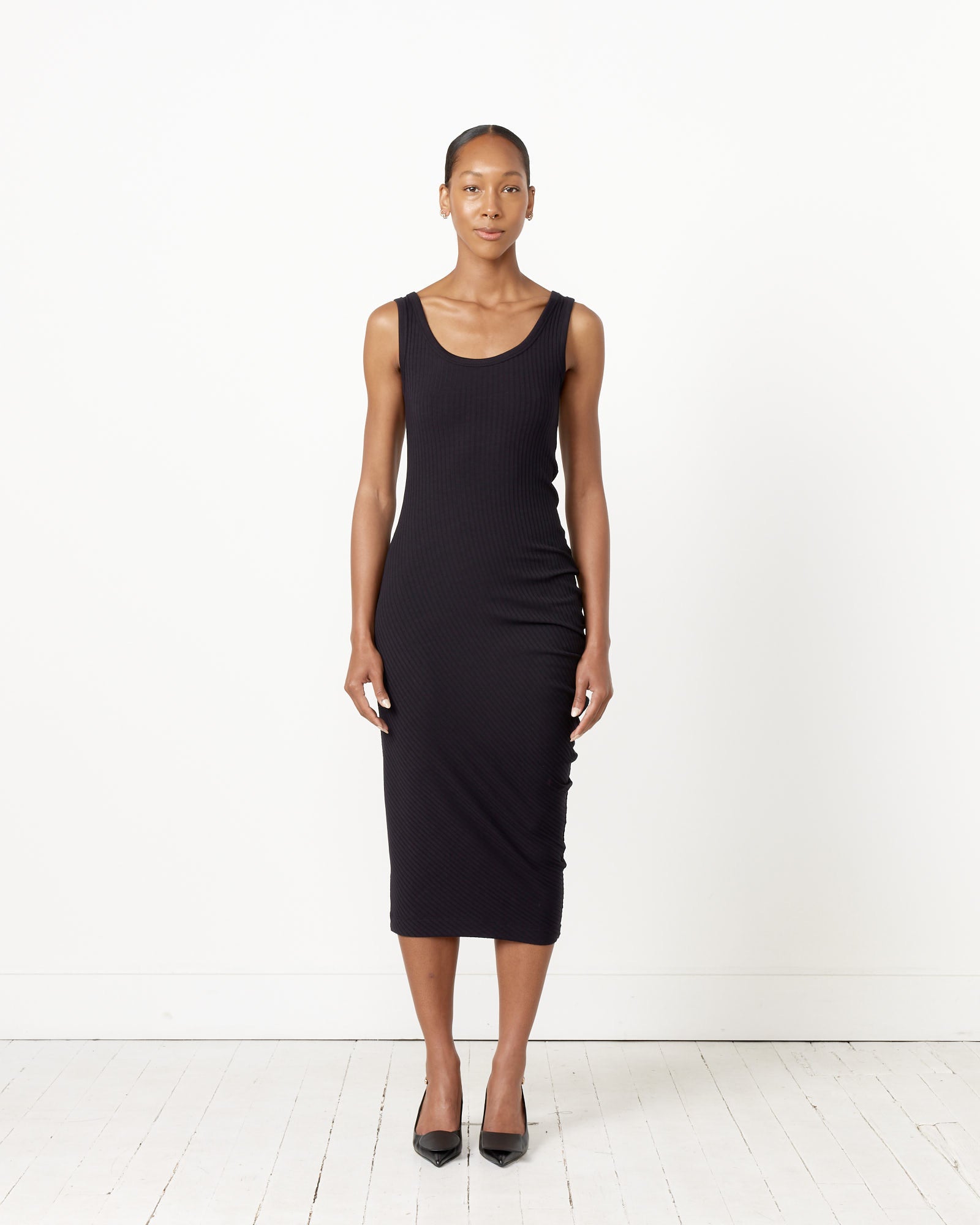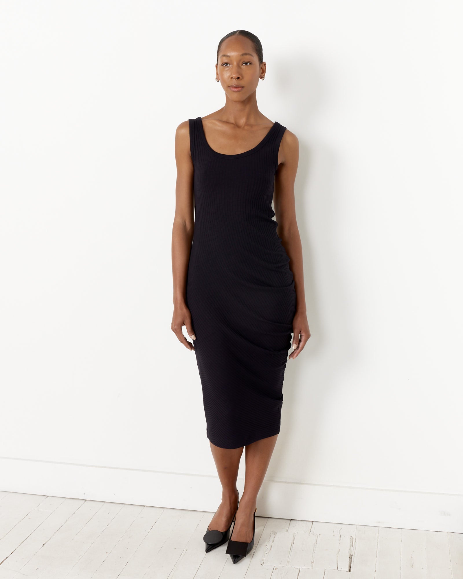 Dries Van Noten's Ribbed Knit Dress in Navy is done in a soft-and-stretchy rib-knit blend of cotton, modal, and elastane, constructed in such a way that the fabric's textured rib pattern curves as it drops towards the hemline.