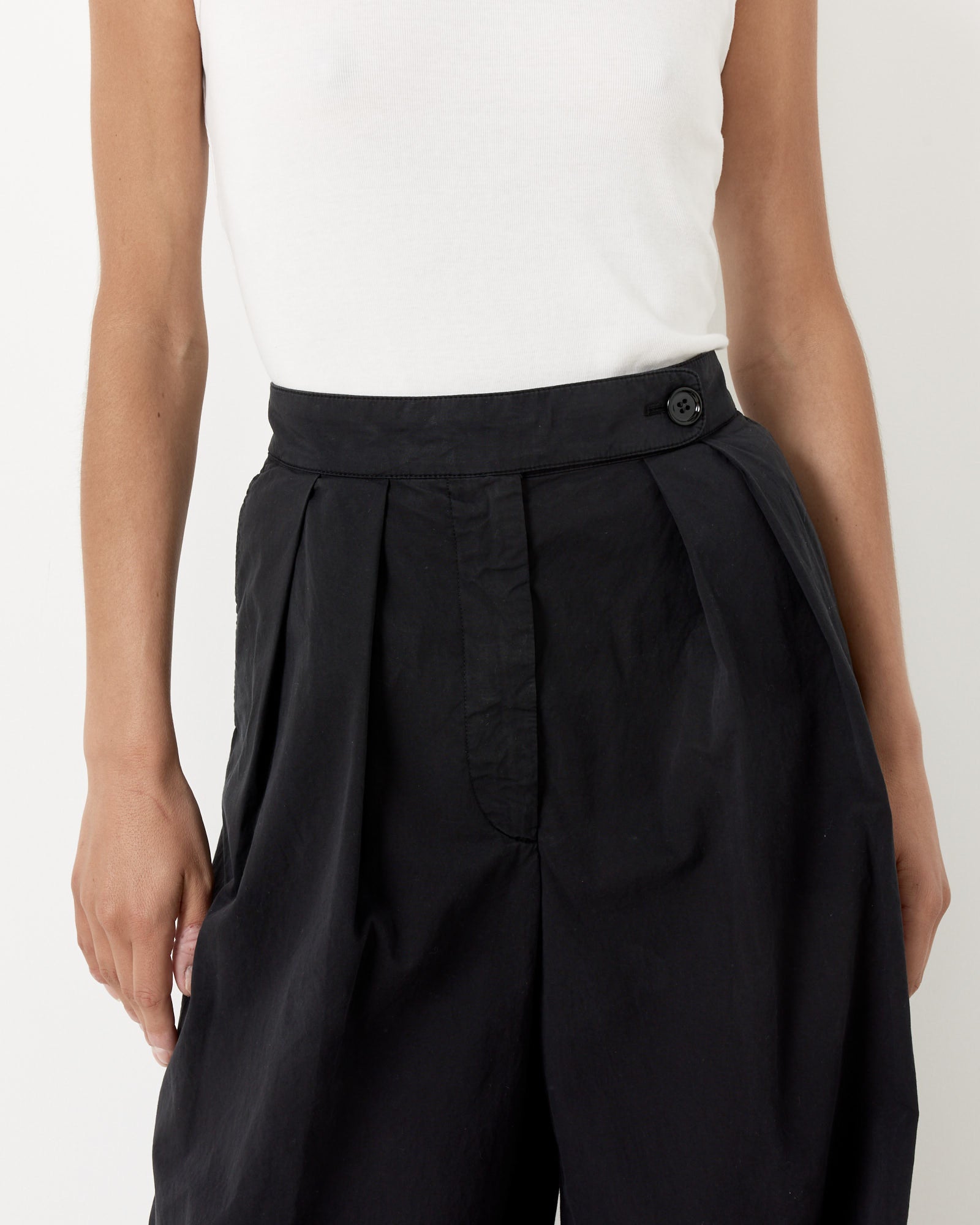 Madeline is 5'6" with a 25" waist, 31.5" chest and 35" hip. Madeline is wearing the Cuffed Cotton Pant in size 36.