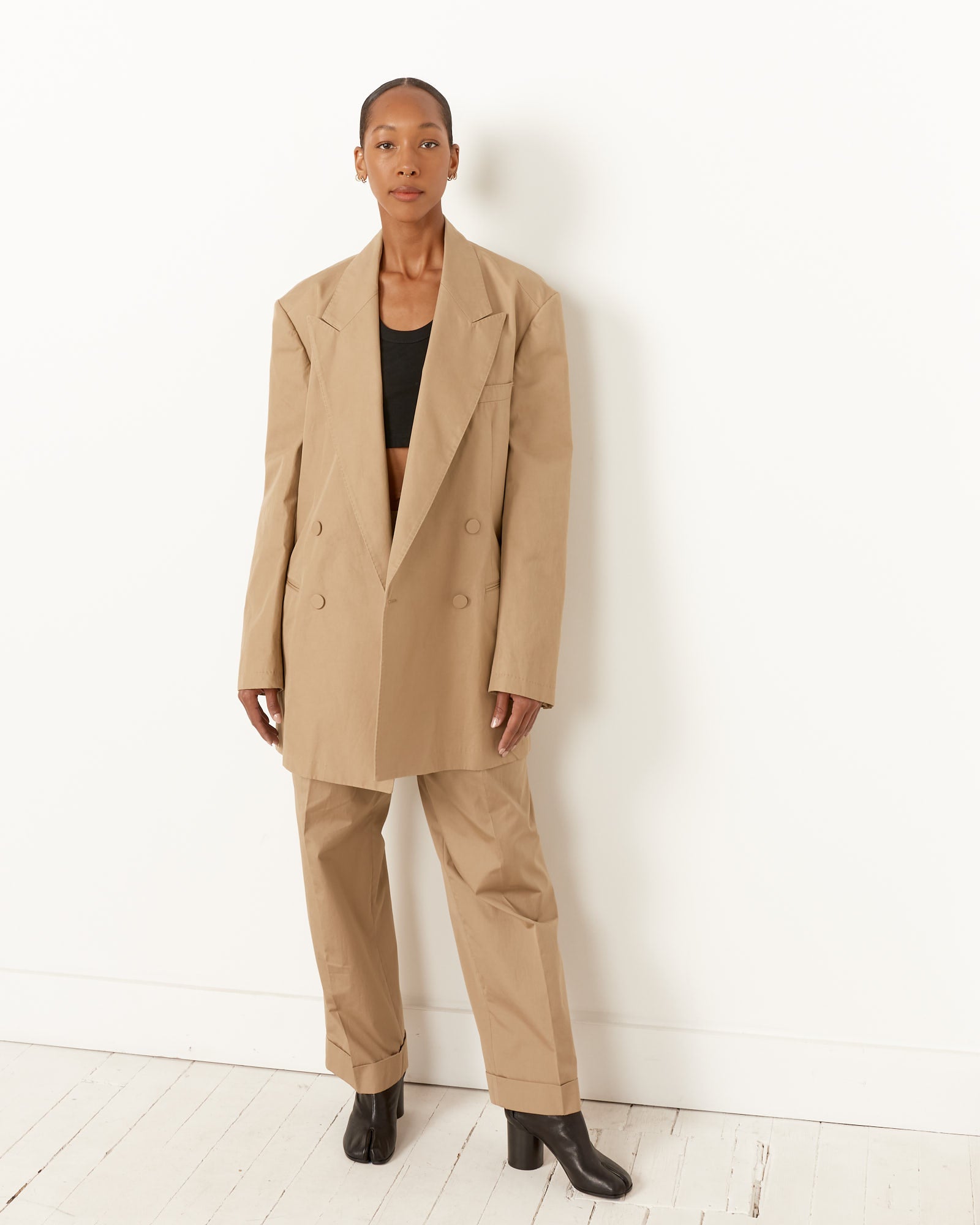 Dries Van Noten's Partan Pant in Beige features front pleats, a wide-leg silhouette, 4-pocket trouser styling, a concealed closure at the front for a clean presentation, and turn-up hems.